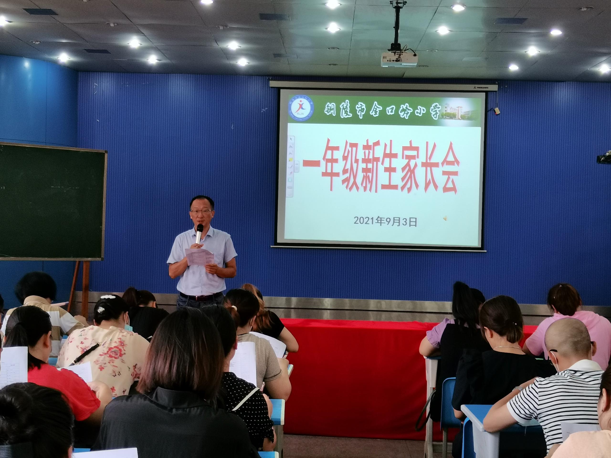 为了让一年级新生尽快适应金小的教学环境,为确保每一位孩子在金小快乐地度过他们难忘的童年,尽快引领新生适应小学阶段的学习和生活,我校于2021年9月3日下午2:30在学术报告厅召开一年级新生家长会,共同探讨了孩子的教育和培养问题。会议由大队部储老师主持,全体一年级新生家长参加会议。