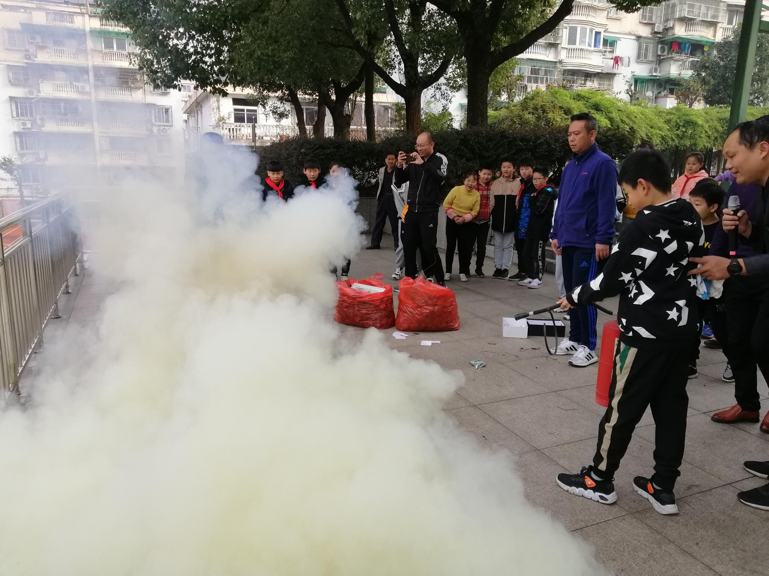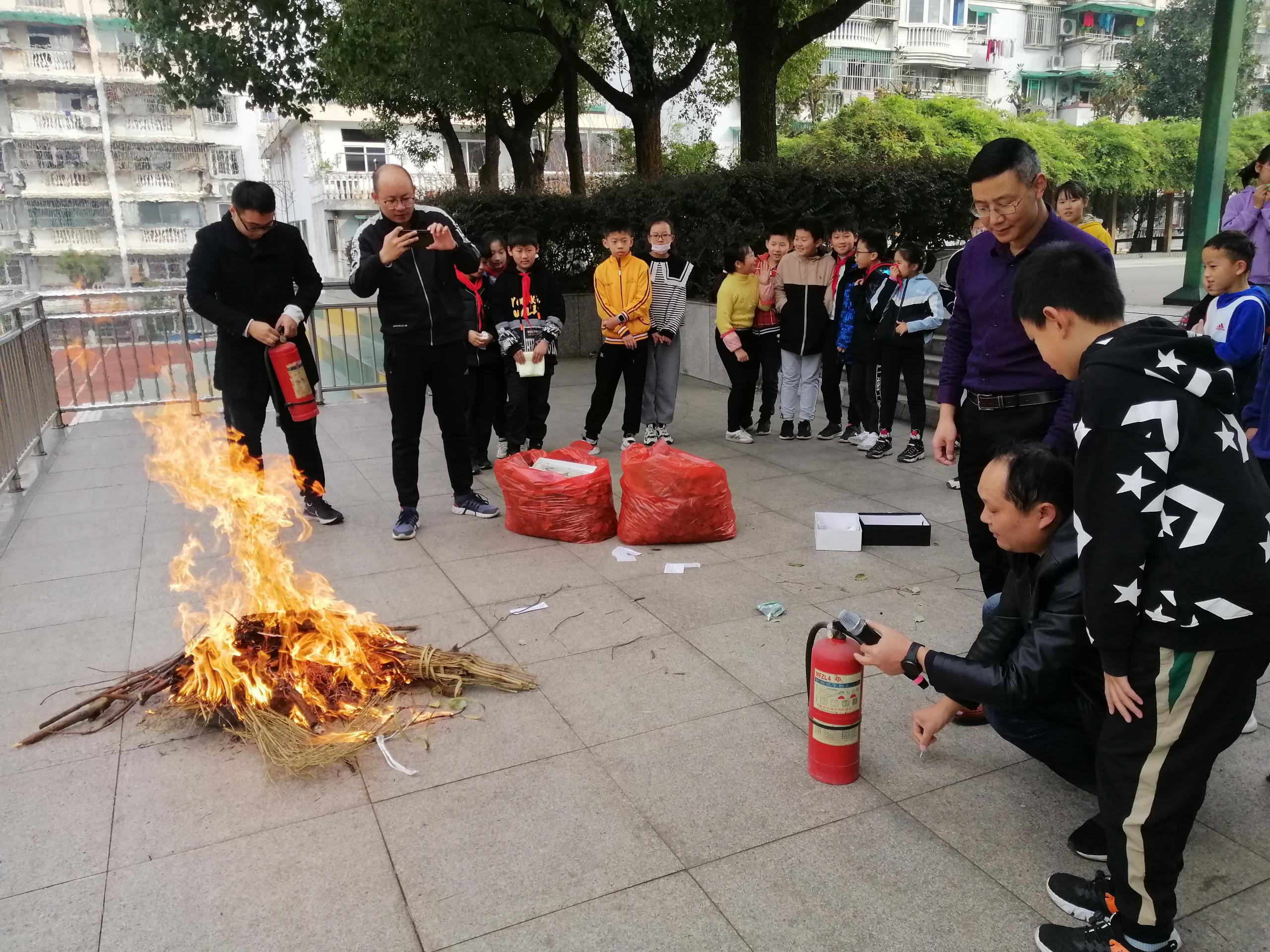 接着,还开展了消防器材灭火演示,现场点火,用即将过期的灭火器进行灭火,师生参与,提高了实战演练能力。