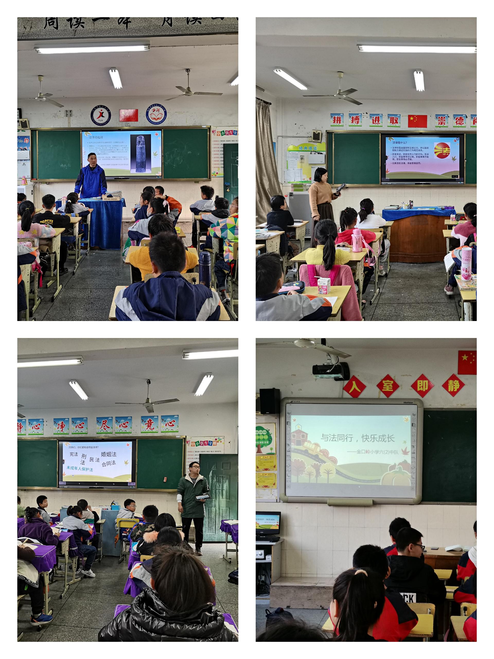 各班在学校的统一安排下,班主任精心组织,从法律的起源说起,带领学生历数我们身边的法律,厘清违法与犯罪的区别与联系,同时用经常发生小学生身边的浅显易懂的事例,告诉学生什么是违法,让学生懂得违法行为对自己、家庭和社会造成的危害,告诫学生违法的事情不要做,要做一个知法、懂法、守法的好公民。