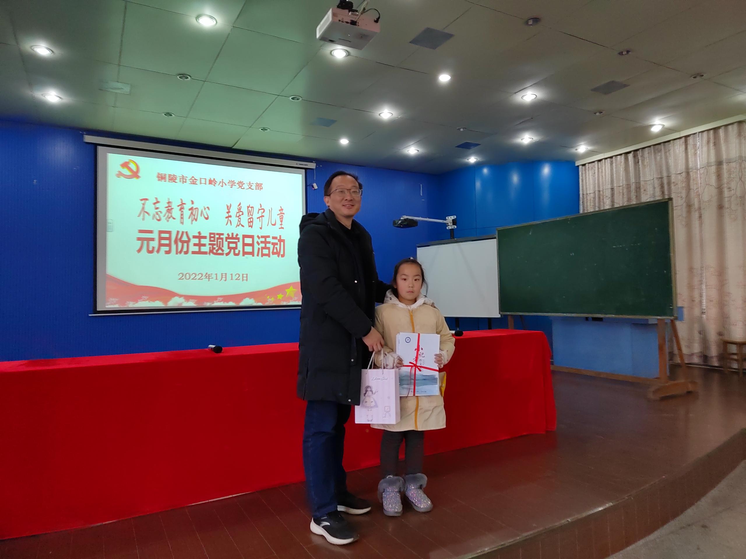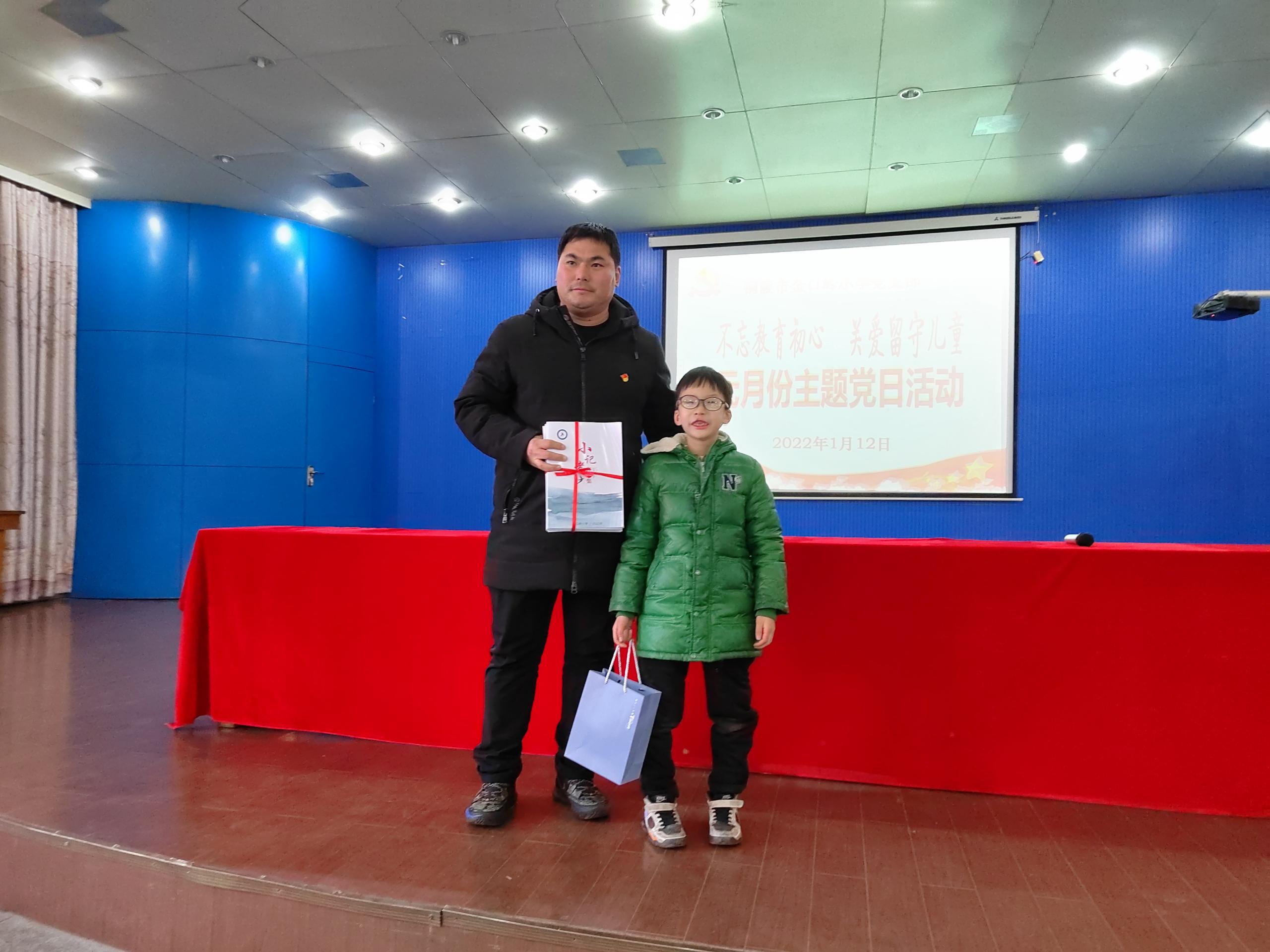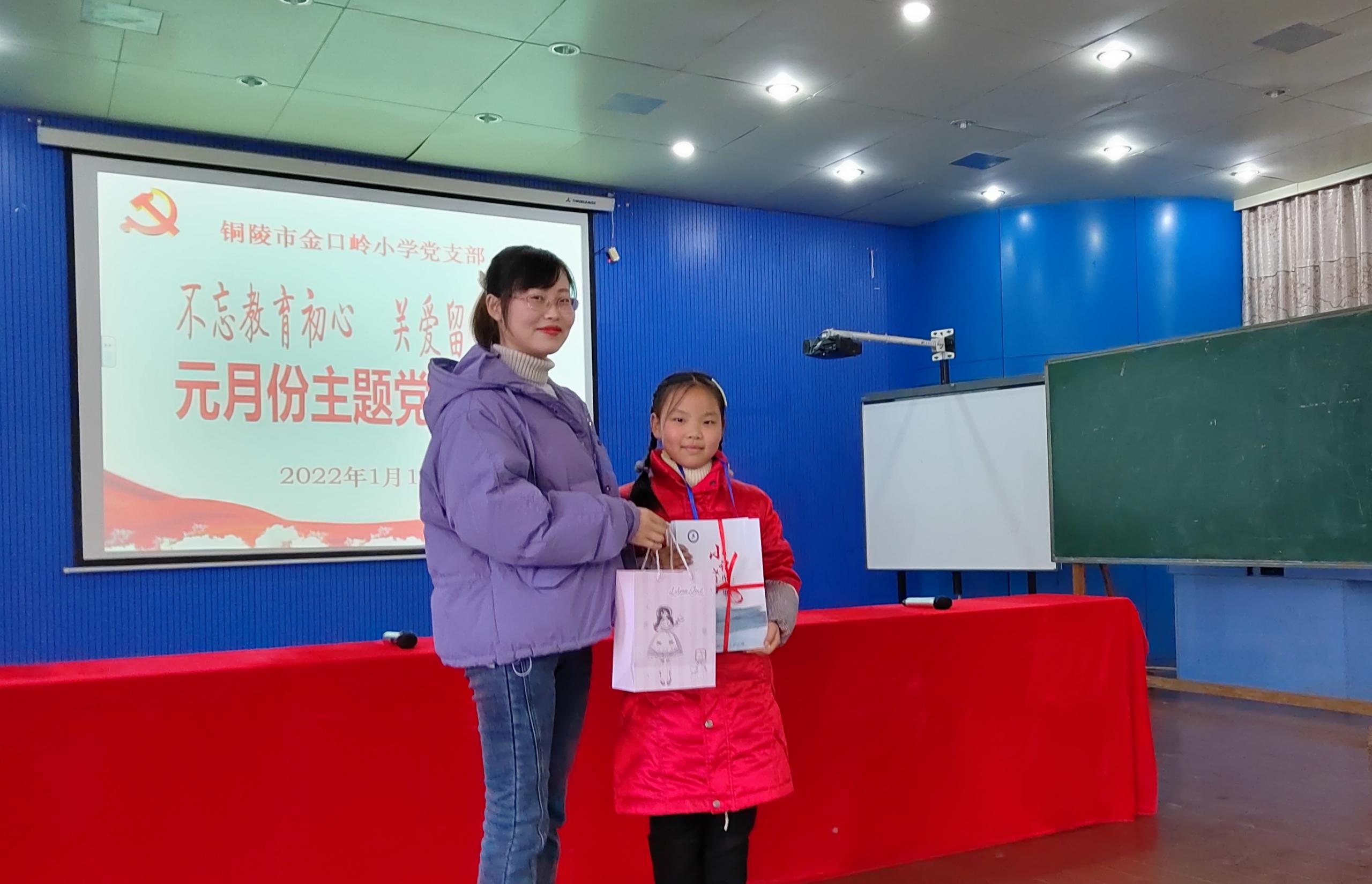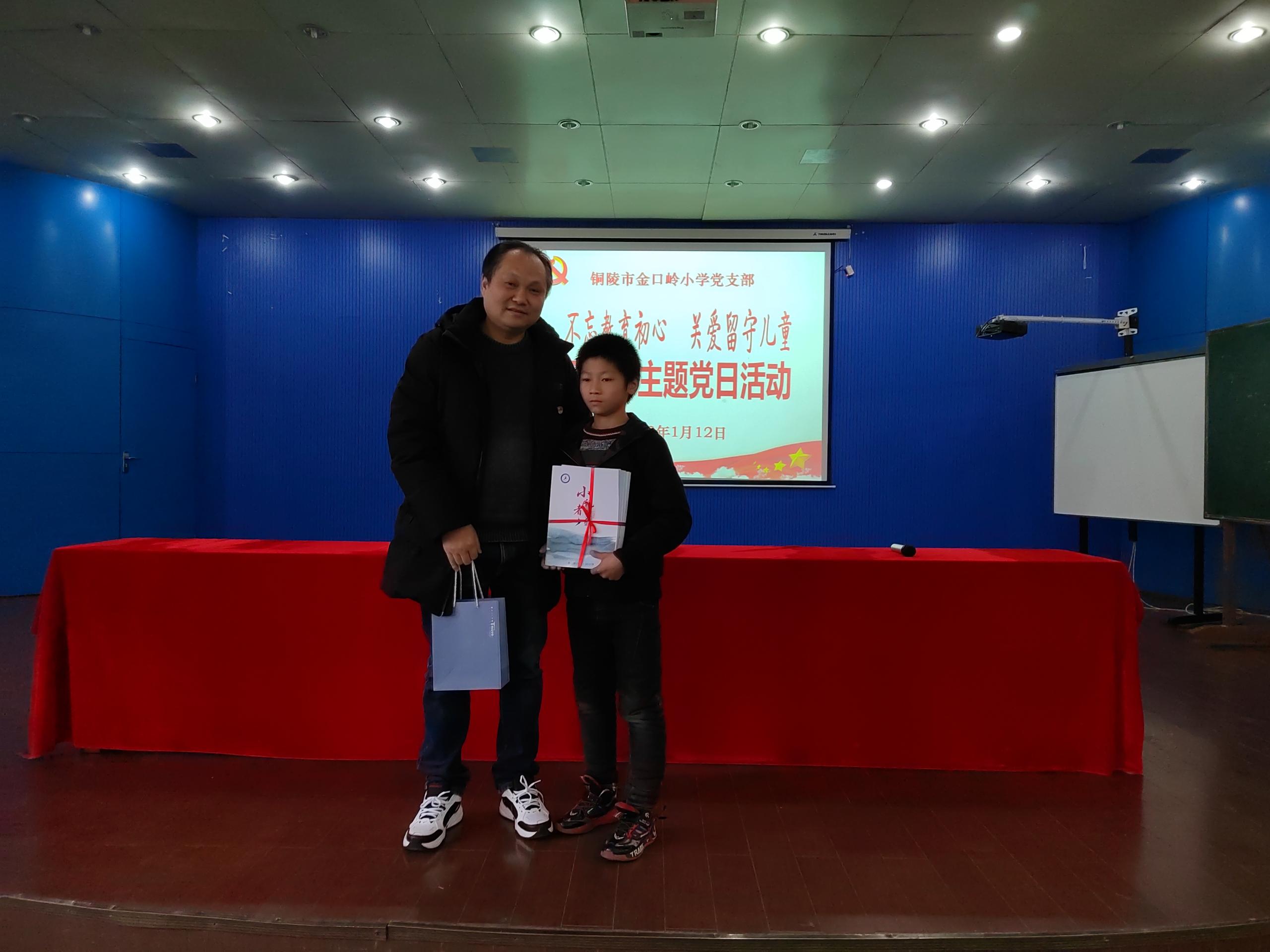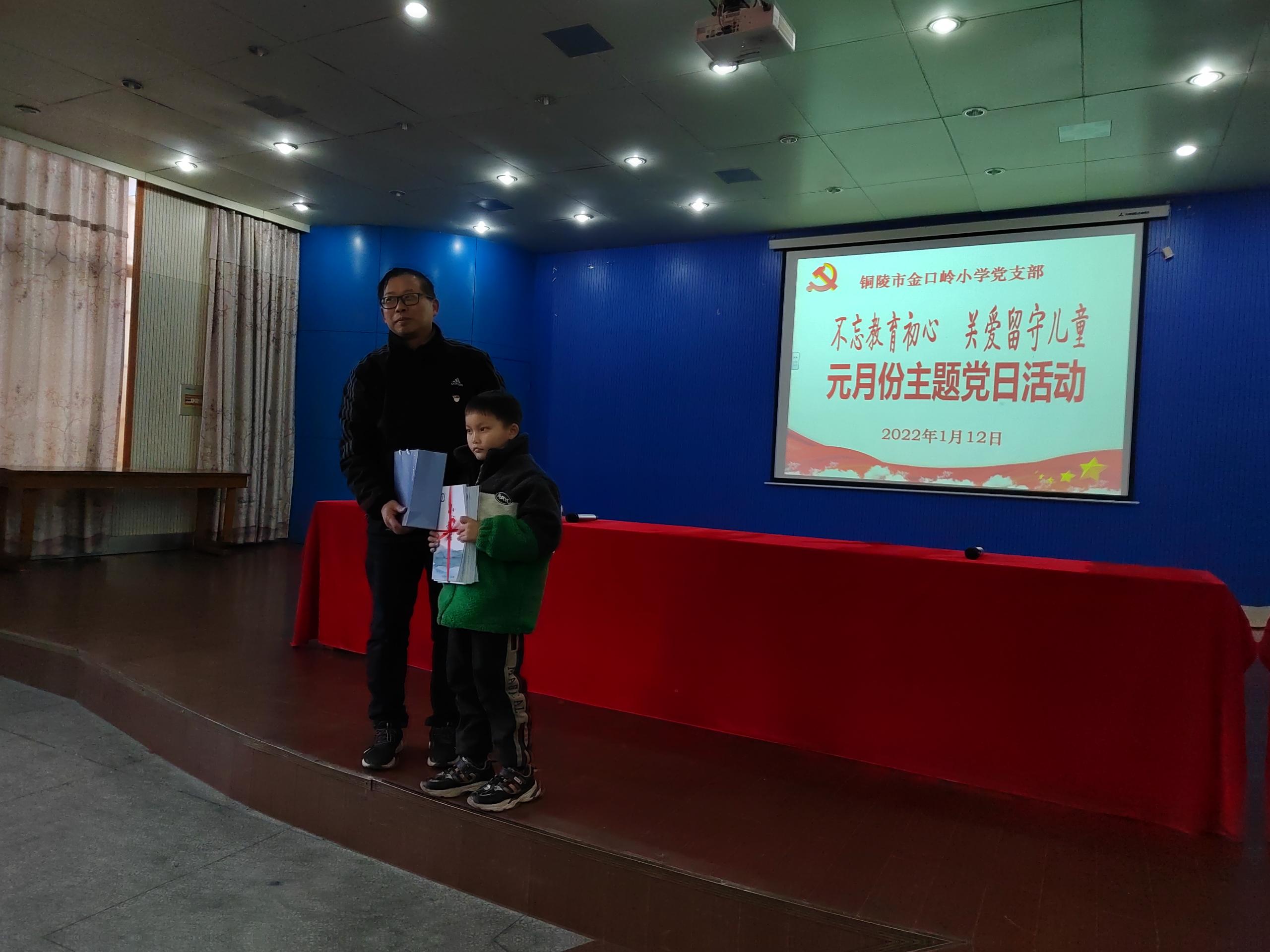 最后全体党员向结对留守儿党员赠送书籍和学习用品。