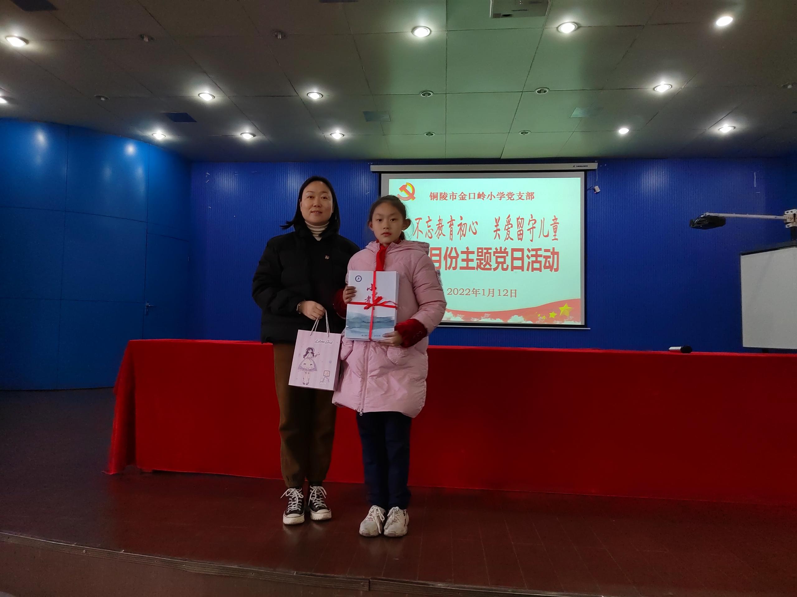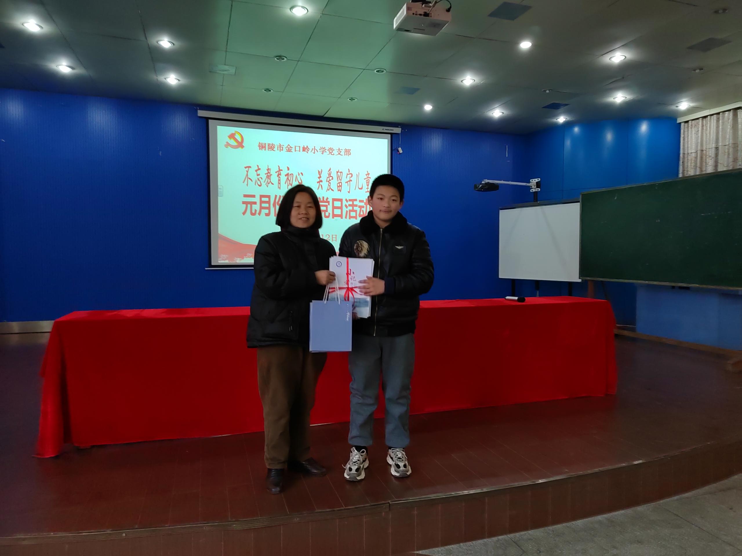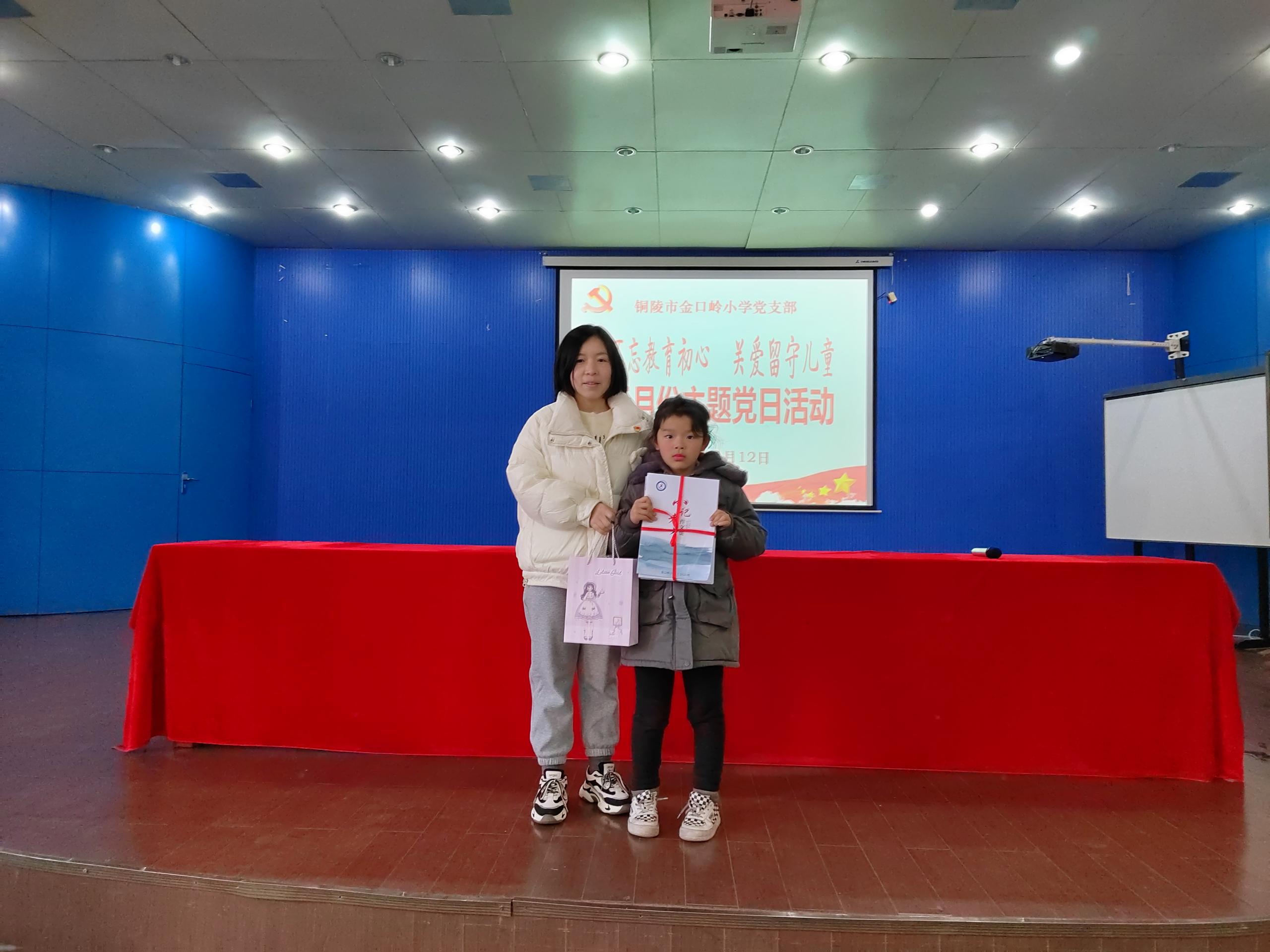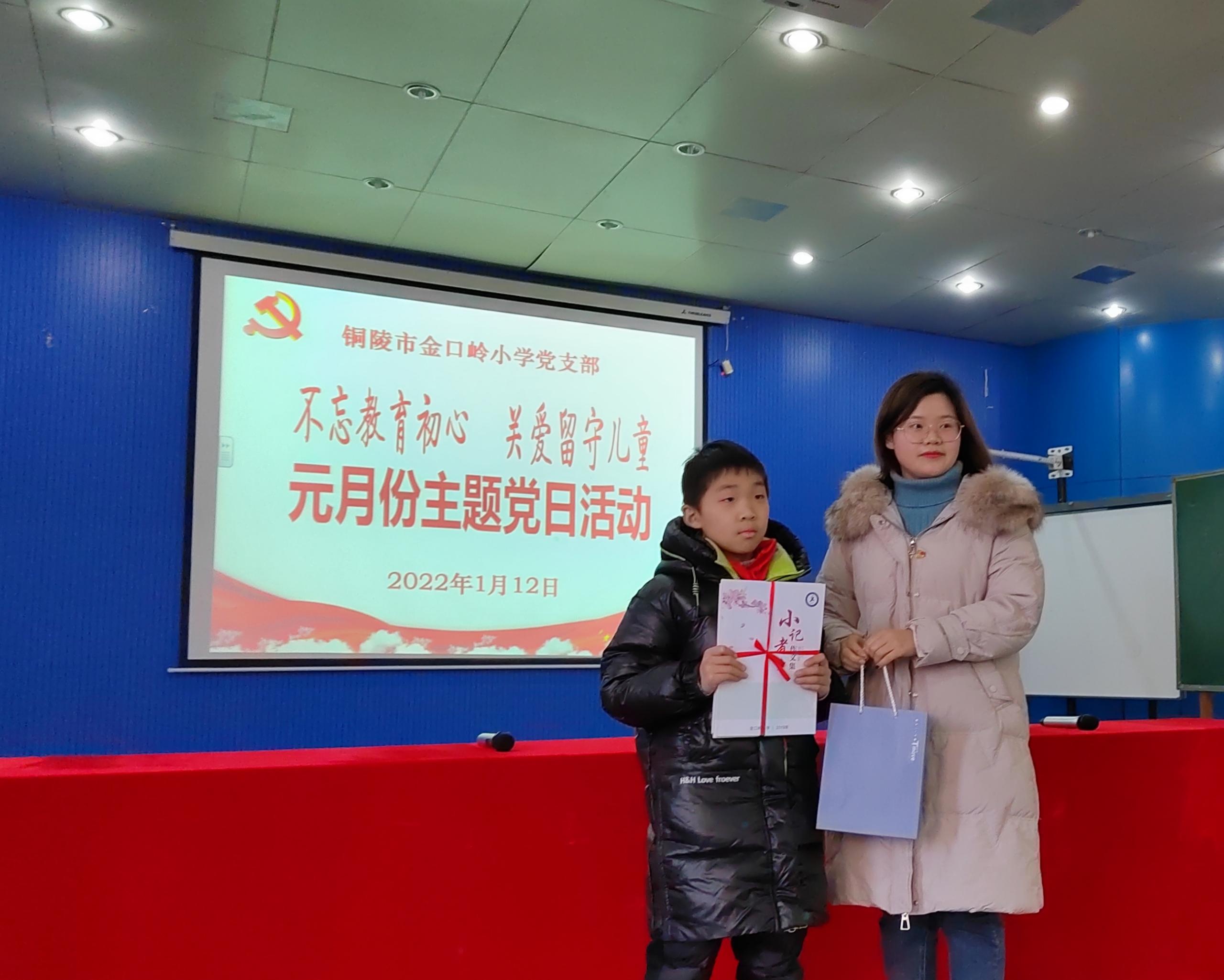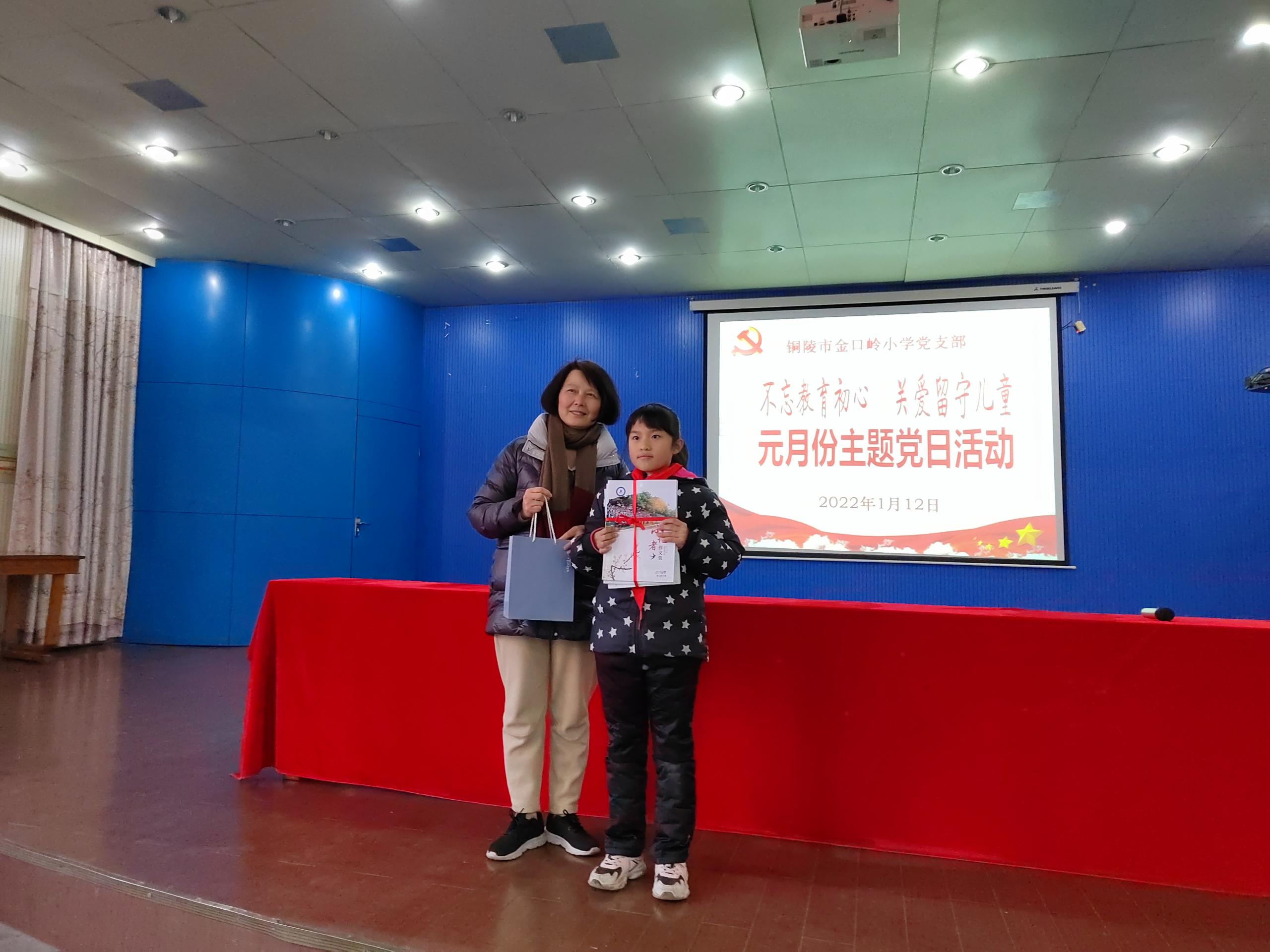 最后全体党员向结对留守儿党员赠送书籍和学习用品。