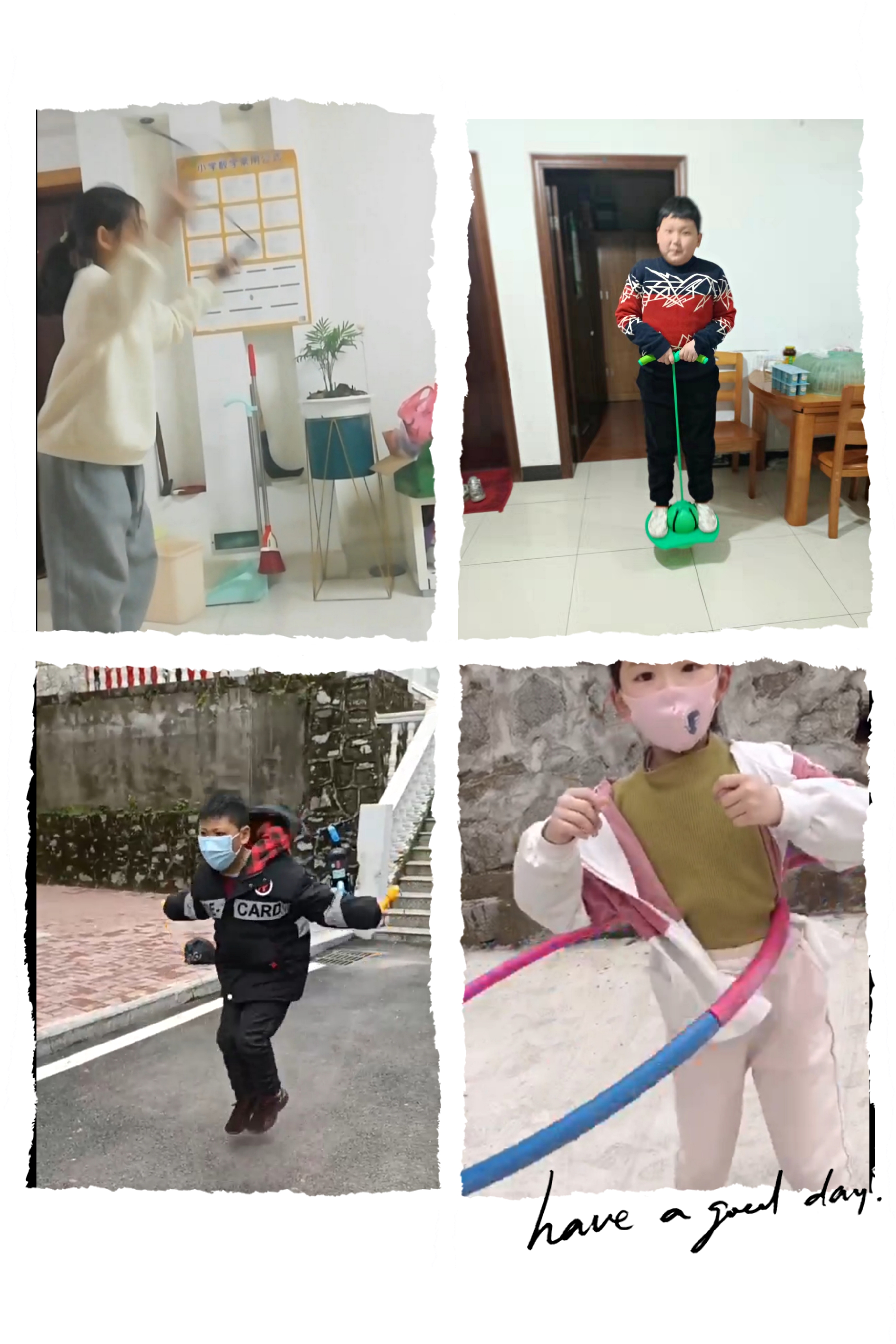 运动不息,生命不止。在不外出、不聚集的前提下,孩子们的活动场所搬到了屋内楼道。