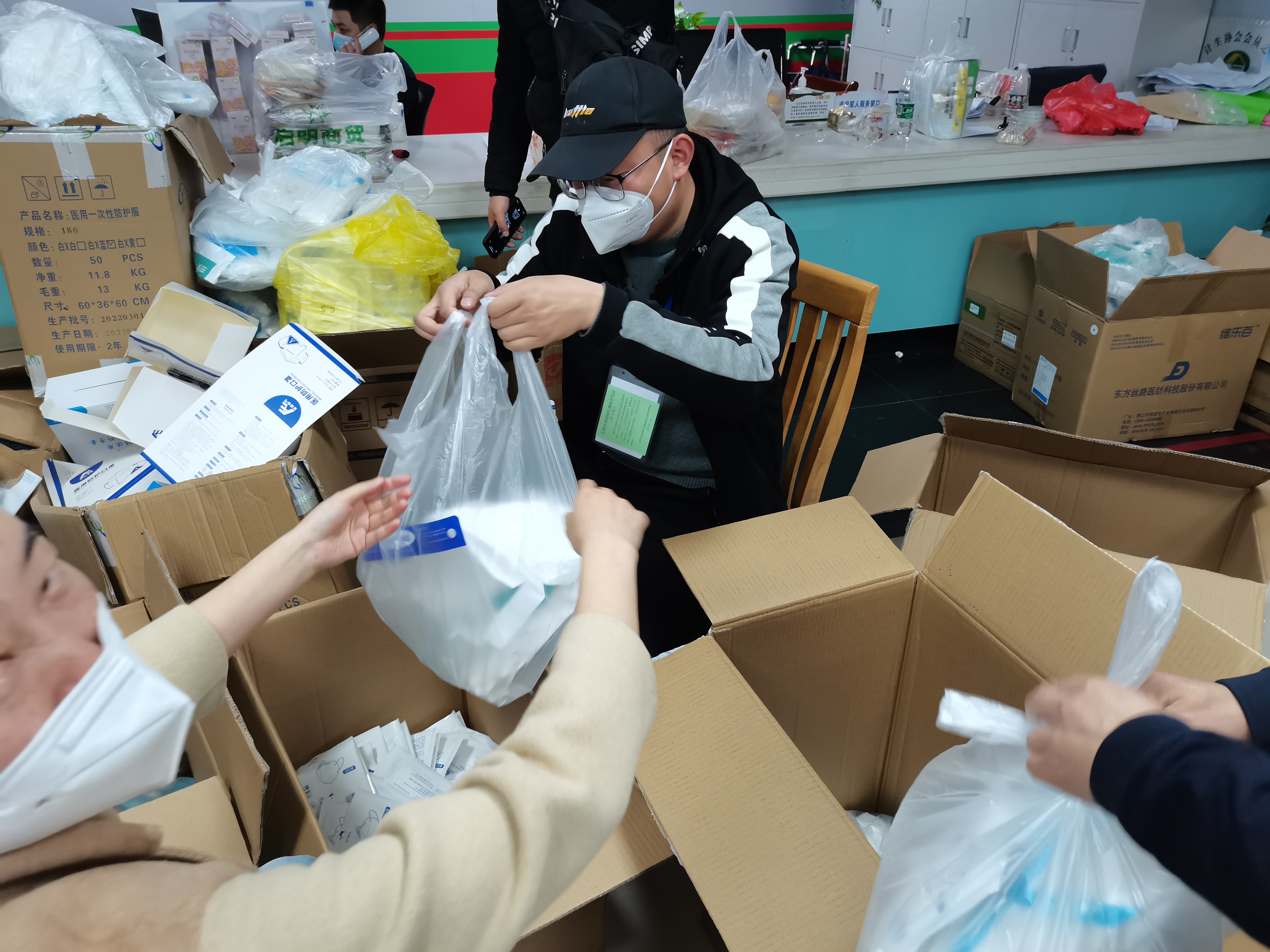 流调之余,朱老师还帮助他们分拣医疗物资,俗称“大白五件套”,保证这些医疗物资安全的送到每一位需要的人手中。
