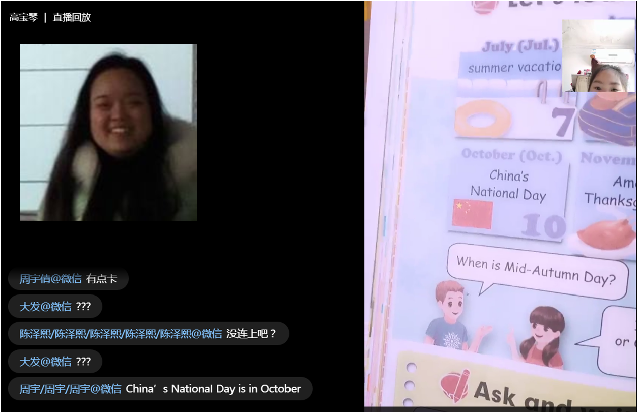 老师们开始上网课了。每一个学习日,我们都能看见、听见那些熟悉的声音。老师们准备好当天的课程,与我们一起学习,指导我们完成作业。老师当心我们掉队了,就发来小视频教我们突破学习重点,利用直播课讲解各门作业,还有老师和我们同步直播,一边听课学习,一边讲解重点。音乐老师教我们唱歌,美术老师评点绘画,体育老师带着我们做运动,班主任还给我们设计各种活动。我们虽然身在各家,学习的事却没有一点儿耽误。老师们,你们辛苦了。