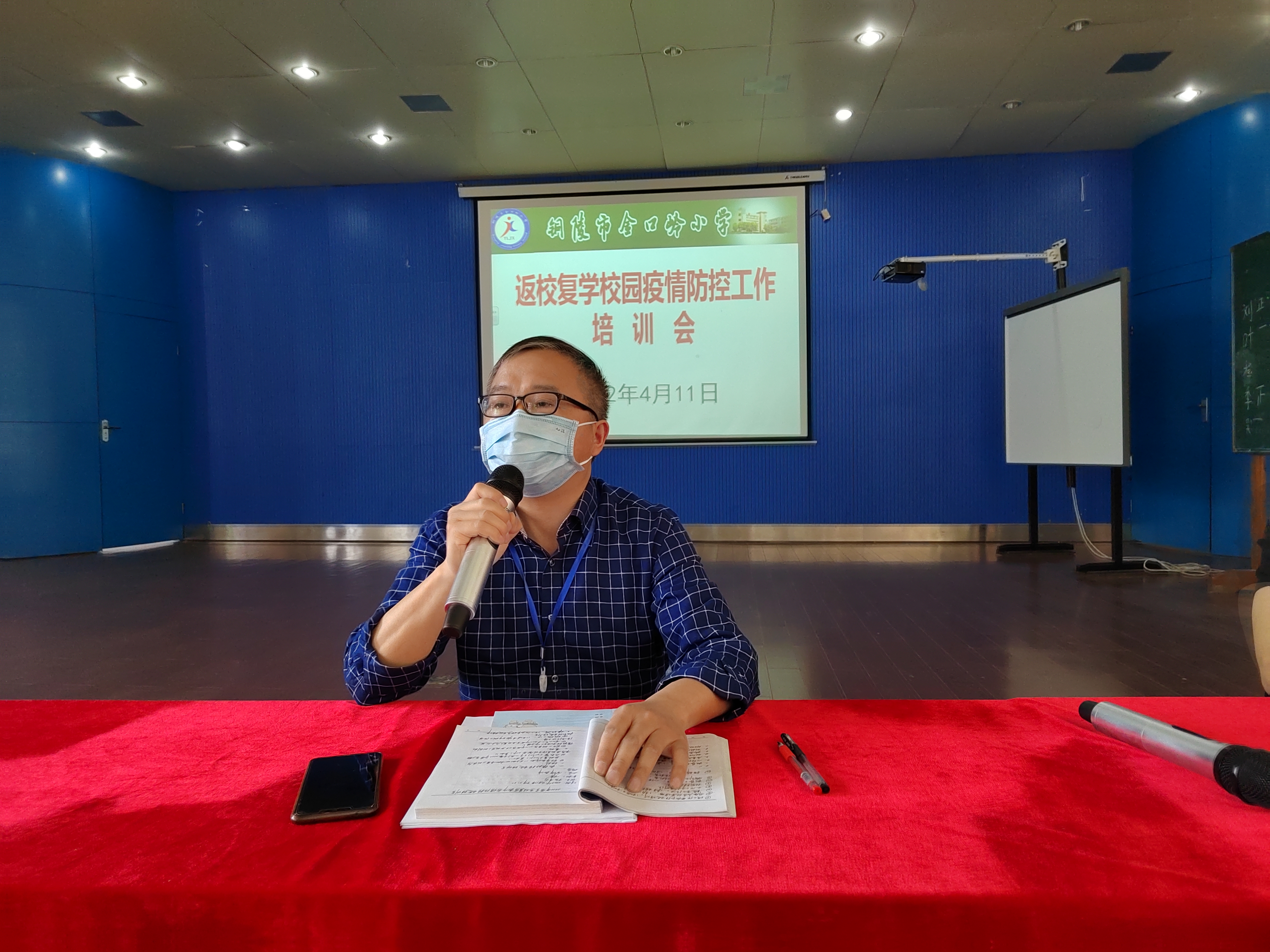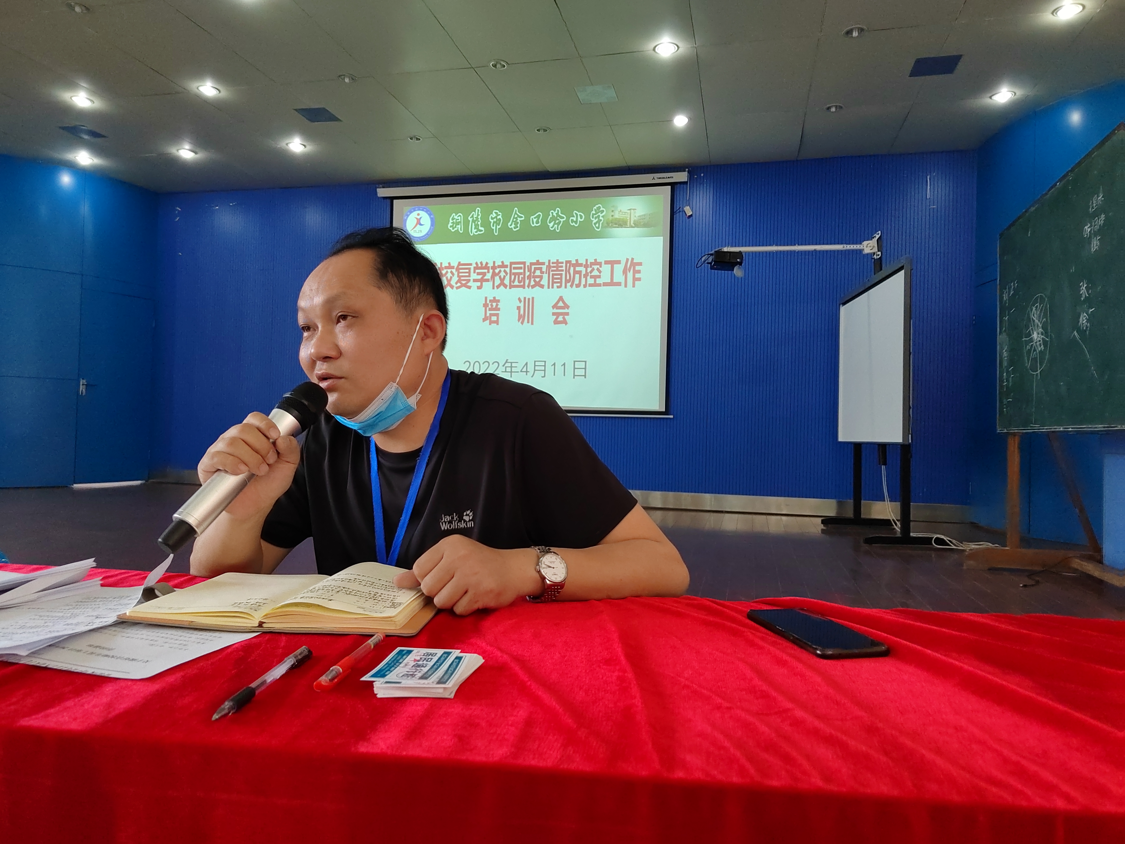 会议第一项,副校长黄言斌就返校复学前后“疫情防控”开展了专题培训。首先黄校长带领全体教师学习了《铜官区2022年春季学生返校复学校园疫情防控和安全工作方案》,并对就复学前后师生和学生家长需要注意的细节进行了详细的说明。接着宣读了《德彩网2022年春季返校复学诋应急处置演练活动方案》,并就会后要开展的疫情防控应急处置演练进行了详细的安排。