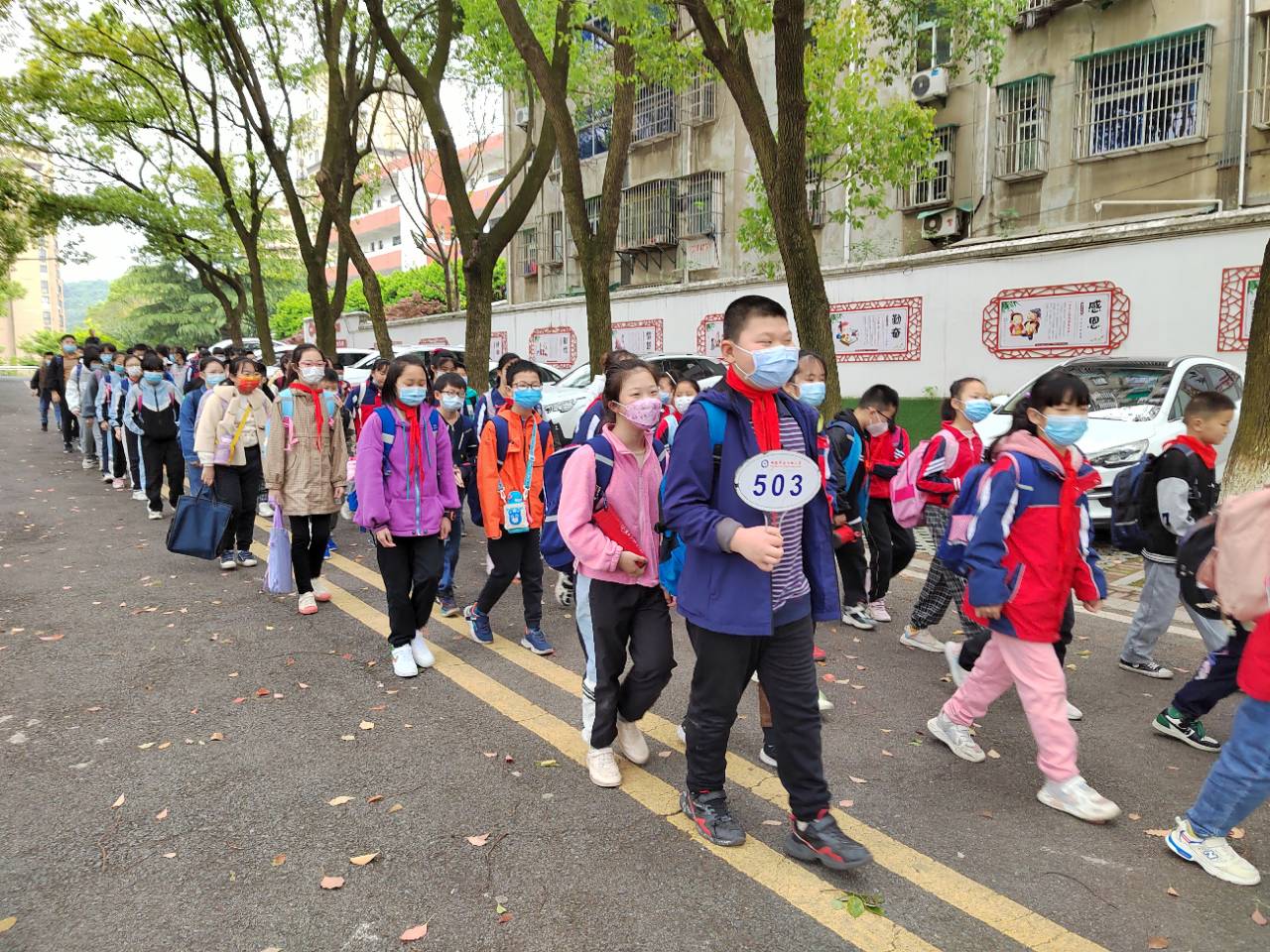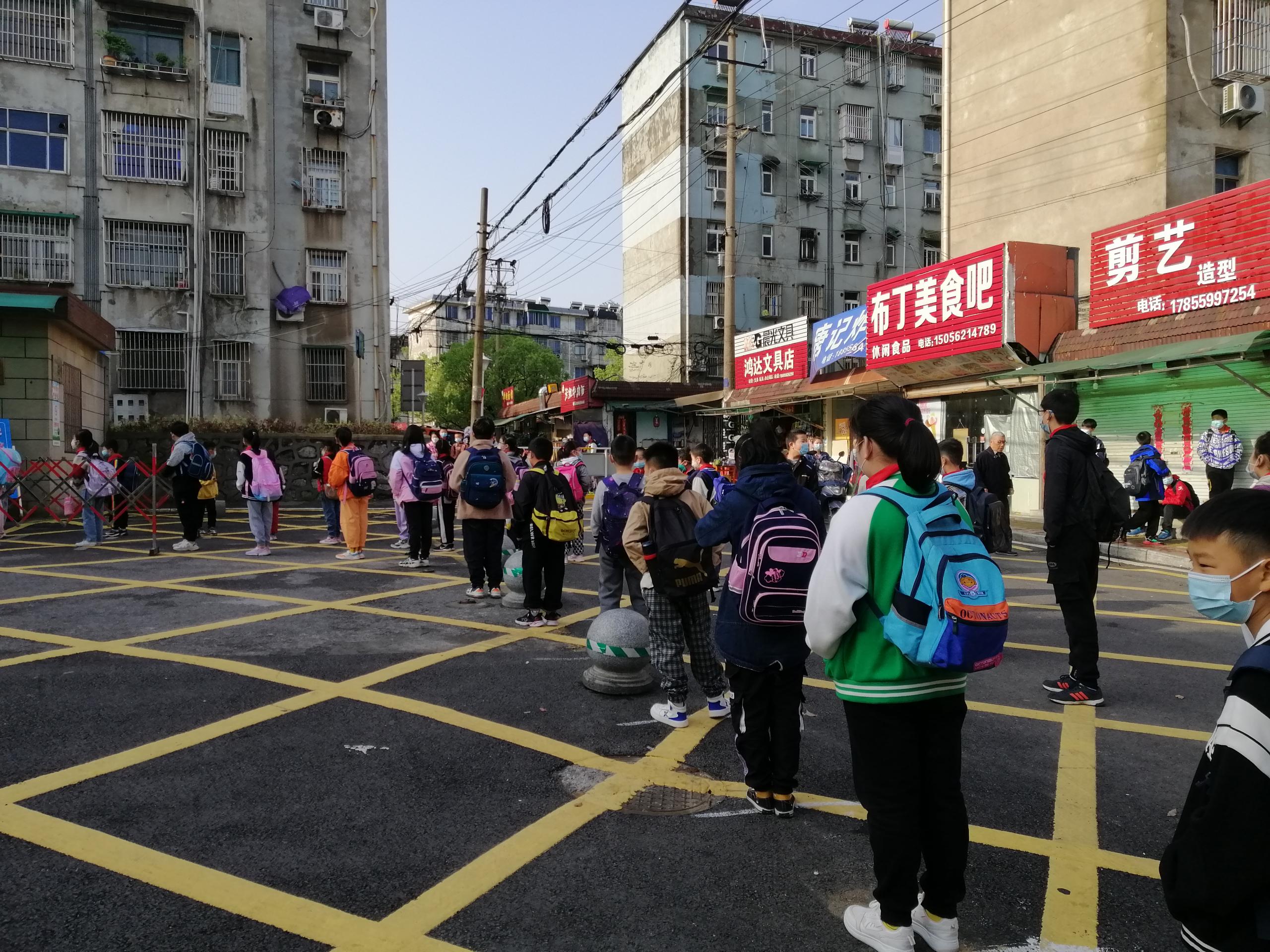 放学了,学校组织学生分年级、分时间按照队列进入家长接送区域。所有学生始终保持间隔一米的安全距离,班主任在等候区做最后的安全教育,强调孩子随家长直接回家,不在外逗留等。