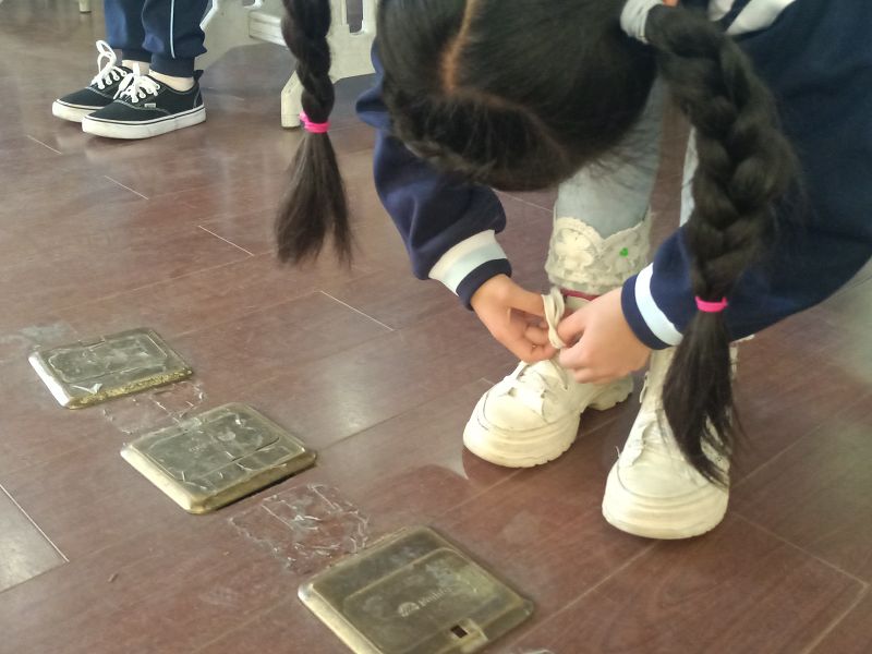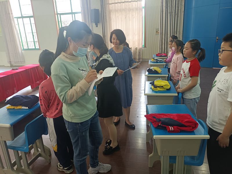 比赛分两个部分:一年级的叠穿衣服、系鞋带比赛和二三年级的叠穿衣服、系红领巾比赛。比赛中,选手们动作熟练,鞋服叠得整整齐齐、穿得迅速利索、鞋带系得结结实实、红领巾系得整齐漂亮……看着自己的劳动成果,每个选手都露出了得意的笑容。