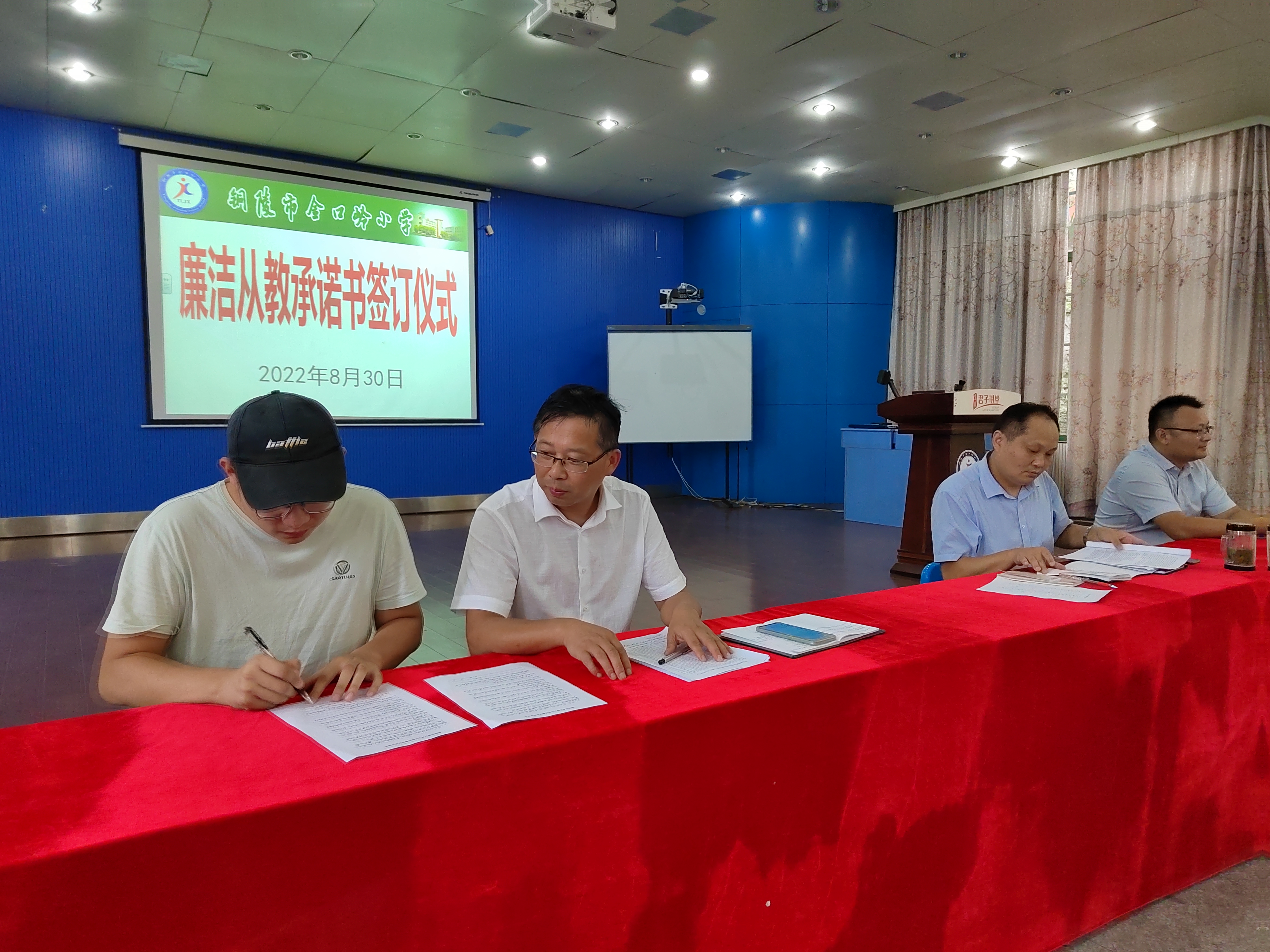 为了进一步加强学校师德师风建设,提高教师的职业道德素养,强化教师依法从教、廉洁从教的职业意识,不断提升教师师德水平。8月30日下午,德彩网召开了2022年秋季开学师德师风建设专题推进会暨廉洁从教承诺书签订仪式。会议由校长黄言斌主持,全体教师参加。