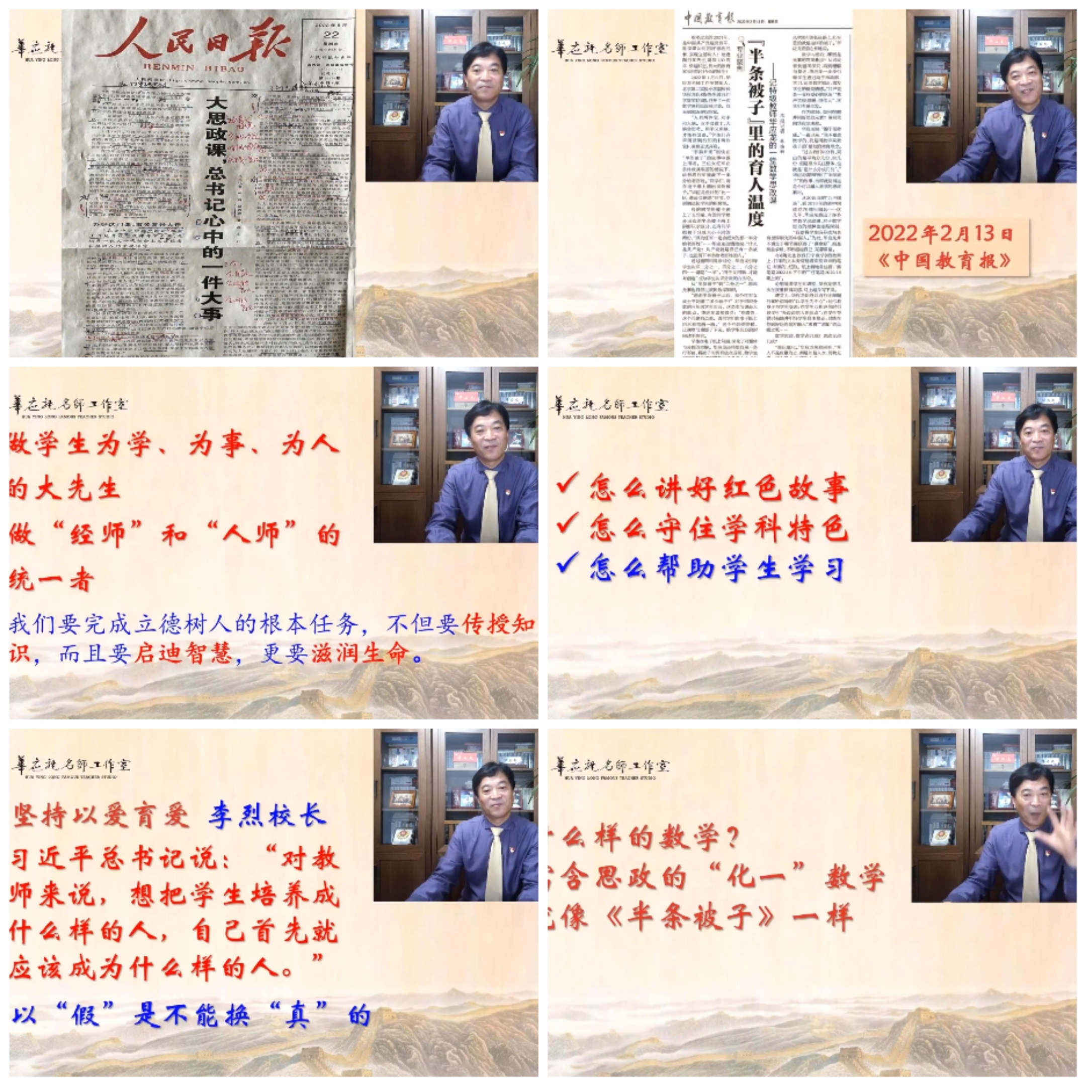 2022年10月26日下午,我校数学组开展校本教研活动,教研组长左周文老师主持,校领导和全体数学组教师参加。活动中,集中学习特级教师华应龙老师关于《新课标学科育人如何落地》线上讲座。华老师以“半条被子”为主线,将红色故事与分数的认识紧密结合,呈现了一堂生动的数学课。不仅体现了新课标中“三会”的核心素养,还真正做到了思政课与学科教学相融合。