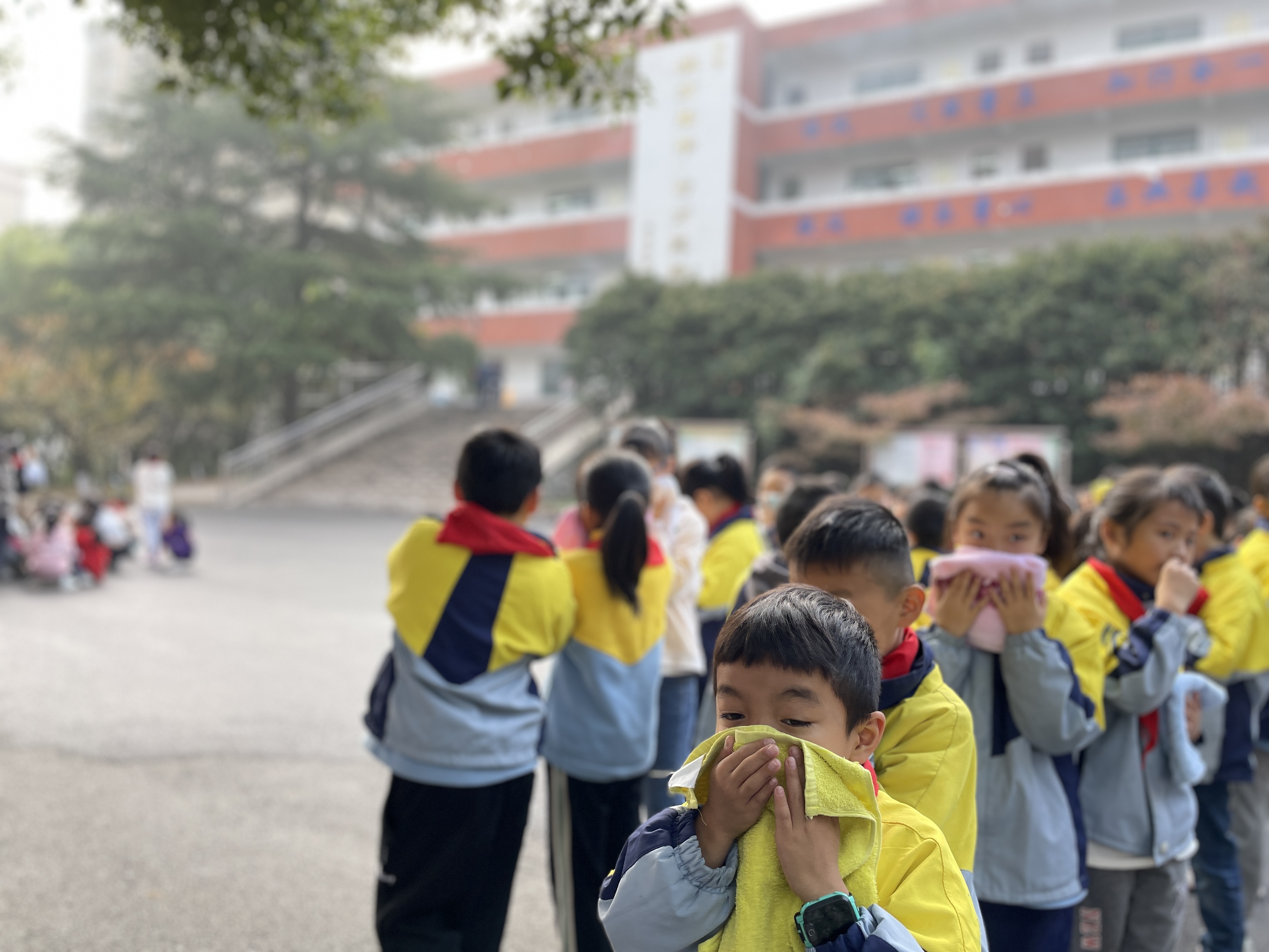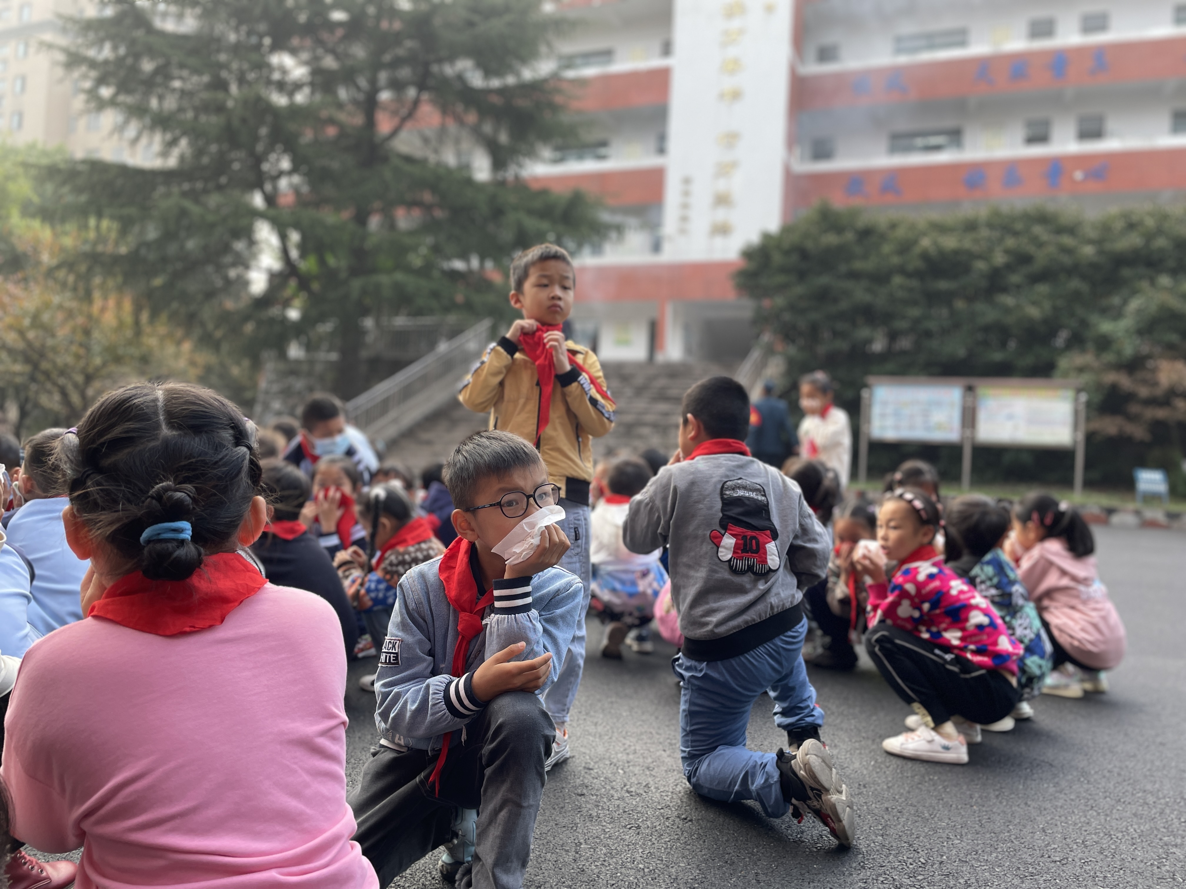 在疏散逃生环节,师生们按照火灾逃生疏散演练技巧,采用低头、弯腰、捂口鼻等安全动作快速、有序地疏散到安全区域。