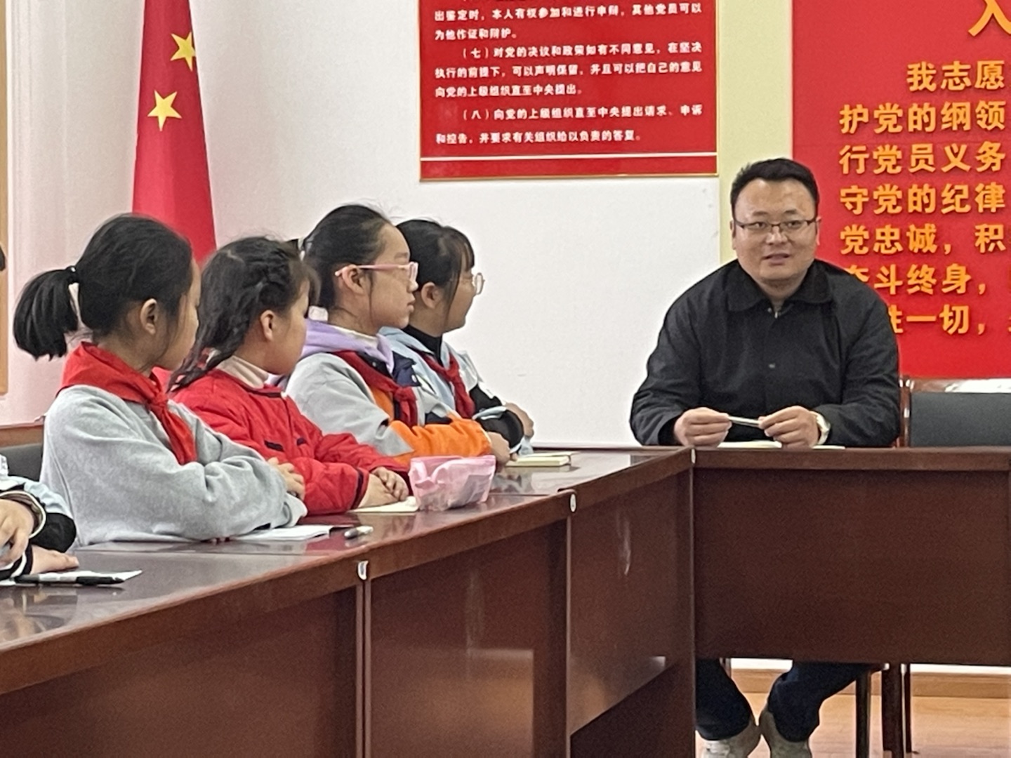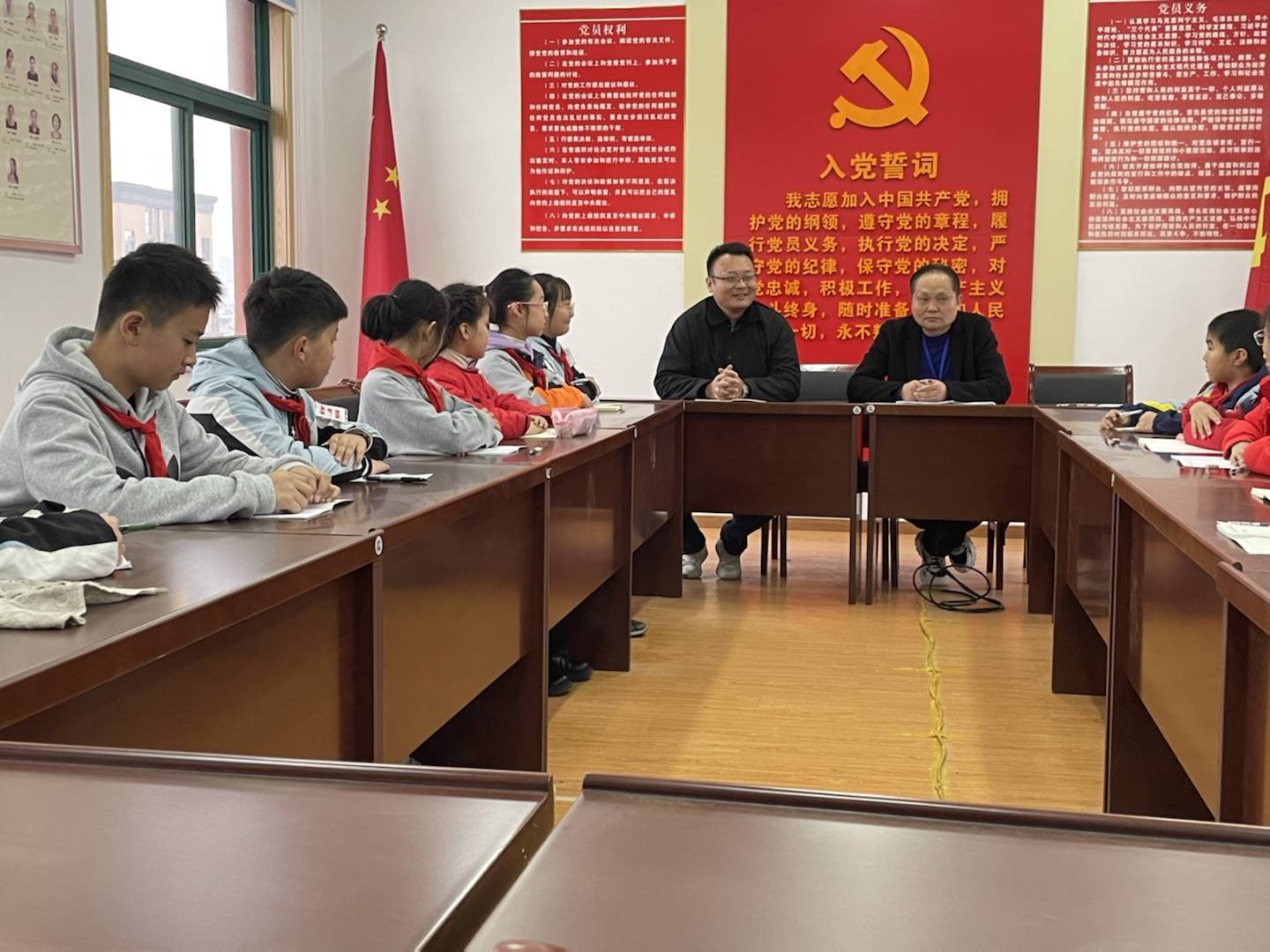 11月14日下午,我校召开了2022年新一届大队委第一次工作例会,校长黄言斌、赵永康参加并指导工作。