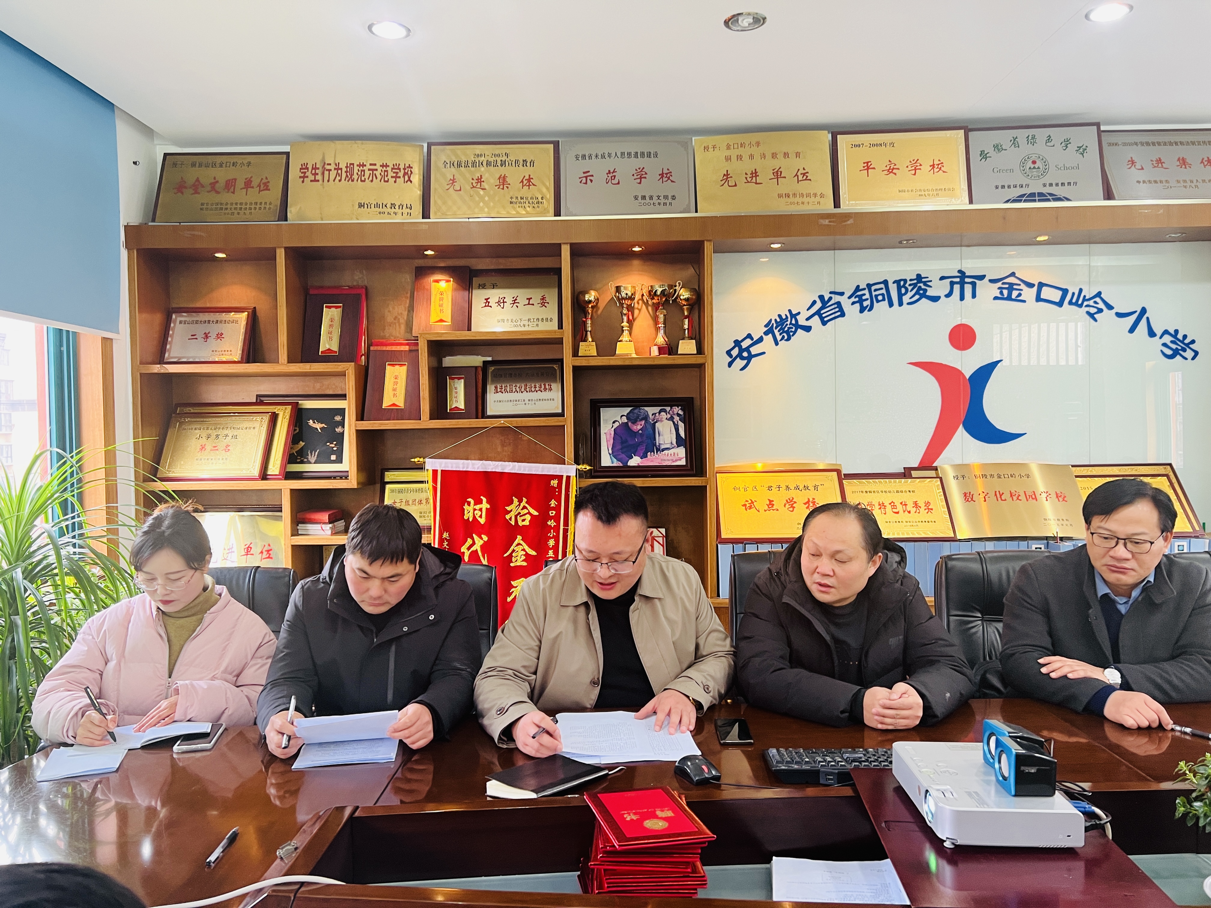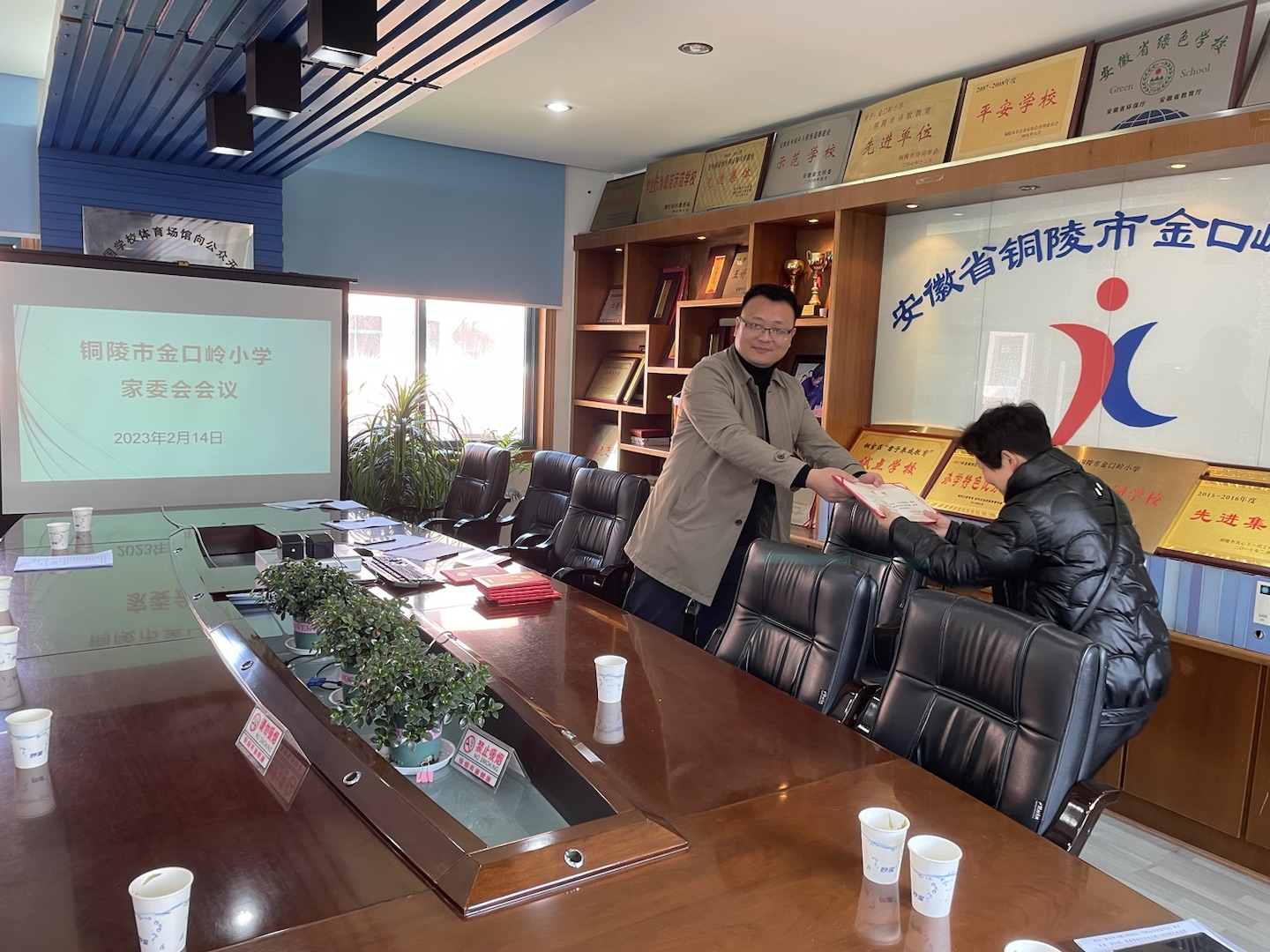 会上,赵校长代表学校对参会的校级家长委员会委员们表示热烈欢迎,对各位家长关心教育、支持教育的行动表示衷心感谢。会上家长委员们就孩子的学习、生活、及课外活动等向学校提出了一些宝贵的建议,如:加强孩子课外实践活动和孩子在校体育锻炼;如何有针对性的引导孩子正确使用电子产品等。校家长委员会主任陈树与参会委员就如何使用手机及电子游戏等,从专业的角度提出了自己的一些看法和建议。在对孩子教育问题及学校发展问题达成一致后,由赵校给参会委员们颁发了聘书,之后教导处主任储燕燕、大队辅导员章辉分介绍了本学期部门工作计划及重要事项,并对家长在孩子教育方面提出建议。