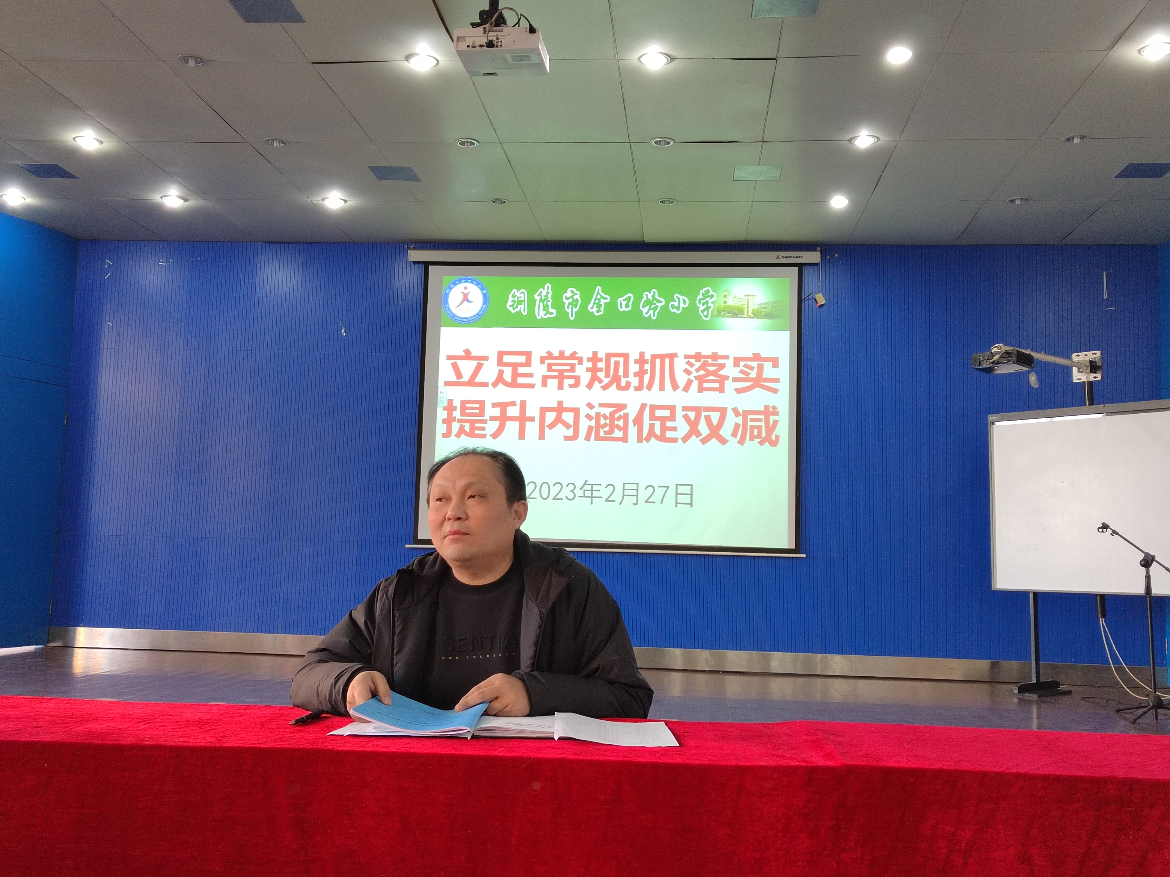 为进一步落实“双减”政策,探索提升学校教育教学质量的有效途径,2月27日下午,铜官区德彩网召开“立足常规抓落实 提升内涵促双减”教育教学质量专项会议。会议由校长黄言斌主持,全体教师参加。