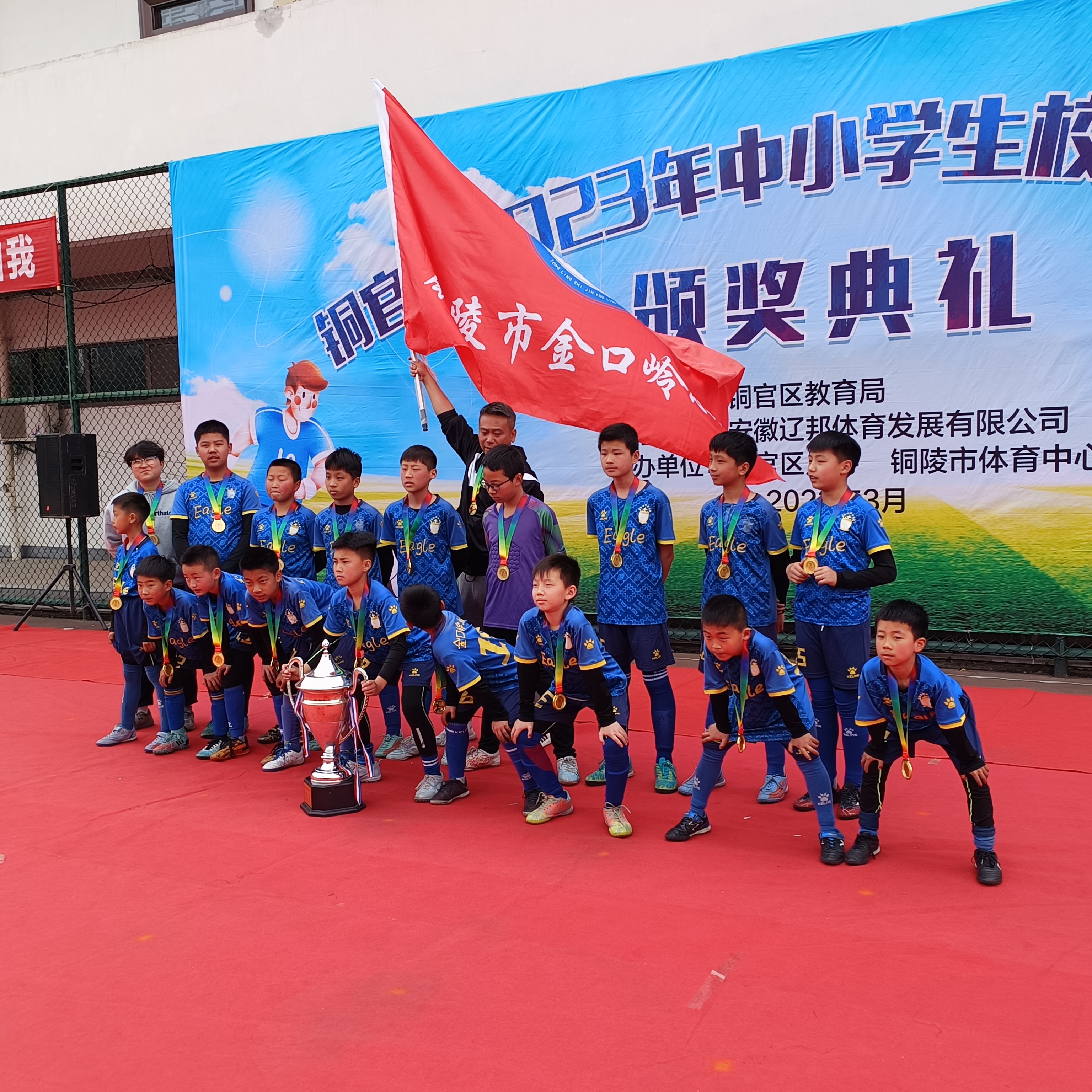 2023年3月31日下午,随着裁判员终场的一声哨响,历时一个月的铜官区中小学生足球联赛落下帷幕。本届比赛小学男子组采用8人制,22支参赛队。由于比赛地点在新体育中心,我校足球队每场比赛都要长途跋涉横跨整个市区进行赛前的准备。小组赛中三战全胜头名晋级16强,在第二轮淘汰赛抽签分区不利,多名队员带伤的情况下,拿下三连胜从死亡半区突围进入决赛。