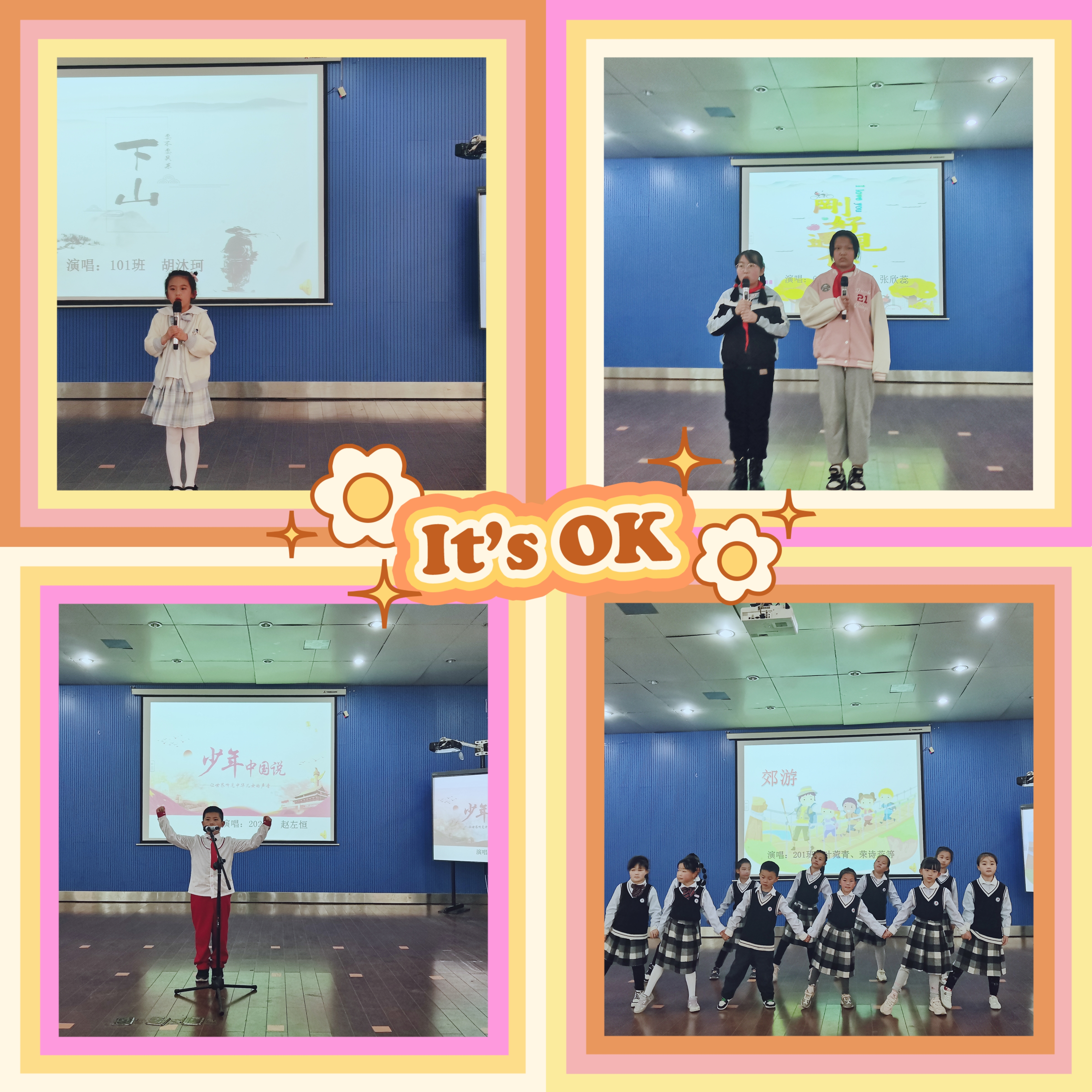 大赛在欢快的音乐声中拉开帷幕。本次参赛曲目风格多样:流行、民族和通俗精彩纷呈。选手们载歌载舞,有独唱、有合唱、有伴唱,稚嫩的童声表达着心中的美好与向往,眉宇之间显露出自信与快乐。选手们活泼、自然的舞台表现,感染了在座的老师和同学,赢得台下观众的阵阵掌声,艺术的气息弥漫在报告厅的每一个角落。