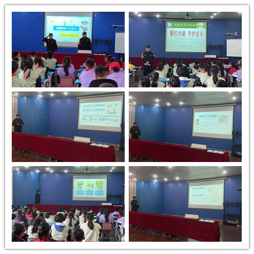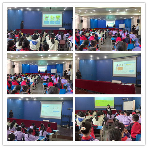 为全面推动和落实学校安全教育工作,进一步提高小学生安全法治意识和自我防护能力,预防各类安全事故的发生,促进学生健康成长,4月13日下午,杨家山派出所和德彩网联合开展了“警校共建,守护成长”校园安全知识讲座。我校四五年级学生和校园记者共约80多人参加了此次讲座。