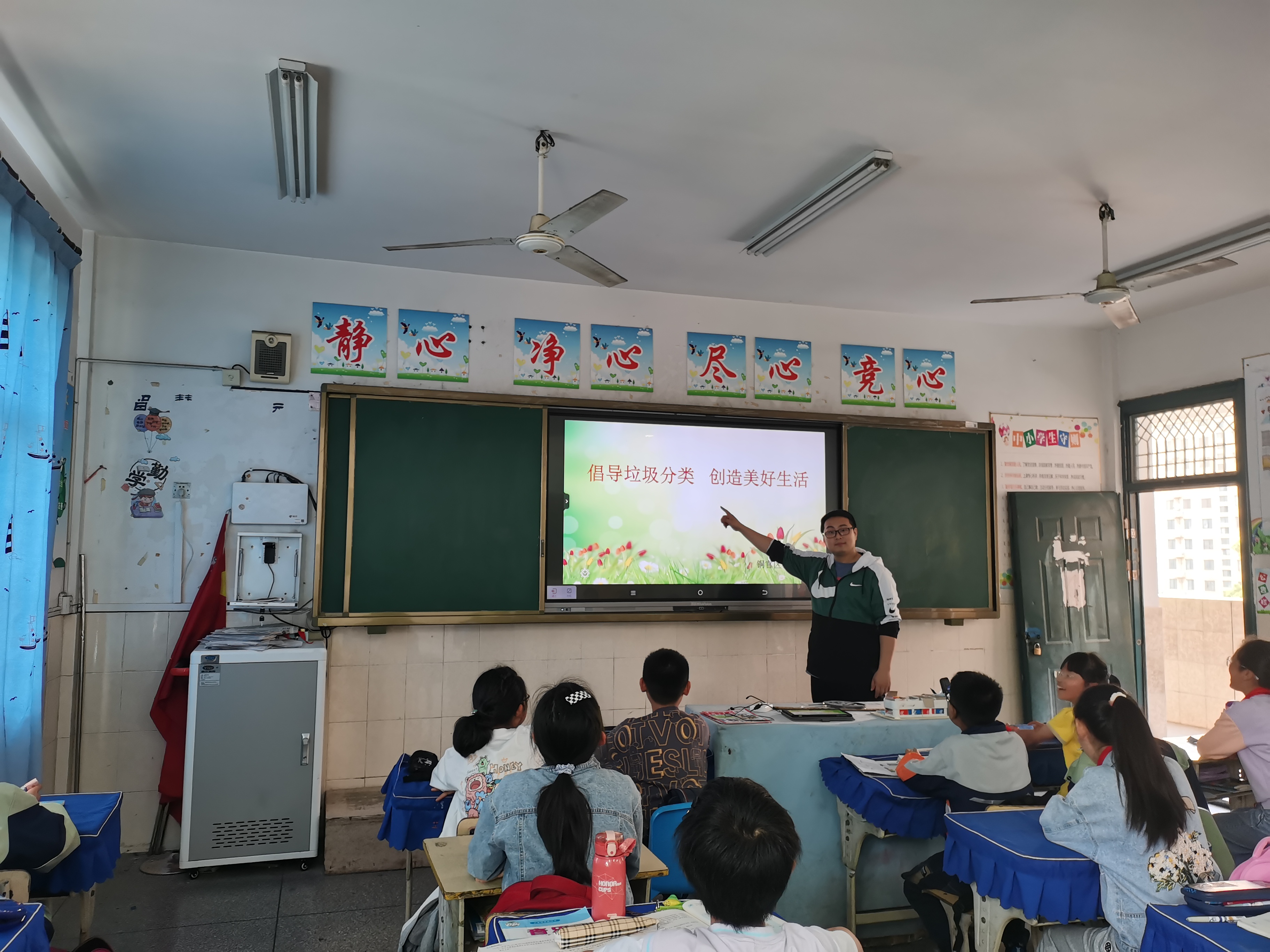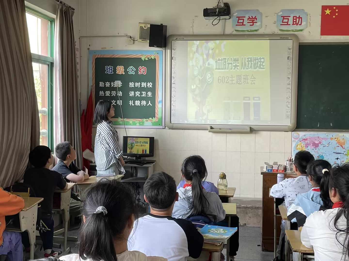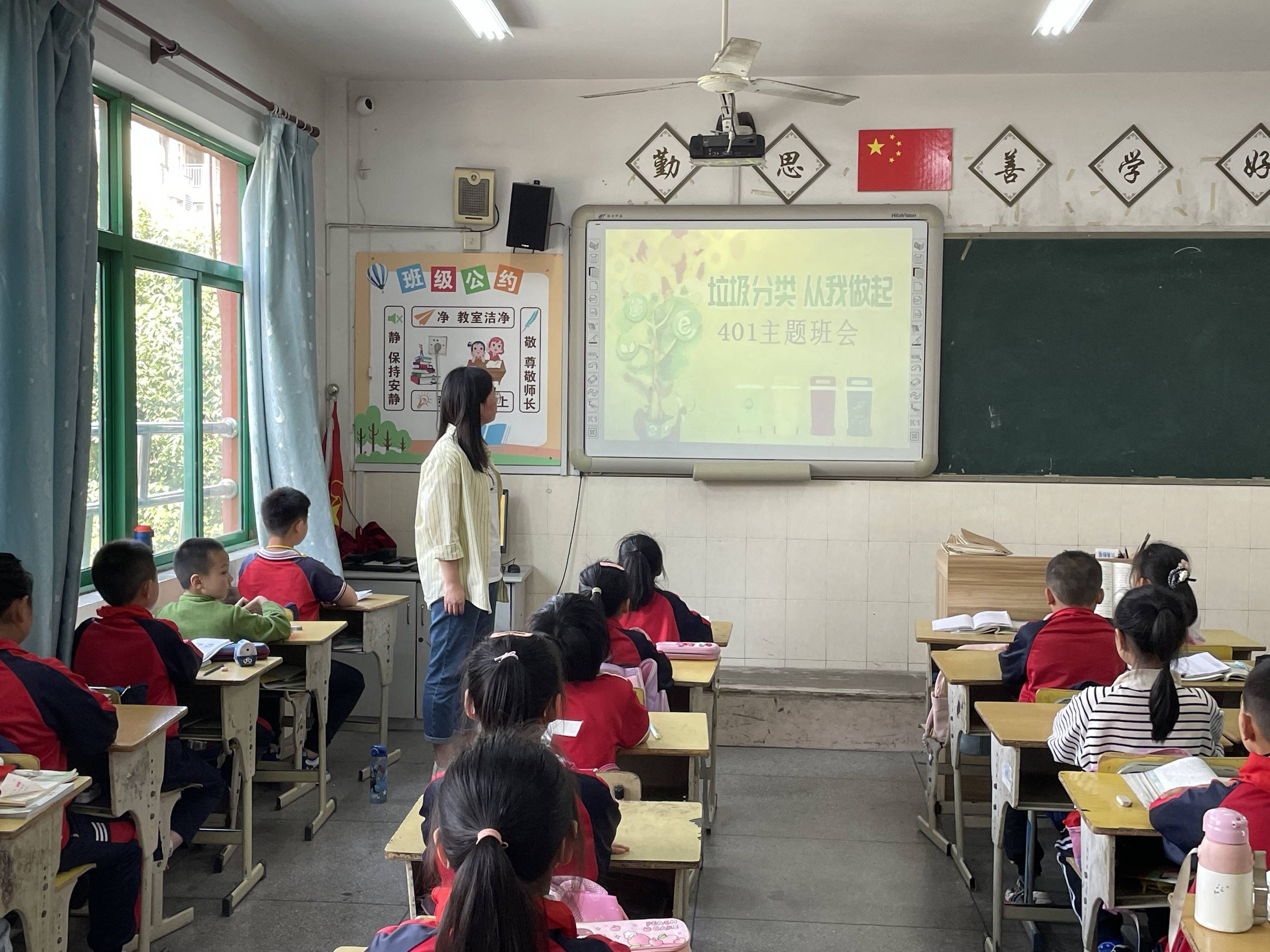 班队会上,各班班主任老师带领同学们进行了垃圾分类相关知识的学习,了解了《铜陵市城市生活垃圾分类管理办法》。在实际操作演示中,班主任详细讲解了在班级、校园和家庭中如何进行分类,以及班级常用垃圾分类等。