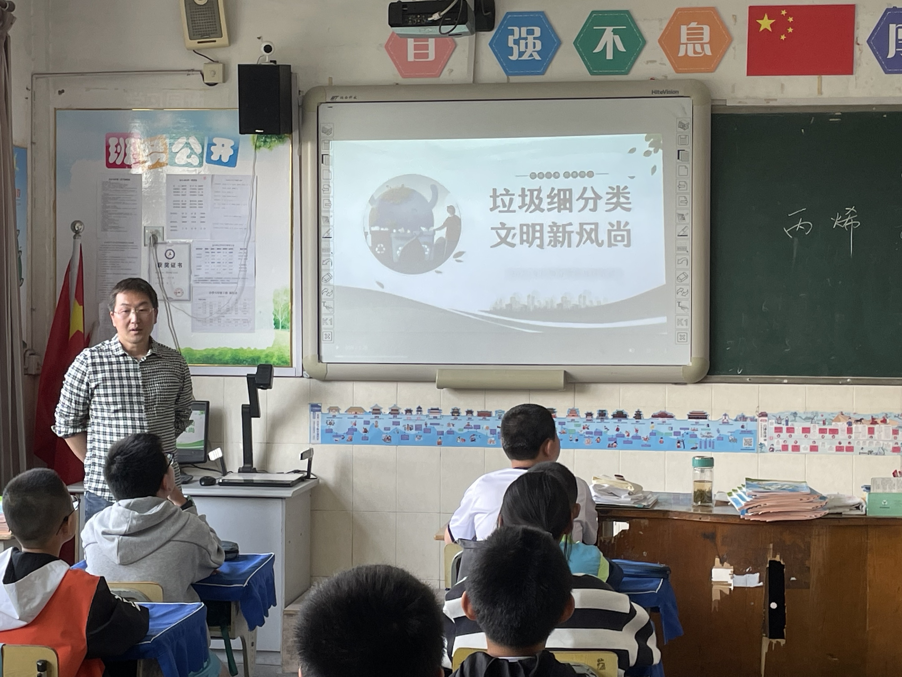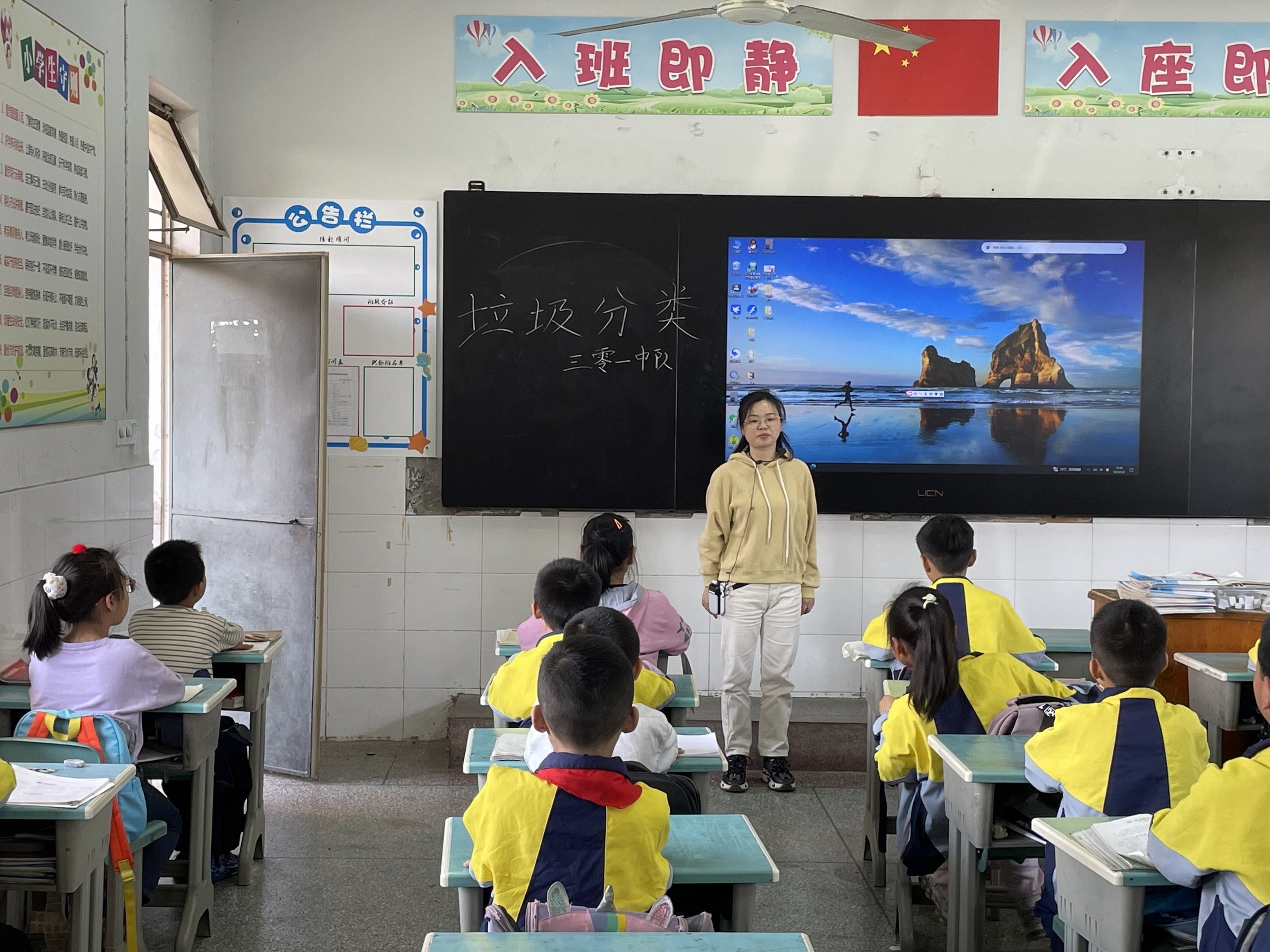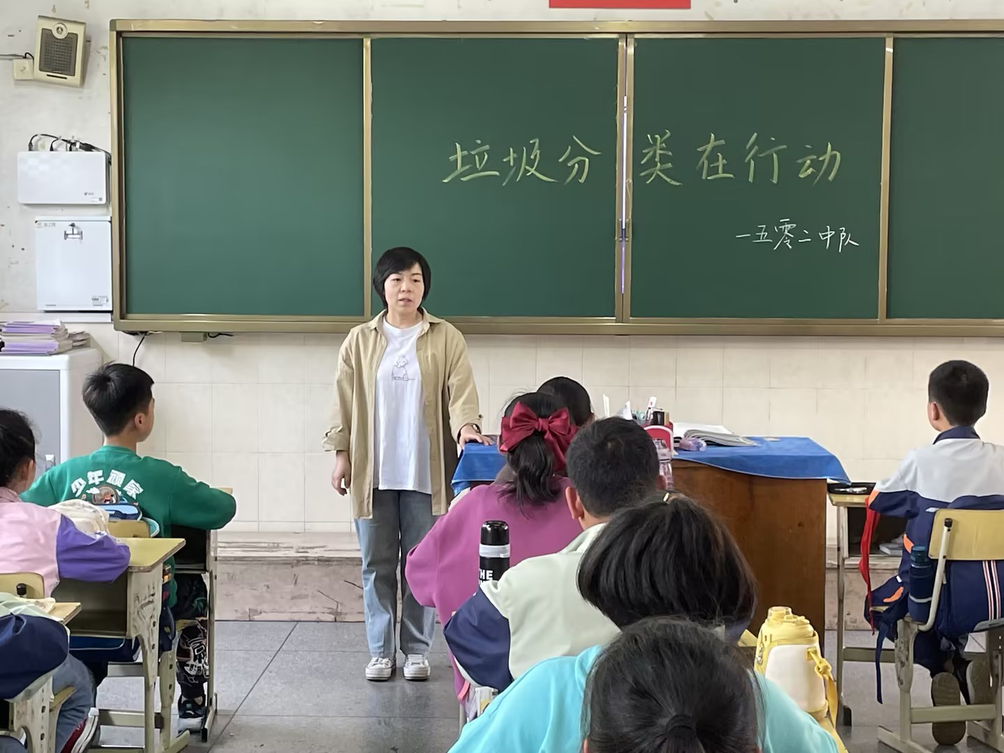 班队会上,各班班主任老师带领同学们进行了垃圾分类相关知识的学习,了解了《铜陵市城市生活垃圾分类管理办法》。在实际操作演示中,班主任详细讲解了在班级、校园和家庭中如何进行分类,以及班级常用垃圾分类等。