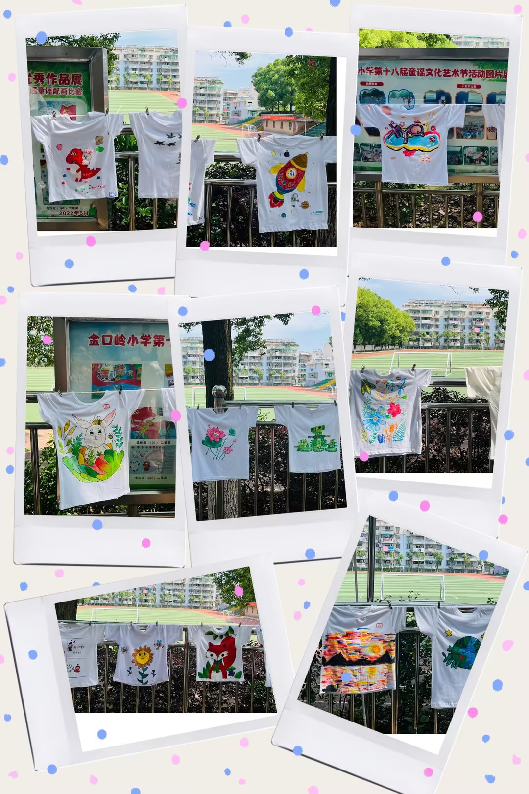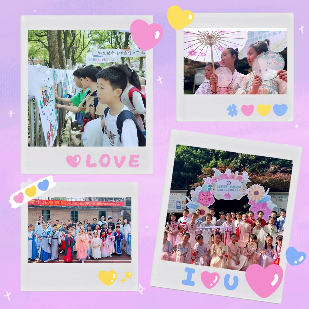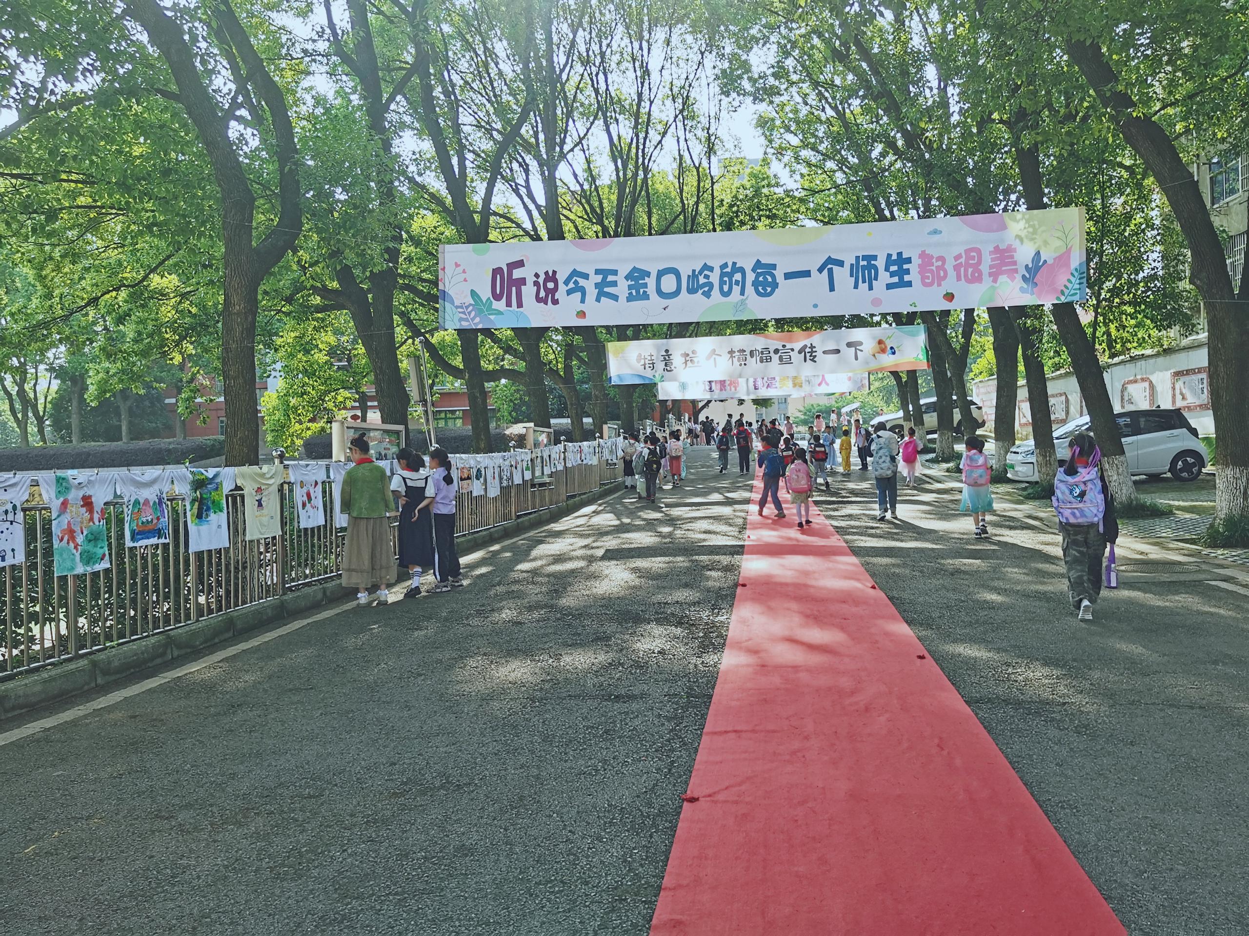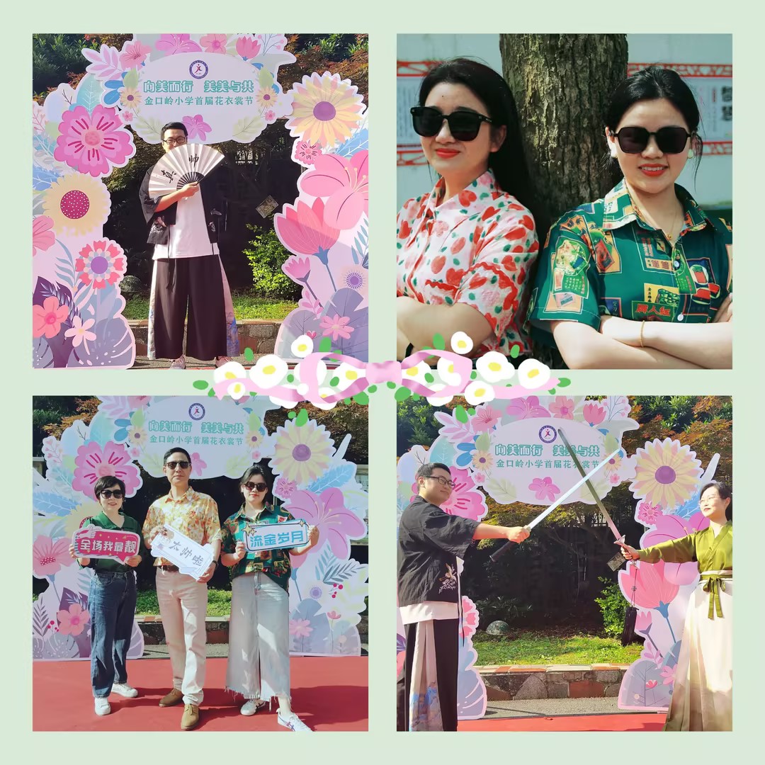 一进校门,宛若置身花的海洋,气派的红毯由林荫大道延伸到小广场,鲜艳的显示屏展示着本届花衣裳节的主题,多彩的条幅营造出欢乐的氛围,一件件由学生们亲手绘制的美丽T恤迎风招展,绚丽多彩的拱形门前打卡拍照的师生络绎不绝,俏皮可爱的拍照卡牌供不应求,身着花衣裳的师生彼此打着招呼,校园里笑声不断,惊叹声此起彼伏,阳光、花朵、笑脸,汇成最美童年!