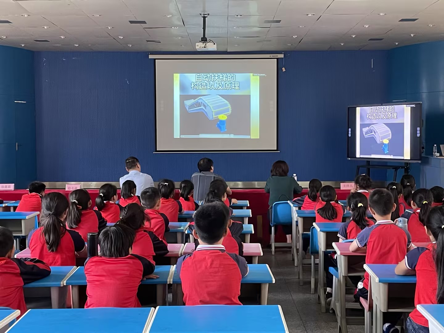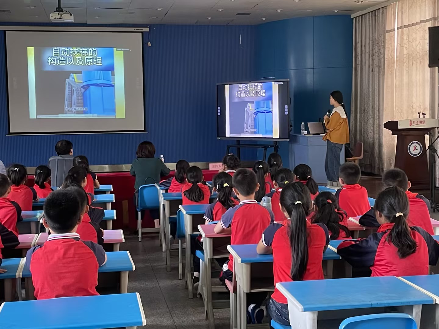 为提高小学生的电梯安全意识,了解电梯安全使用知识和应急预防措施等方面的知识,帮助学生从小树立安全乘电梯意识,养成安全乘电梯习惯,我校特邀铜陵市特检中心专家来我校进行“电梯安全教育”讲座。出席本次活动的领导有铜陵市市场监管局科技与信息化科陶小静科长,铜陵市特检中心夏明六主任,铜陵市德彩网黄言斌校长,铜陵市德彩网赵永康校长,电梯专家徐露露老师。