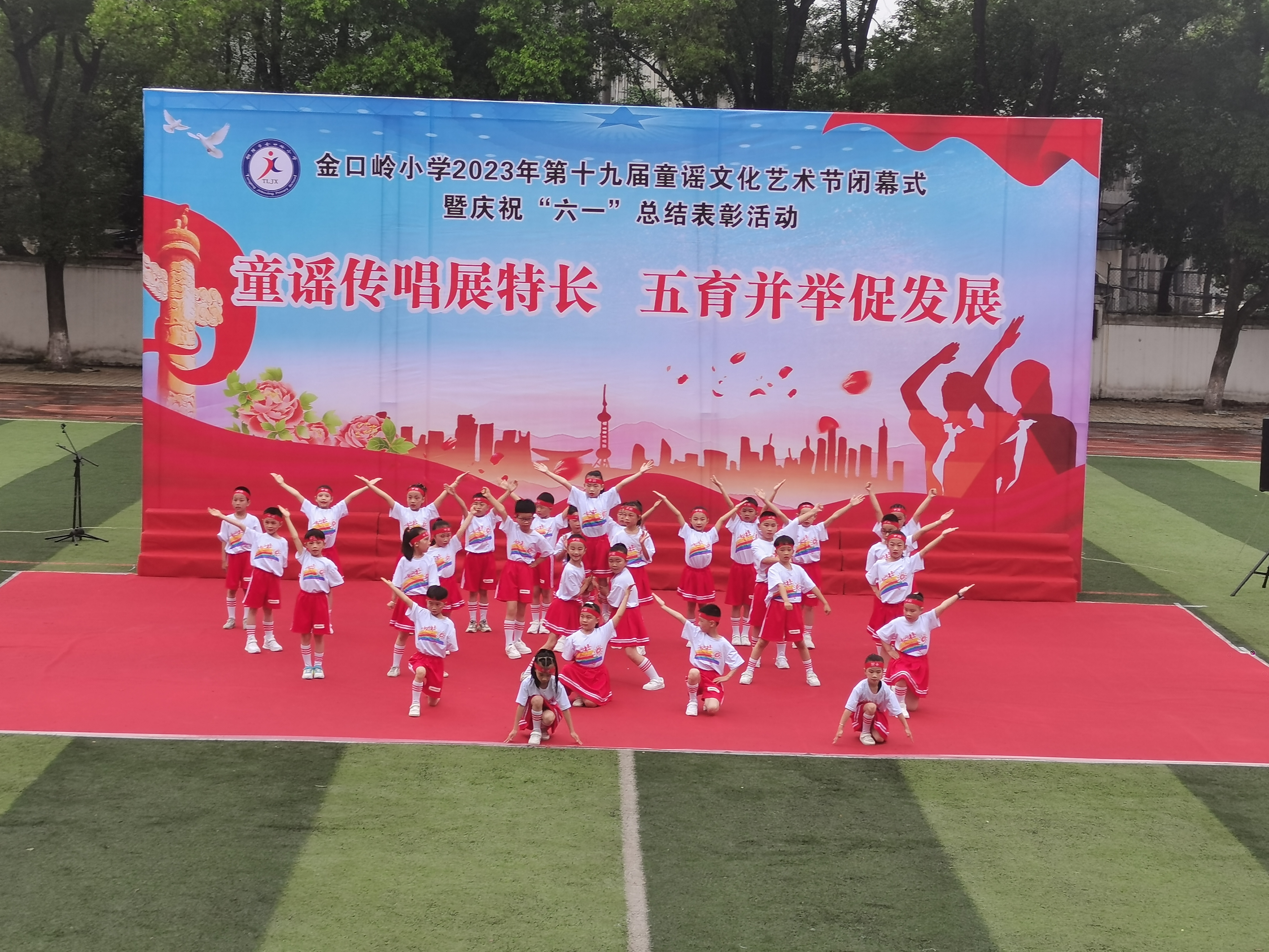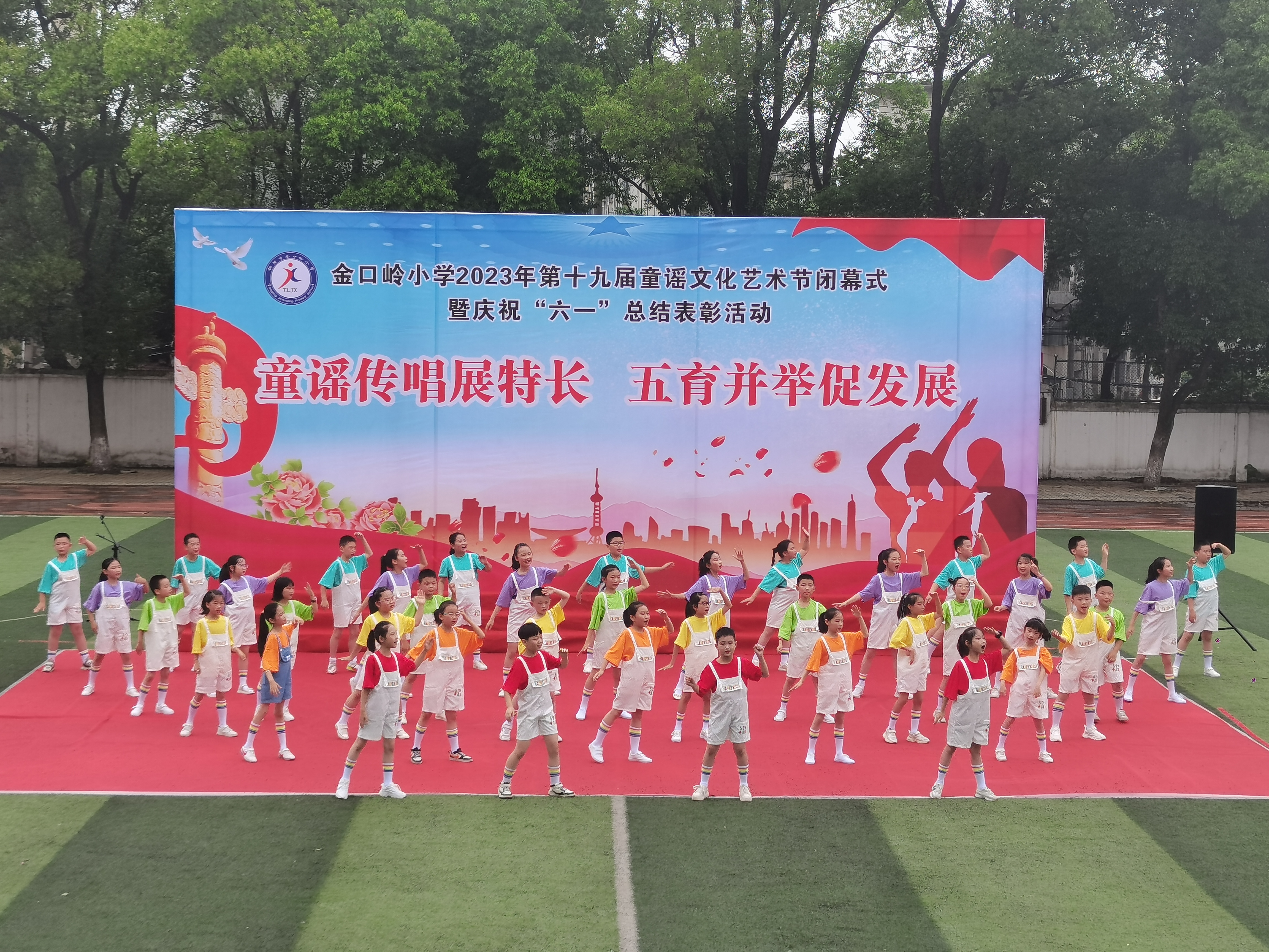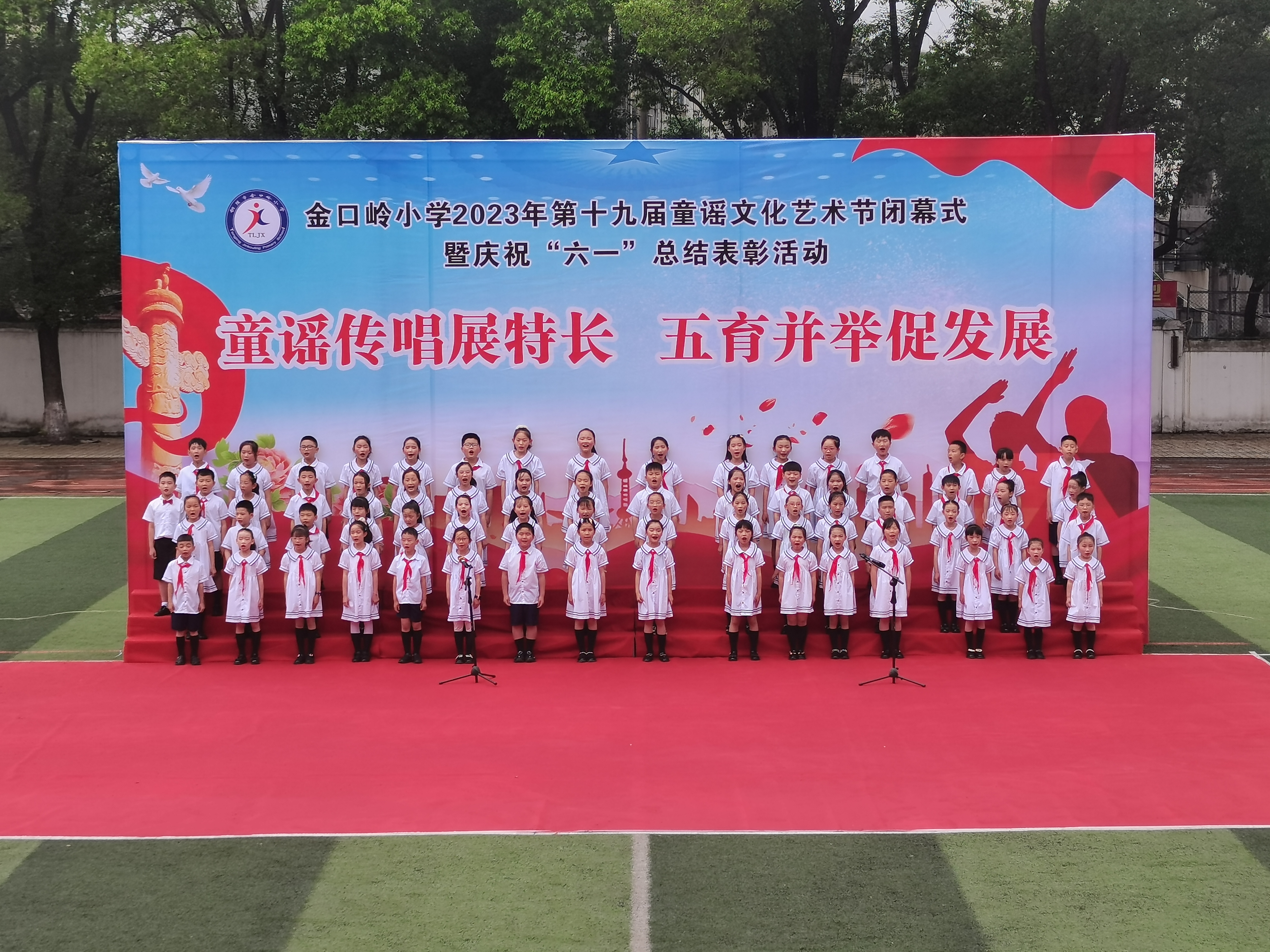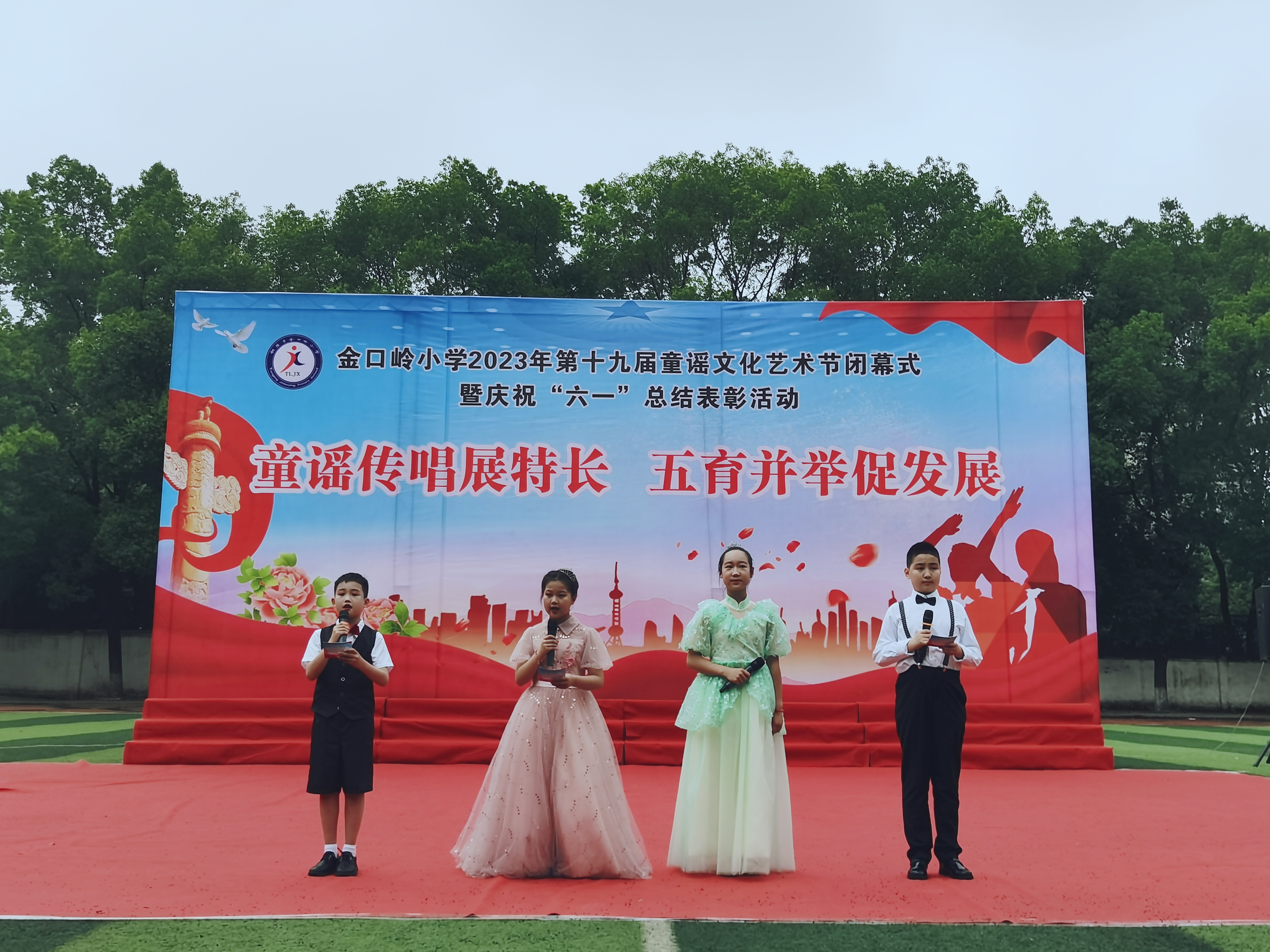 5月31日上午8:30,德彩网第十九届童谣文化艺术节闭幕式暨2023年庆祝“六一”总结表彰大会隆重举行。校园内歌声飞扬,整个校园弥漫着浓浓的节日气氛。大会由教务处主任储燕燕主持。