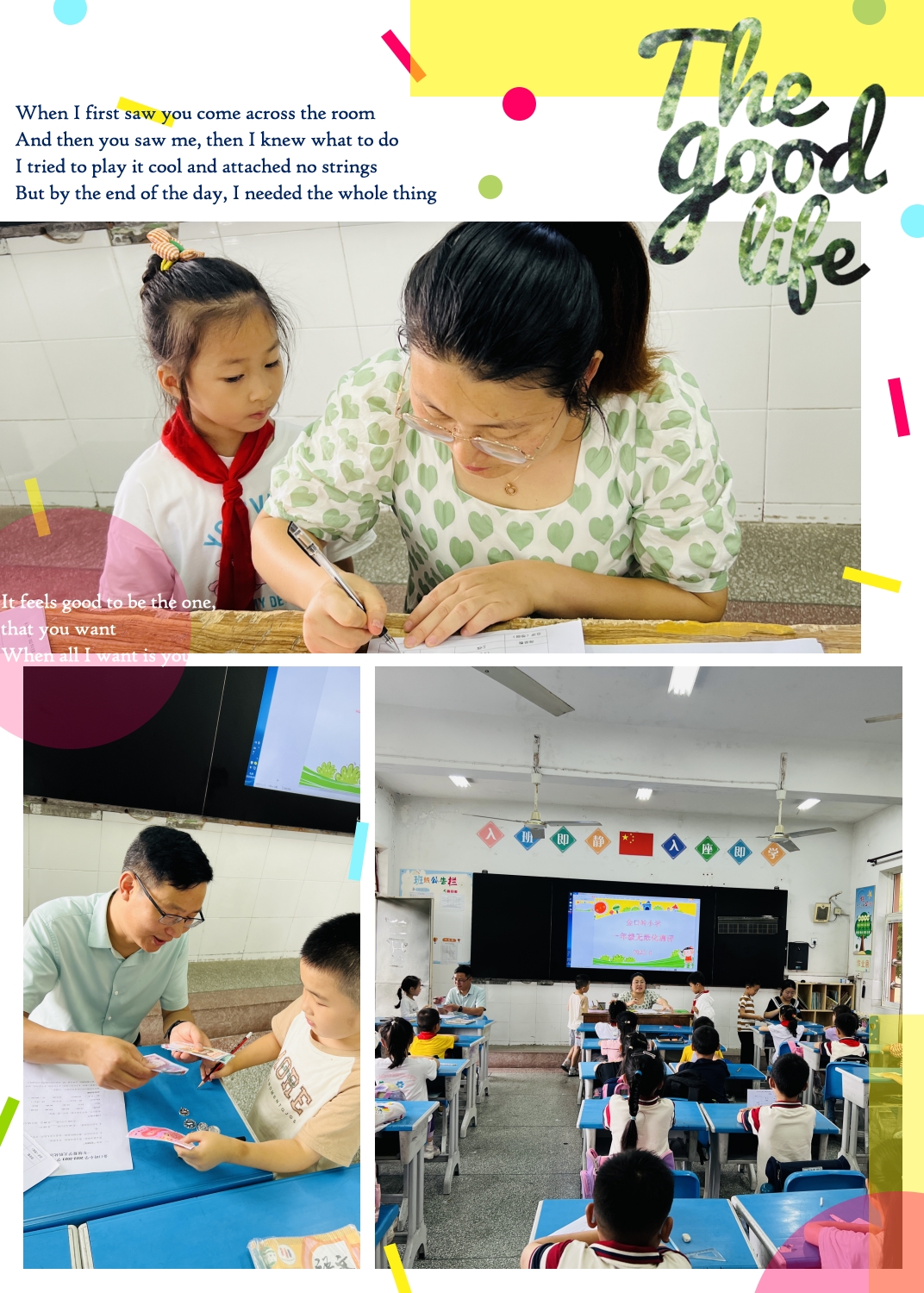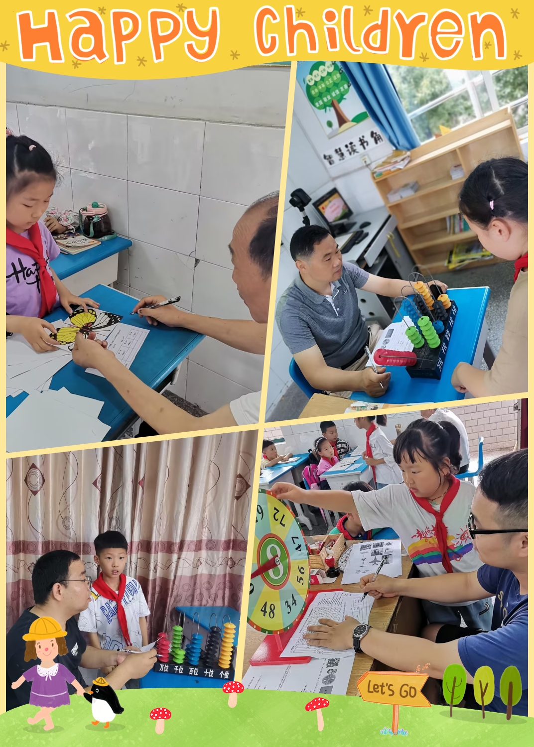 评价分两个半天开展。6月25日上午为语文评价,一年级共“识文断字(会认)”、 “伶牙俐齿(会说)”、 “声情并茂(会读)”三个环节;二年级共“识字乐园我最棒”、 “经典古诗我来读”、 “看图说话我在行”三个环节。6月26日上午为数学评价,一年级的主题是“小小理财师”, “口算小能手”、“拼图我最棒”;二年级主题是“ 拨珠读数我最快”、“除法计算我最棒”、“ 图形运动我在行”。 其中,“伶牙俐齿”通过看图当场说一段话;“小小理财师”考查学生对人民币的认识以及在生活中应用;“拨珠读数我最快”检查学生应试心理和动手能力……看似轻松愉快的期末评价,测评的是学生学科知识、心理健康、运动协调、思维品质等多维度。