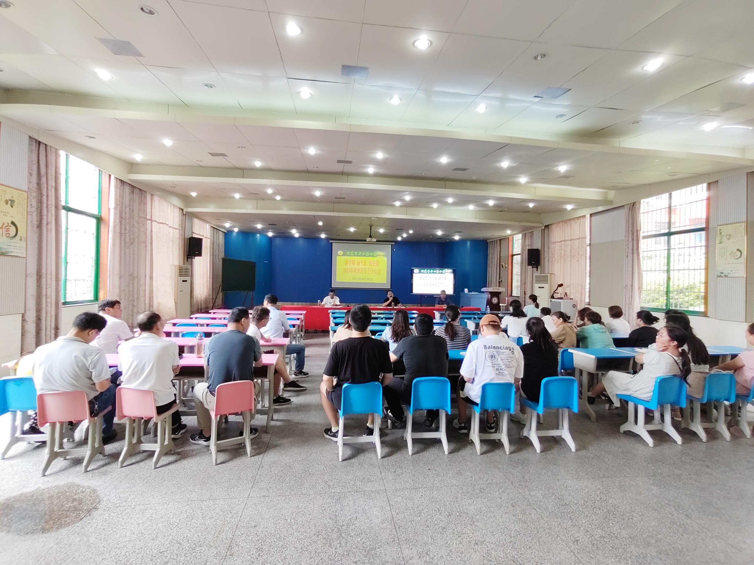 为全面部署新学期工作,开新局谱新篇,引领全校教师以饱满的精神状态、扎实的工作作风和高效的工作效率投入到新学期各项工作中,8月29日上午,我校召开了2023—2024学年新学期工作布置暨师德师风推进会,会议由党支部书记、校长黄言斌主持,全体教师参加。