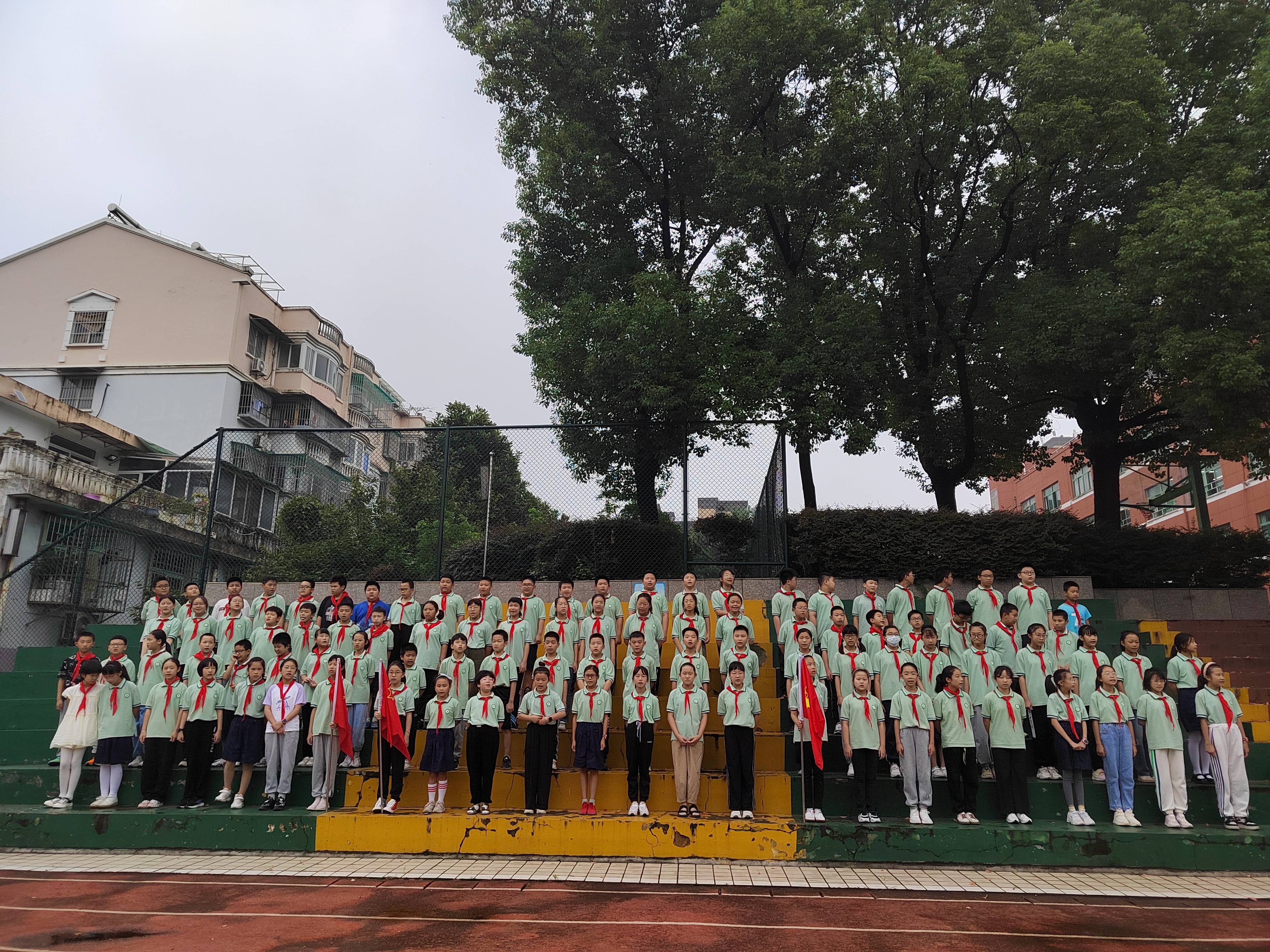 周一升旗仪式上,学校向全体师生发出倡议,号召师生们在各种场合使用文明语言,把说普通话当成一种习惯,使普通话从校园走向校外,在校园中营造一片文化氛围。