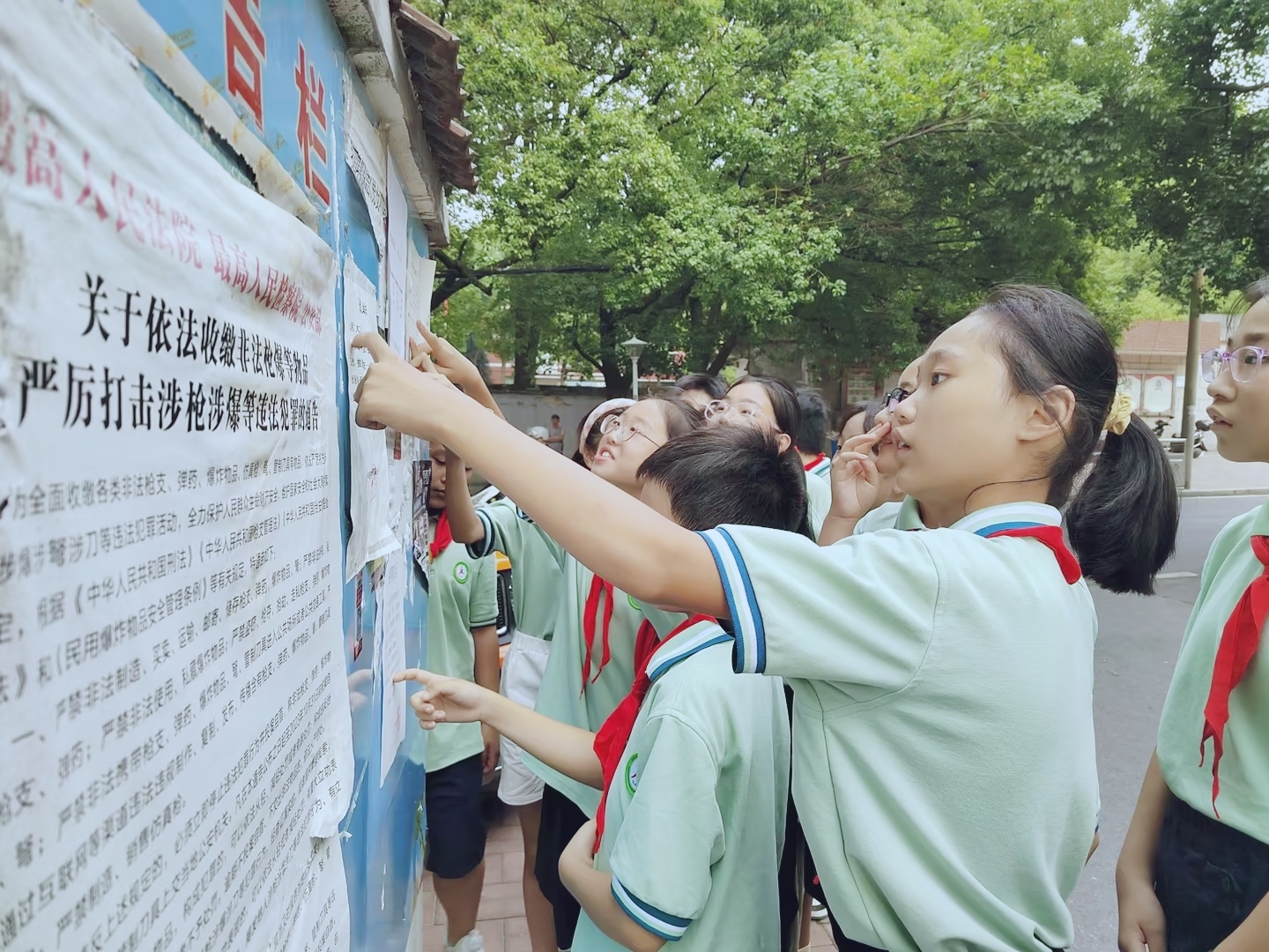 教导处还组织学生开展了“啄木鸟”纠错行动,对校园各处语言文字进行检查,发现不规范用字马上予以纠正,并把纠错行动延伸到公共场所,发动学生运用在学校所学的知识纠正家庭里存在的方言及不正确用字的现象,实现一个学生带动一个家庭,形成推广普通话、促进语言文字规范化的良好氛围。