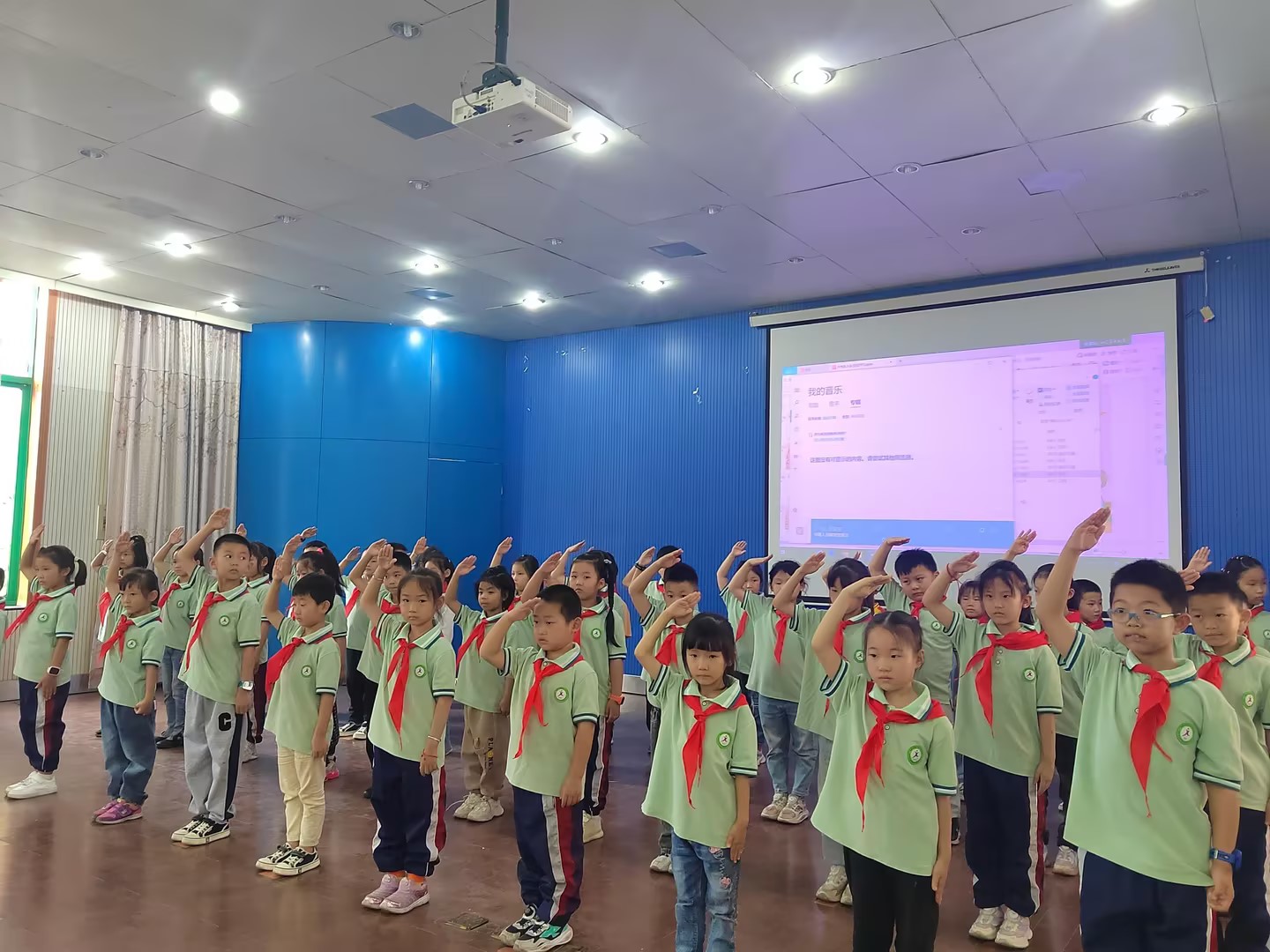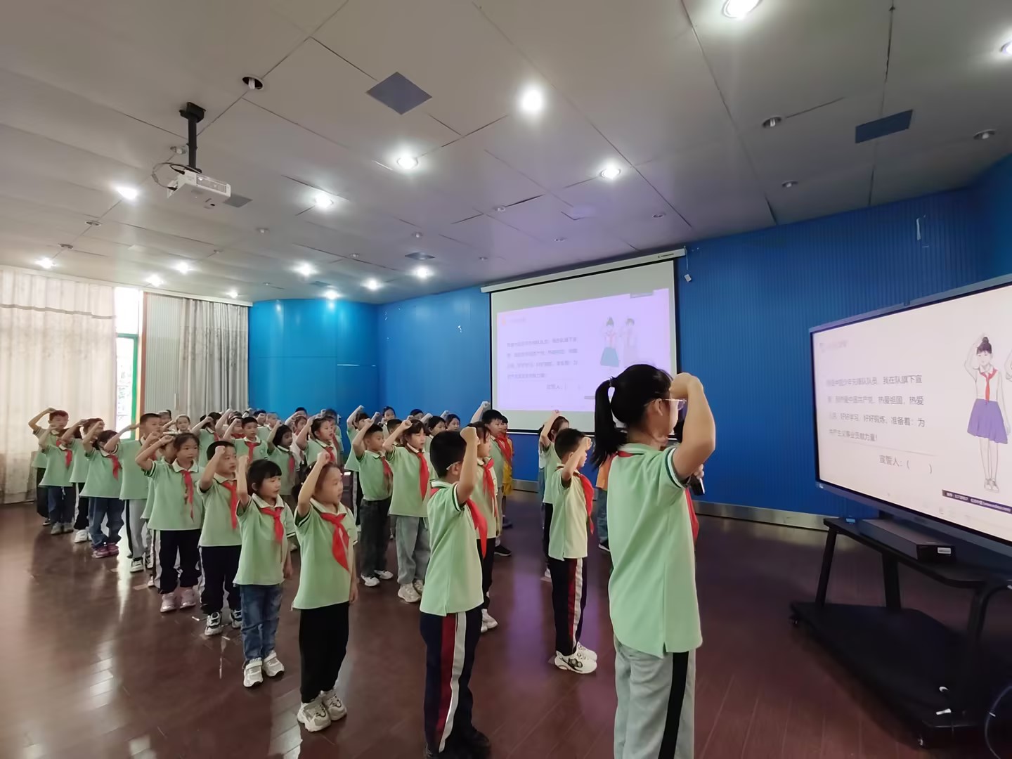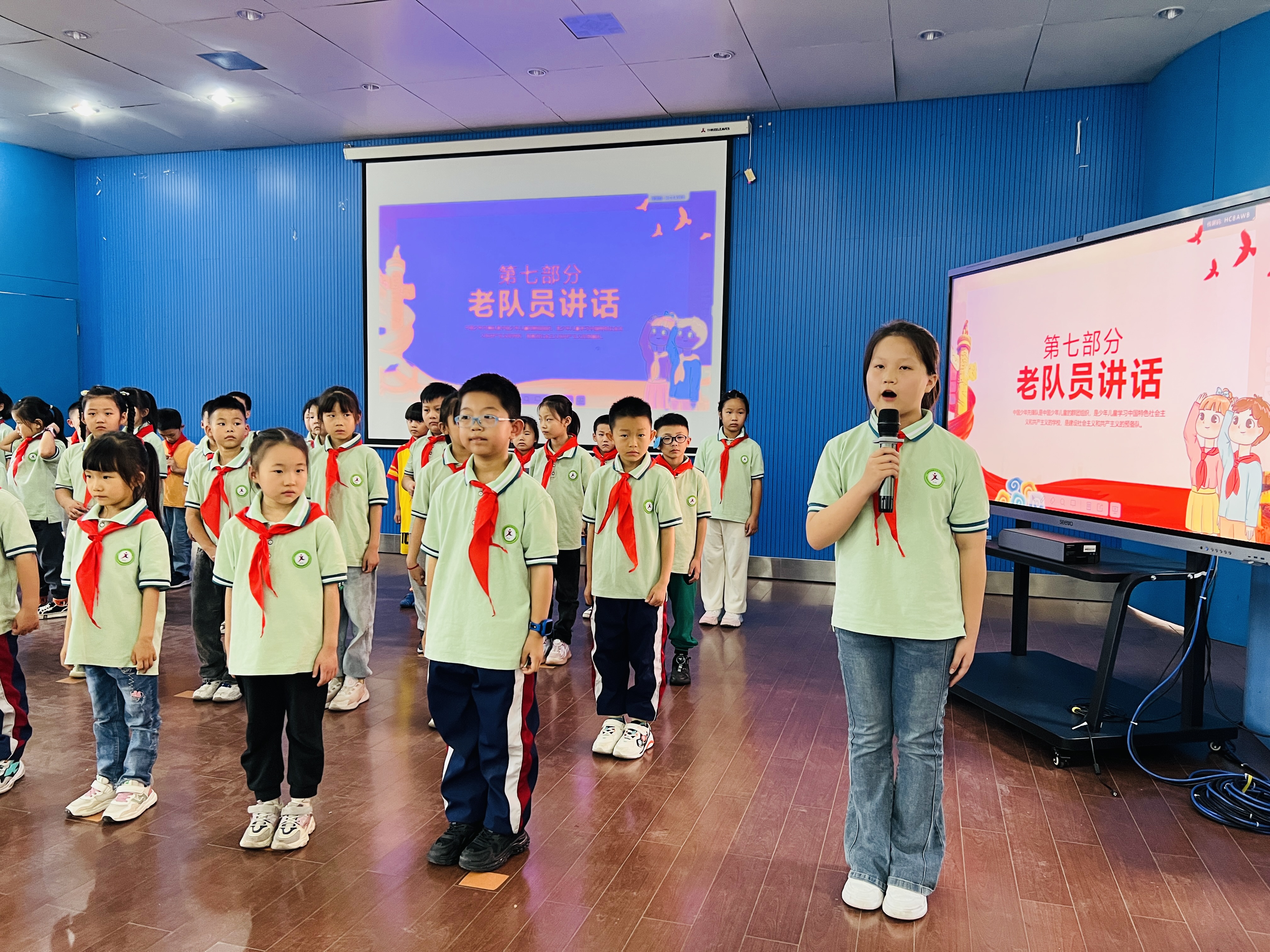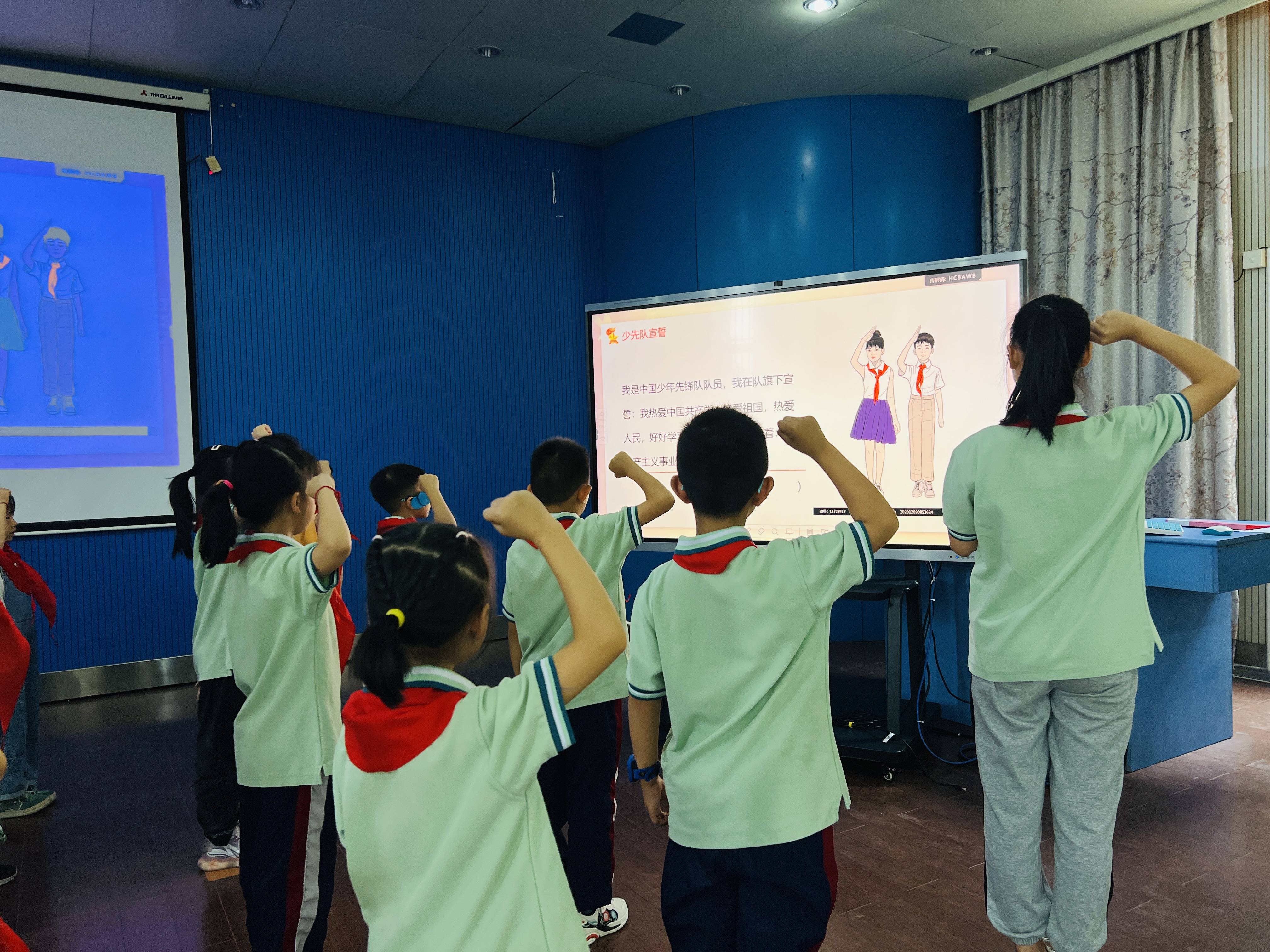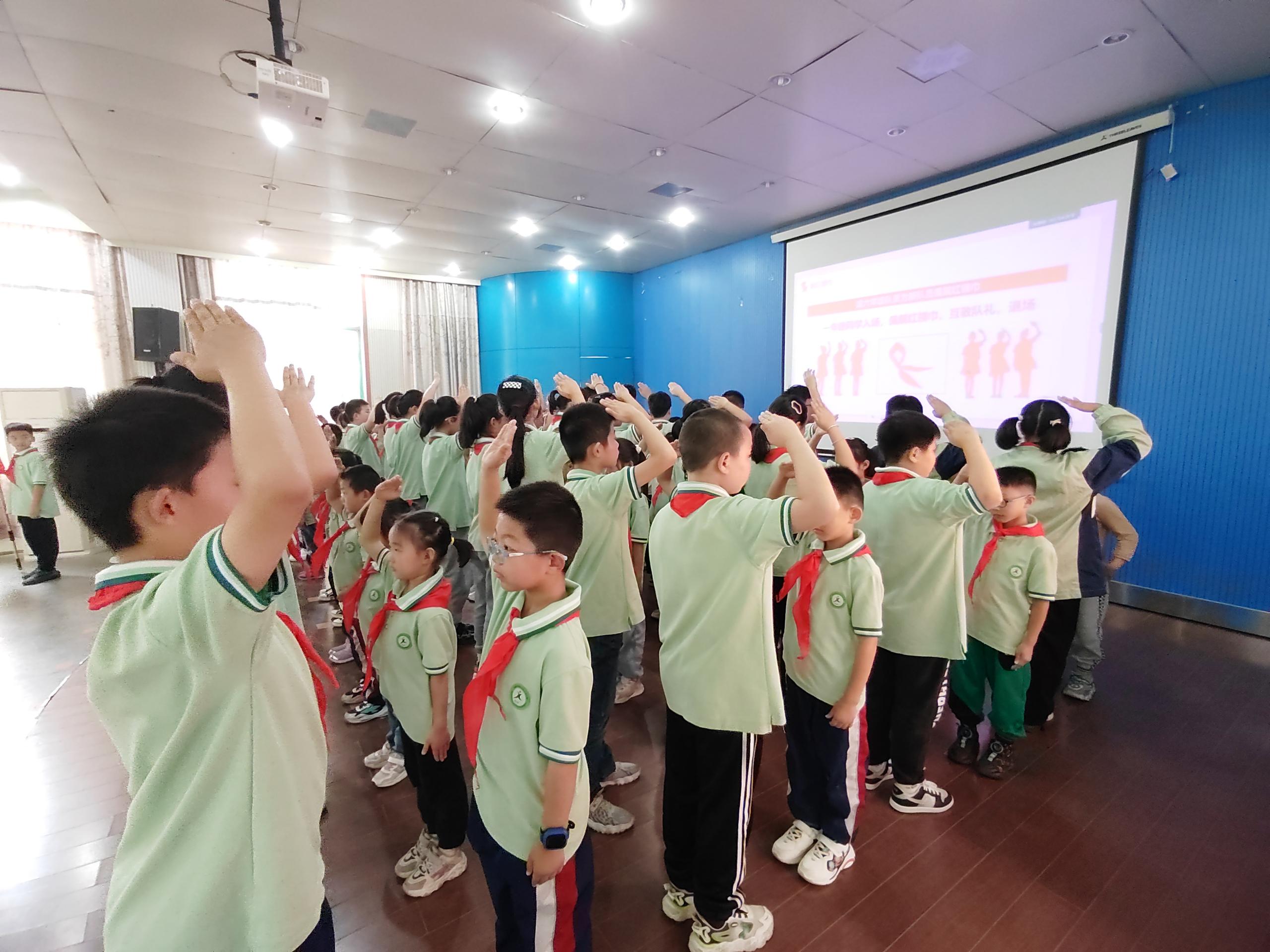 新老队员们共同唱响《中国少年先锋队队歌》,用嘹亮的歌声诉说我们的斗志,表达队员们对党、对祖国、对少先队组织深深地依恋和祝福。