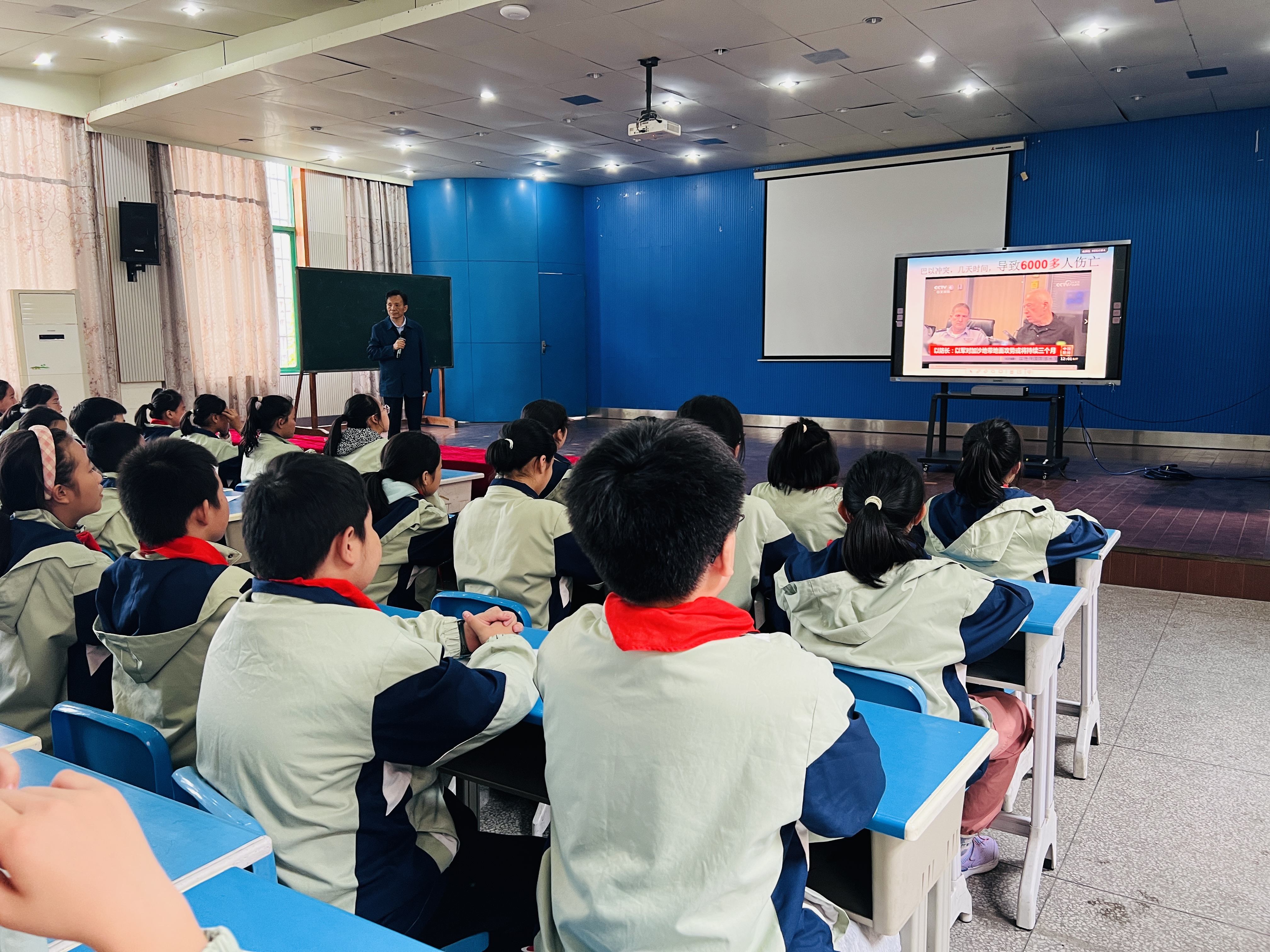 胡主任结合小学生的年龄特点,采用理论联系实际、通俗易懂的方式,围绕国防教育的意义、“九·一八”国耻教育等方面的内容进行了讲解。深入浅出地引领同学们了解了许多国防的知识,使同学们认识到国防的重要性,提升了同学们的国防意识。整场讲座精彩纷呈,同学们兴致高昂,积极参与互动,受到同学们热烈欢迎。