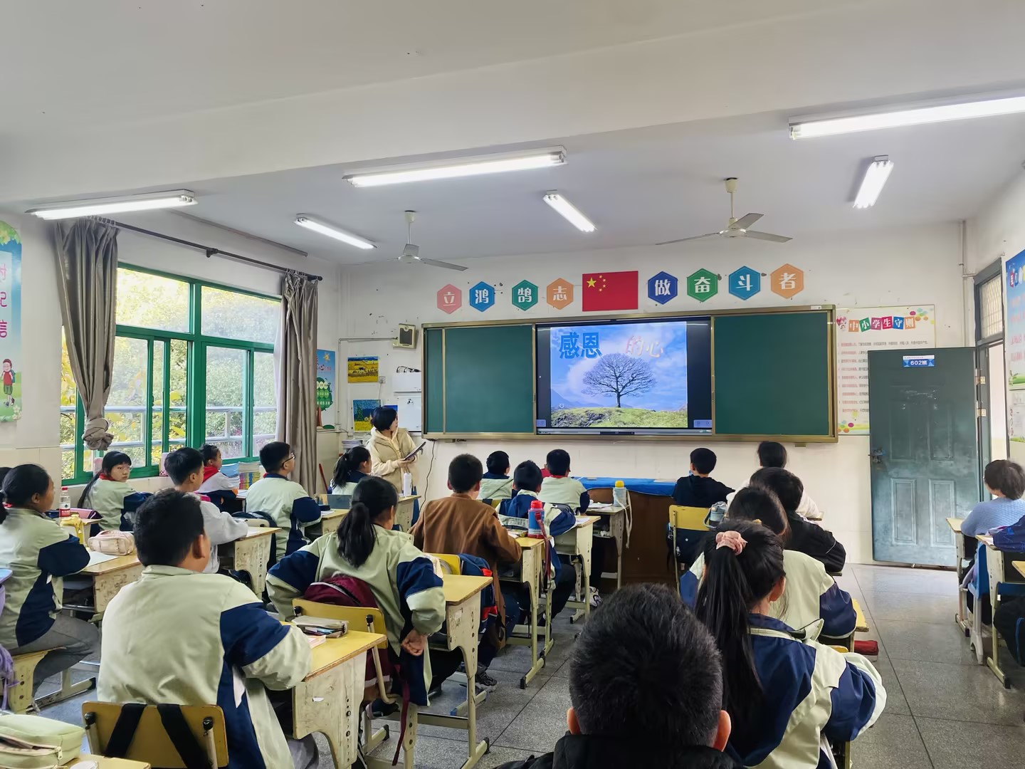 本次主题班会以弘扬和培养民族精神为宗旨,以孝敬父母、尊敬师长、关爱他人、学会感恩为内容,通过精美的课件,将父母、师长、他人之爱阐述得淋漓尽致,各班主任耐心细致的讲解加深了学生对感恩认识的深度,师生齐唱《感恩的心》更是引发了情感的共鸣。