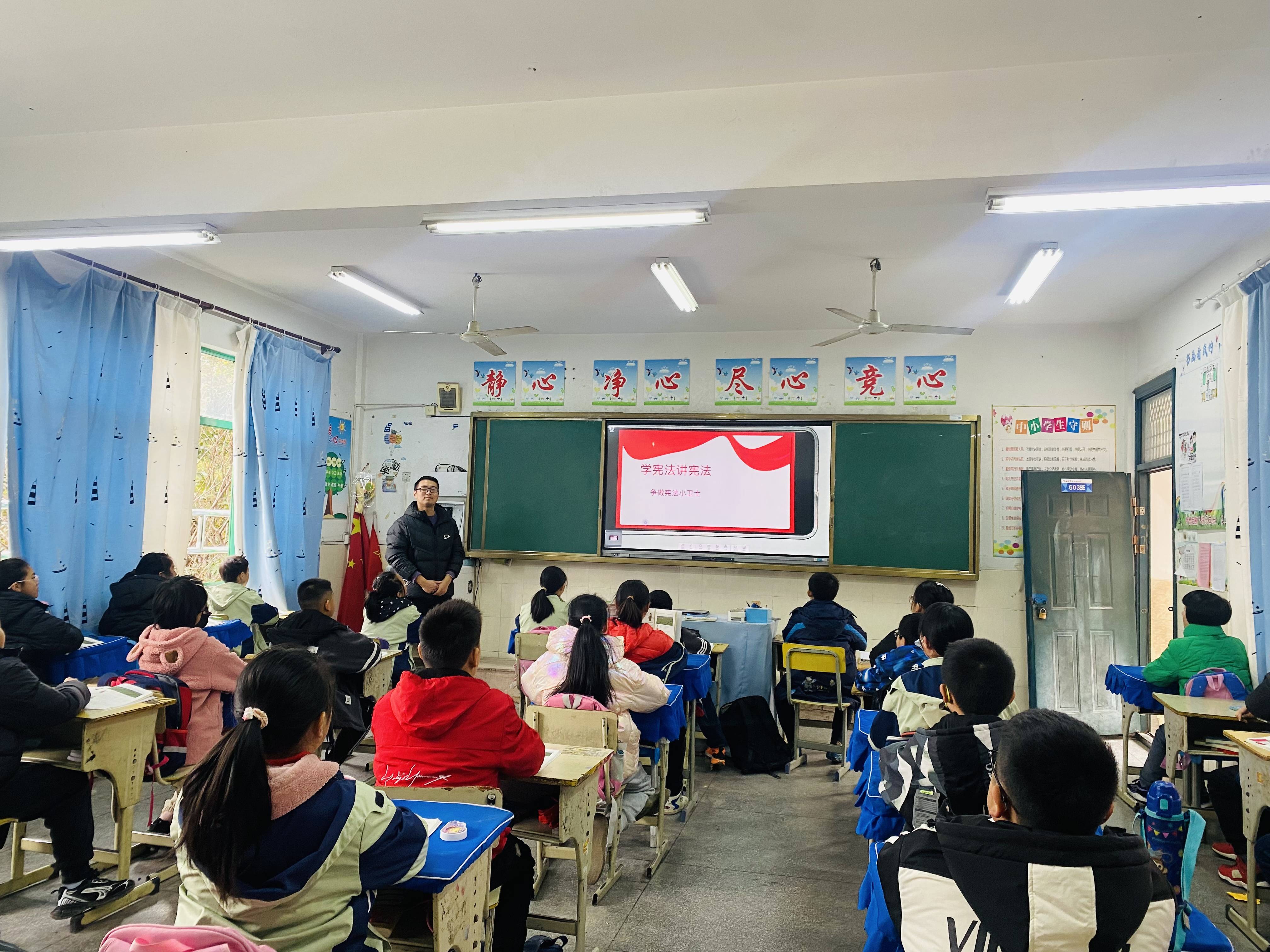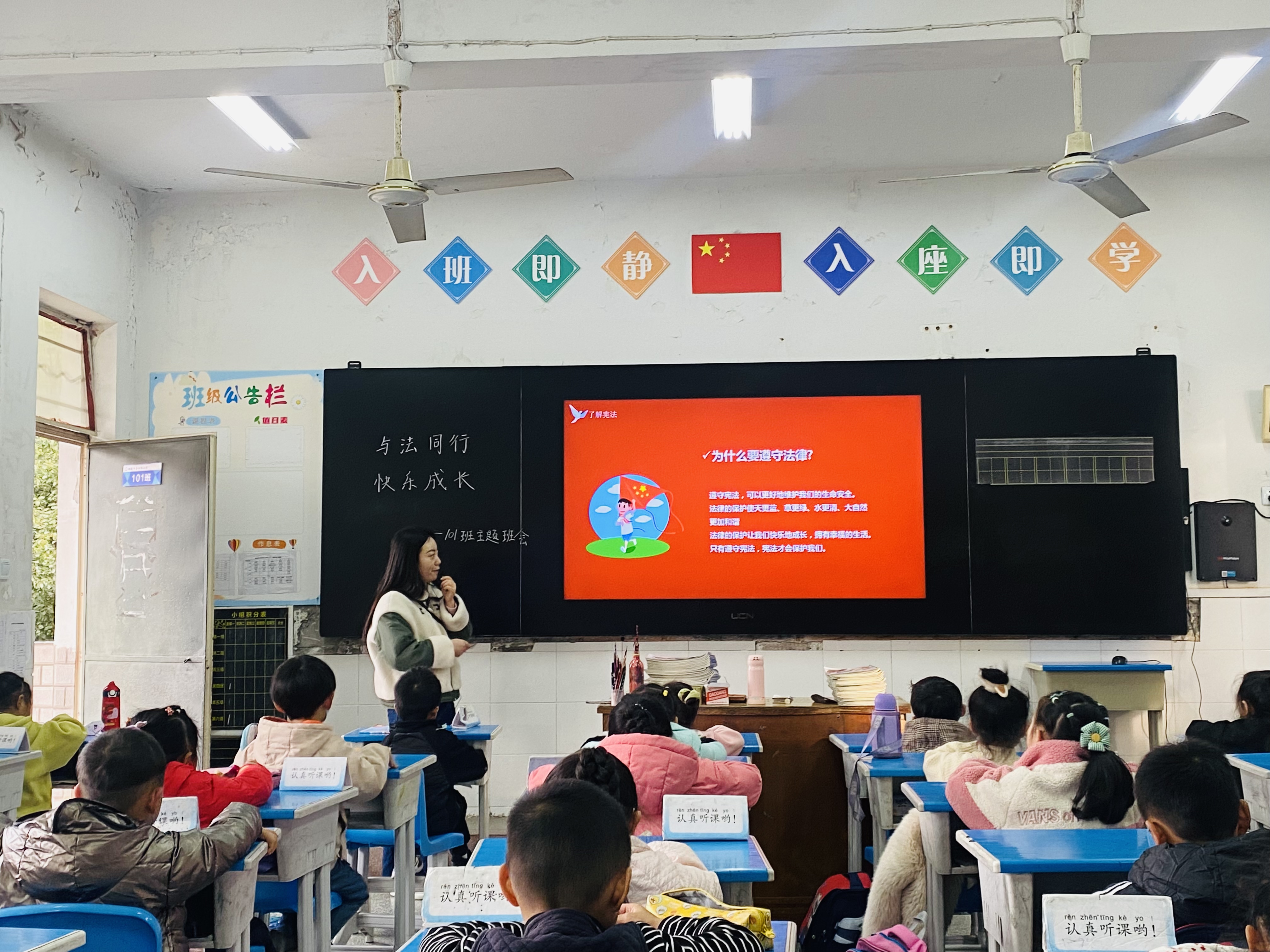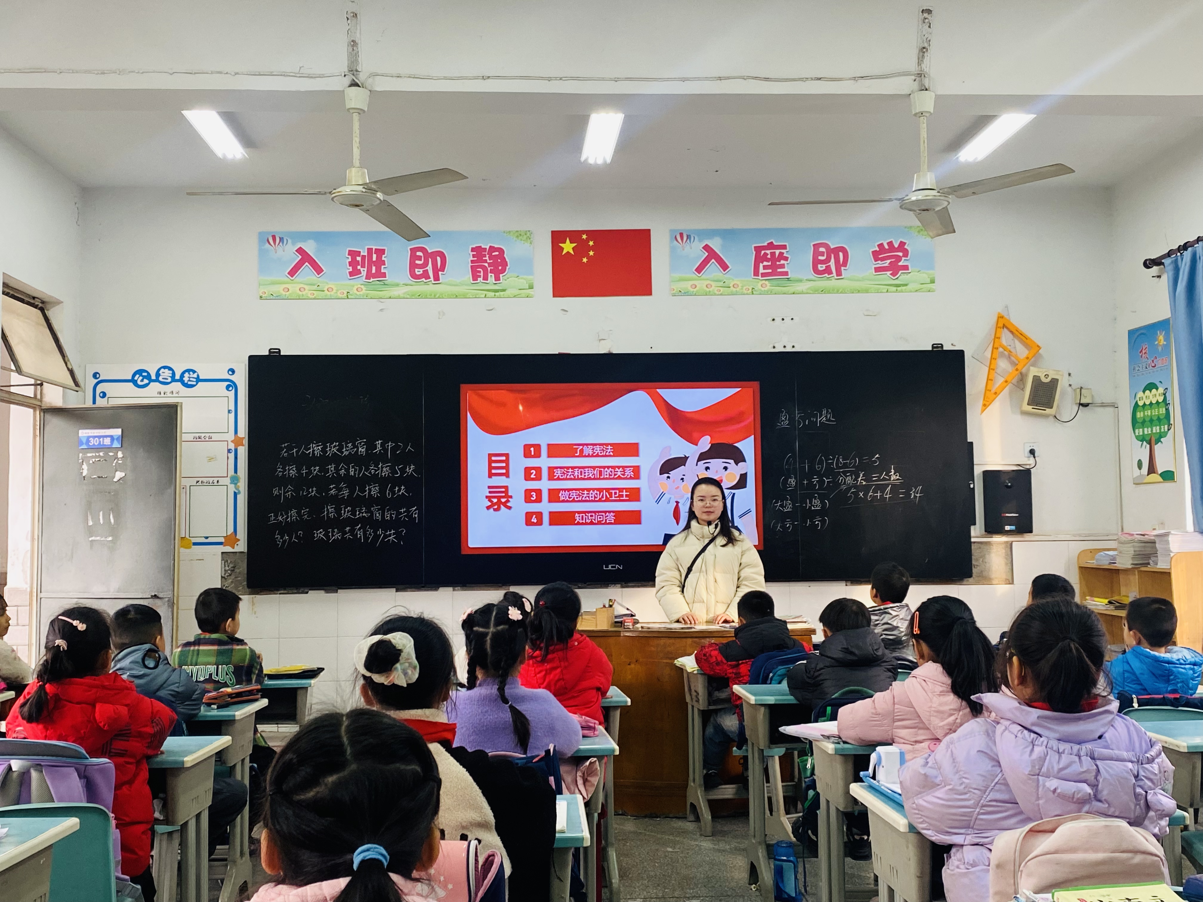各班在学校的统一安排下,班主任精心组织,从什么是宪法说起,带领学生了解宪法和自己之间的关系。最后通过知识问答,带领学生争做宪法小卫士。在学习过程中,班主任老师还用经常发生在小学生身边的浅显易懂的事例,告诉学生什么是违法,让学生懂得违法行为对自己、家庭和社会造成的危害,告诫学生违法的事情不要做。