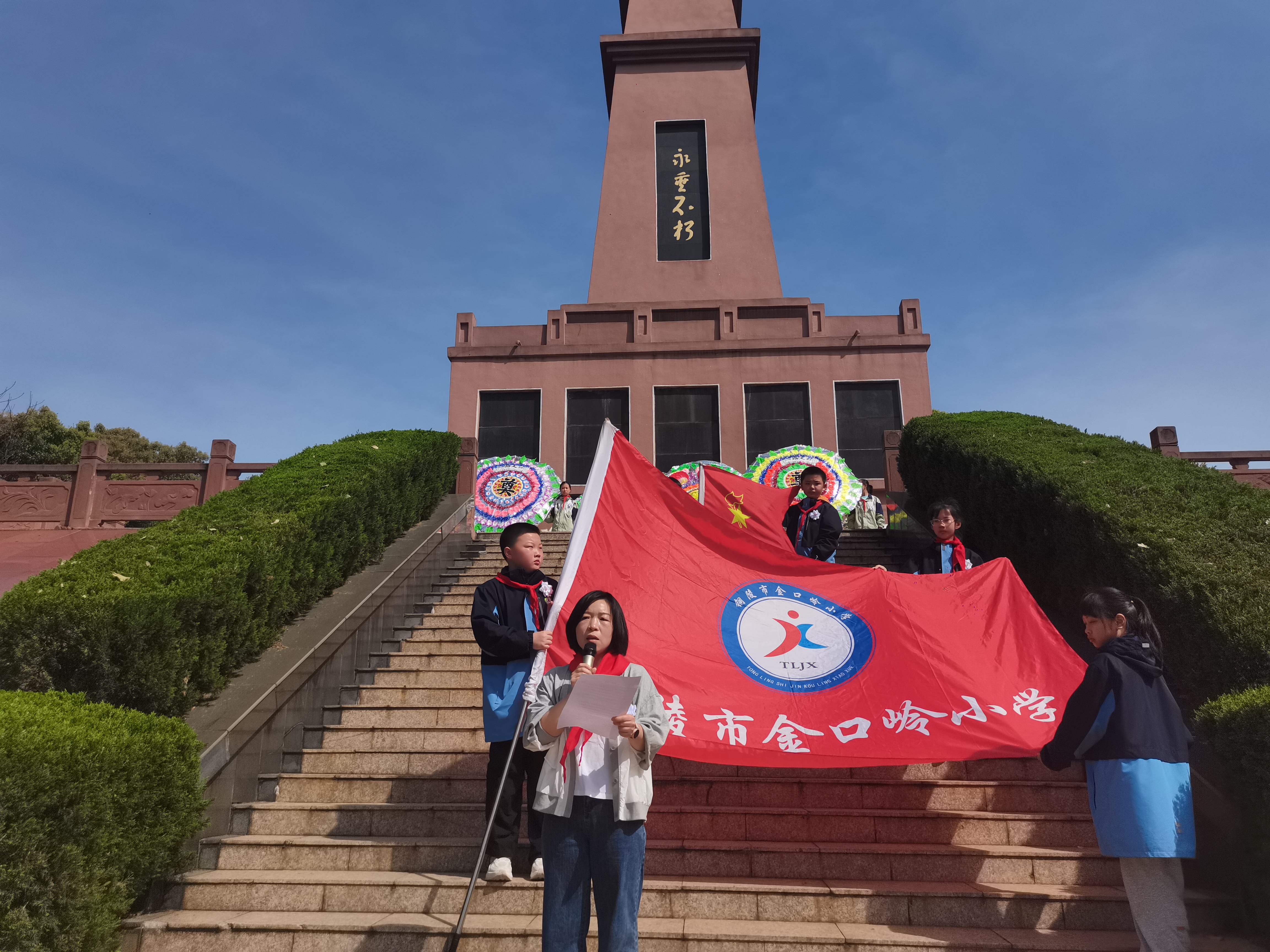 少先队员代表汪禹晨同学在烈士碑前发言,她号召同学们要时刻铭记和颂扬革命先烈的事迹,好好学习,天天向上,以顽强毅力和拼搏精神,踏着烈士的足迹奋勇向前。