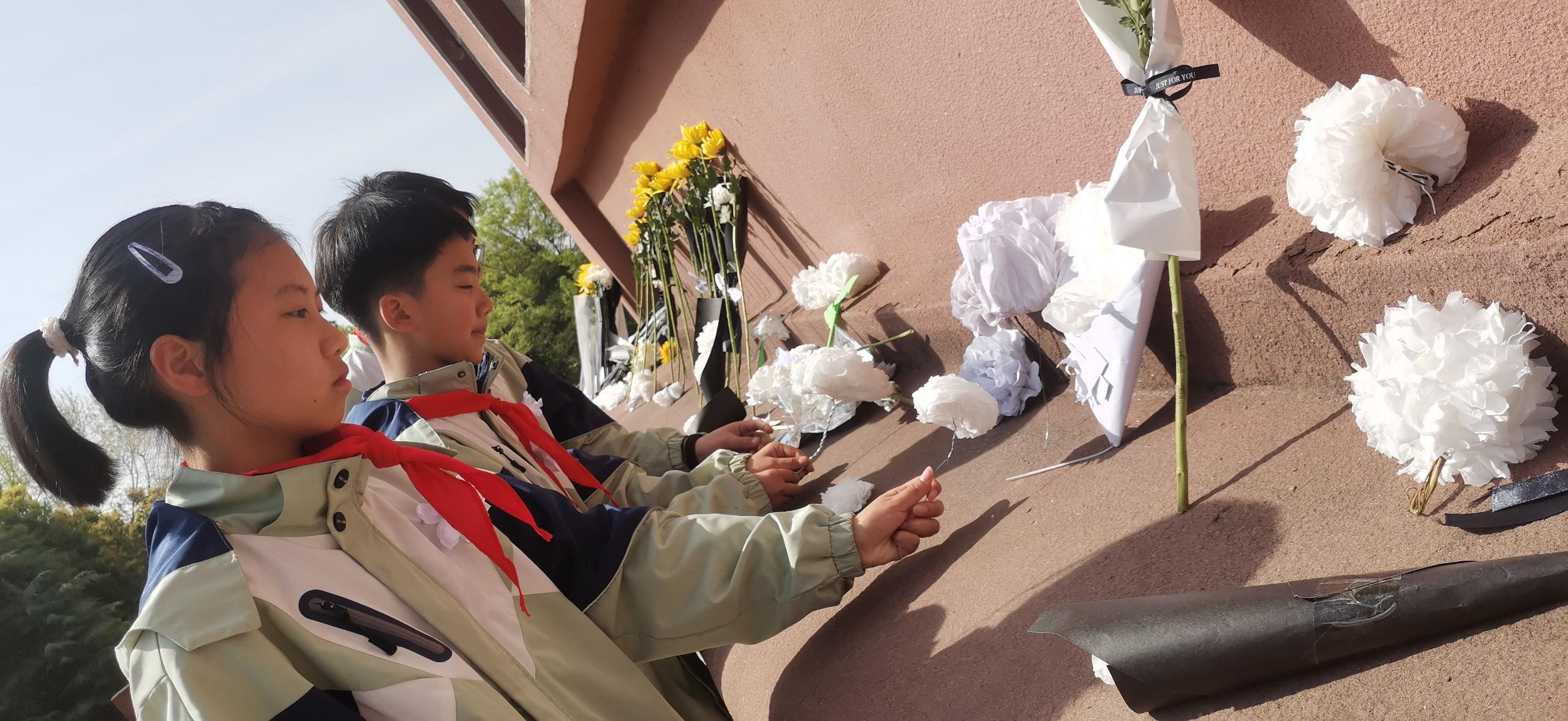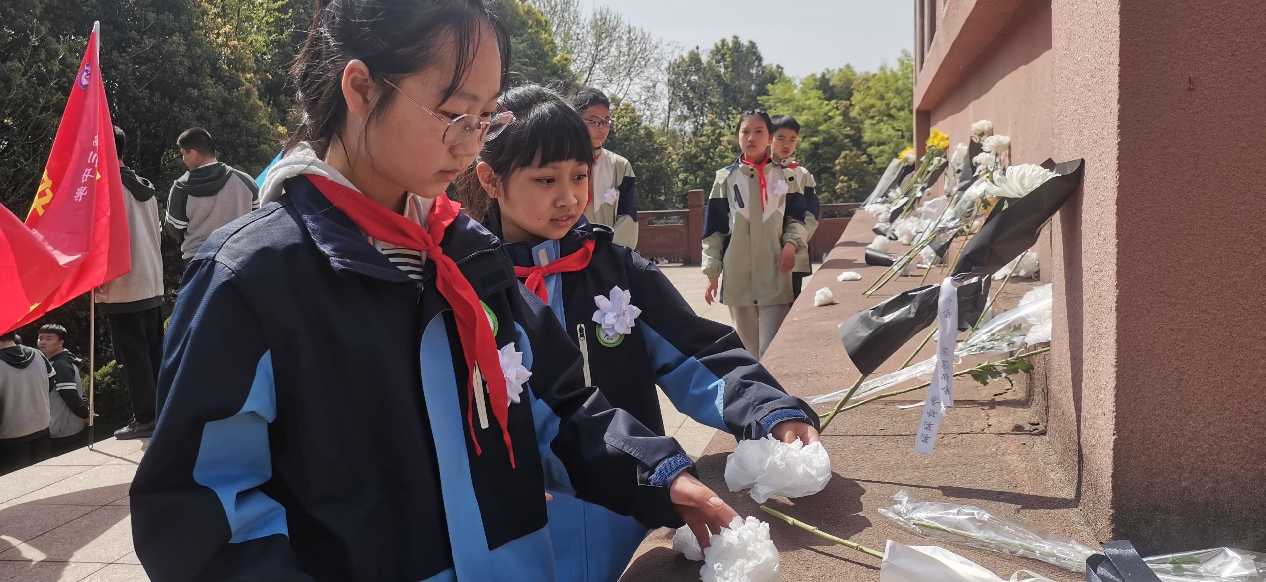 在烈士墓前,师生们怀着崇敬的心情举行悼念仪式,表达对革命英烈的哀悼。少先队员代表敬献花篮,五六年级师生向英烈敬礼、鞠躬,默哀一分钟,以此追思先烈。