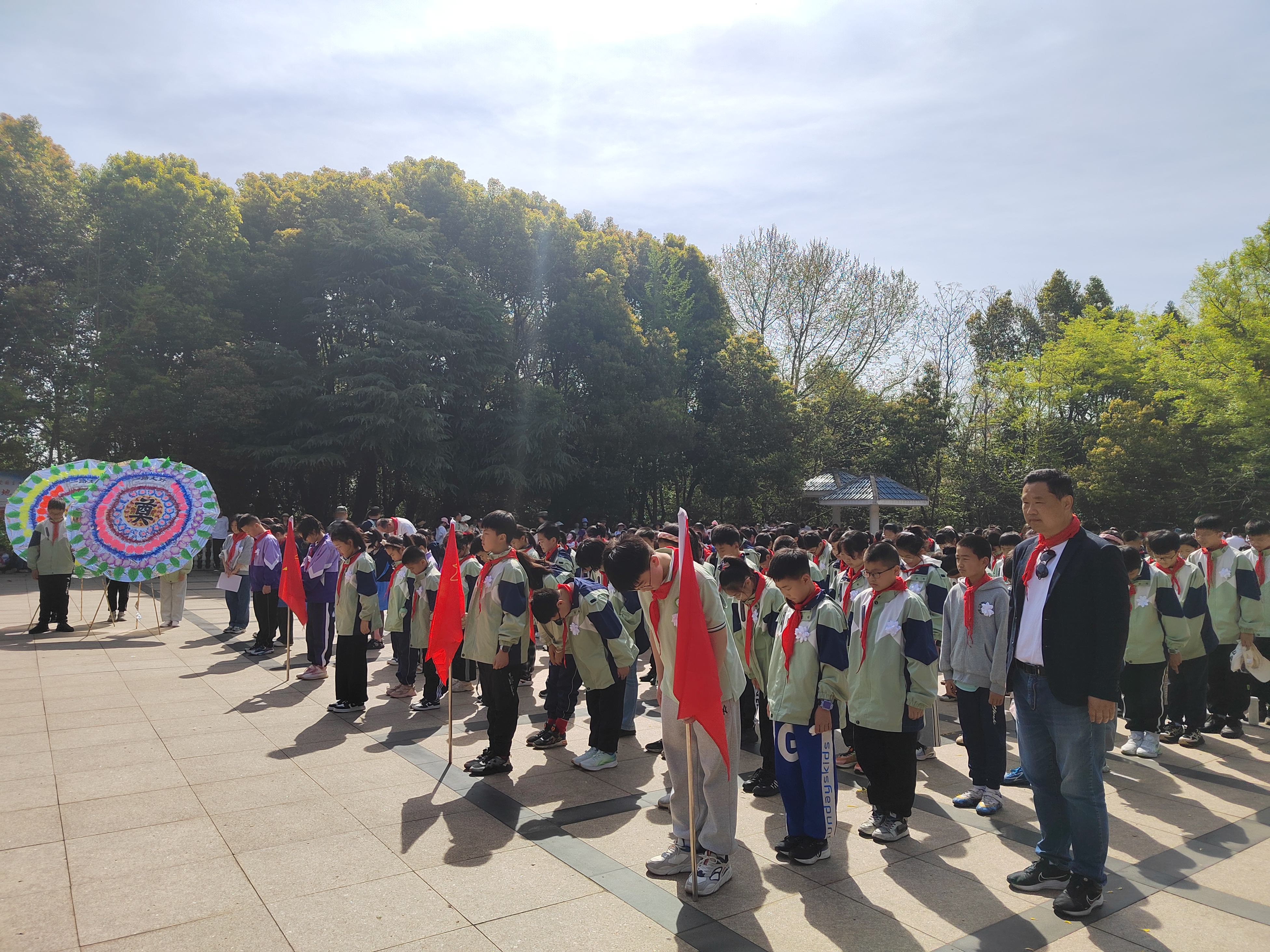 青草杨柳绿,又逢清明时。2024年清明节即将到来之际,在这个缅怀先烈、寄托哀思的传统节日,为更好传承和弘扬英烈精神,弘扬爱国主义精神,引导少先队员们树立正确的价值观和人生观,德彩网于4月1日组织五六年级少先队员,前往铜陵市笠帽山烈士陵园开展清明祭英烈活动。活动由德彩网少先大队部大队长张羽汐主持。