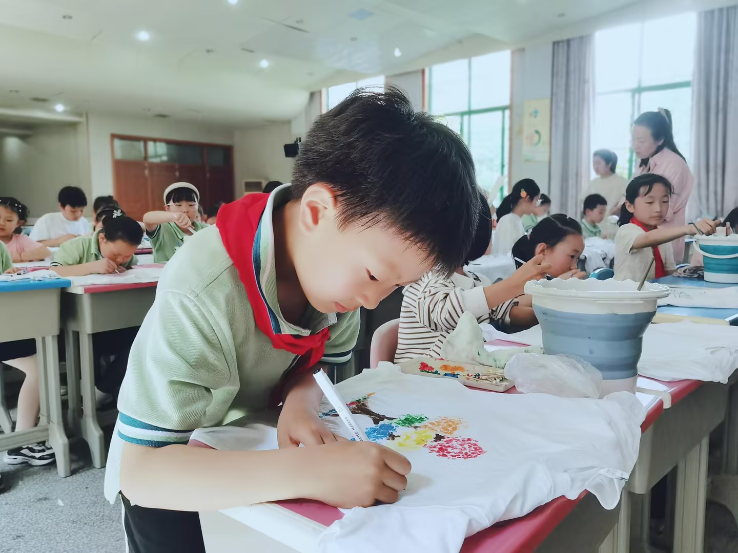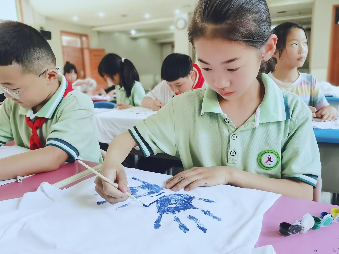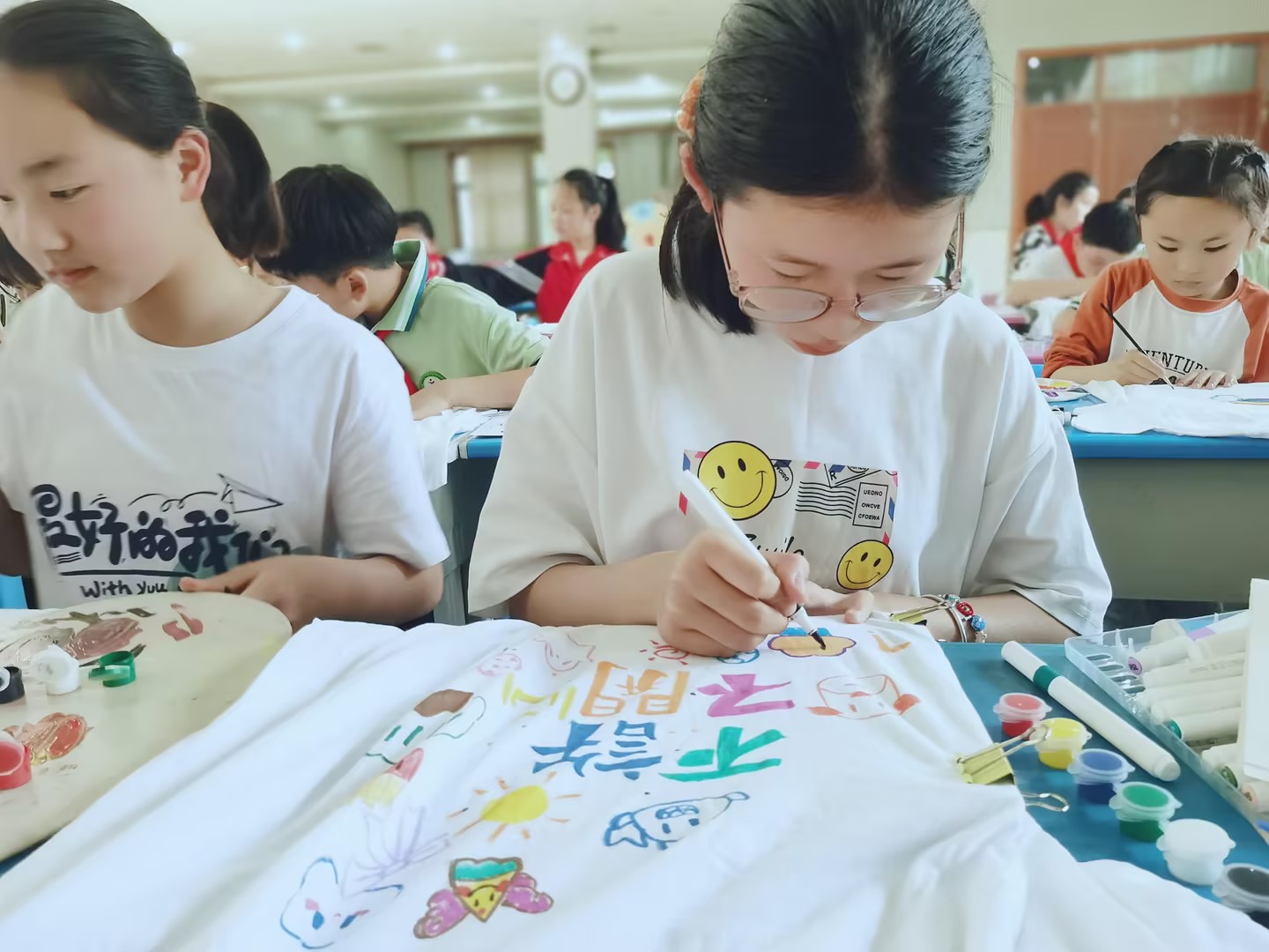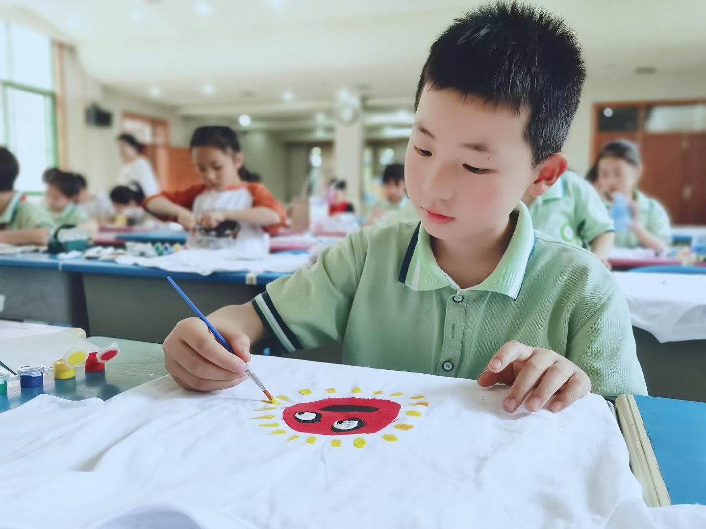 毕加索说“每个孩子都是艺术家”。在这个夏天,德彩网的孩子们发挥自己的聪明才智,亲手在白T恤上面绘制自己喜欢的画,让创意在这个夏天熠熠生辉。