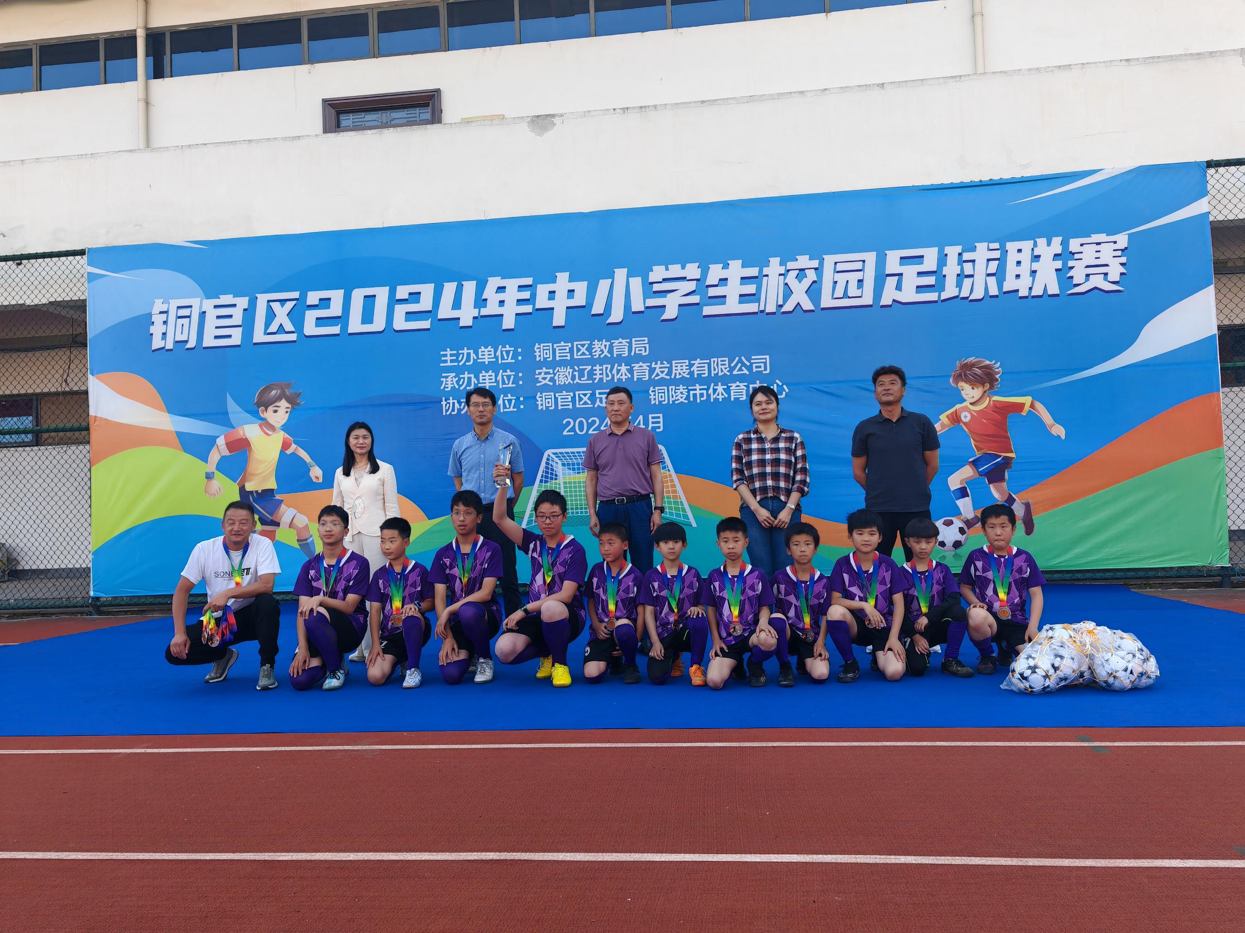 我校学生在铜官区2024年中小学生校园足球联赛中顽强拼搏,不言放弃,经过几周的奋战,最终我校足球队荣获小学男子组季军。
