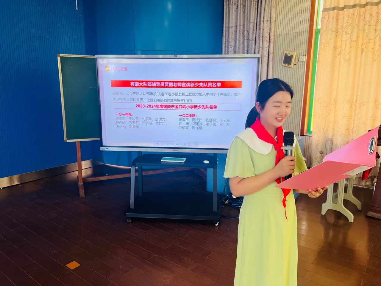 在激昂的出旗曲中,入队仪式拉开序幕。学校少先队大队辅导员贾丽老师宣读了入队新队员名单,共有20名同学加入了少先队组织,为少先队这个大家庭注入了新鲜活力。