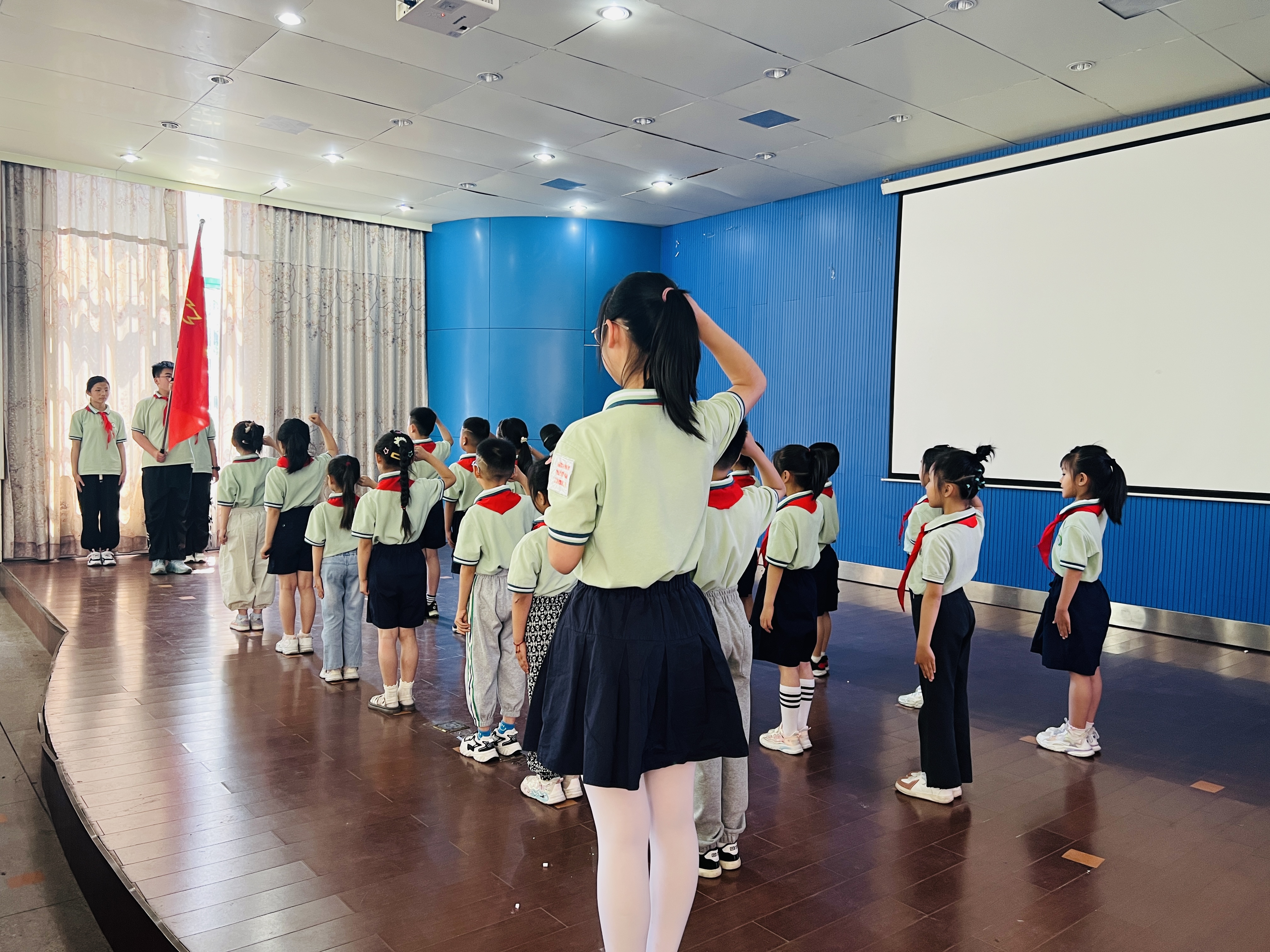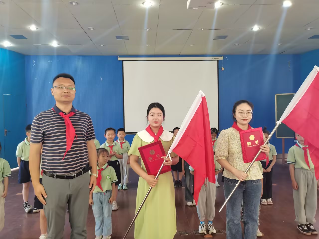 最后,校长黄言斌、副校长赵永康为中队辅导员颁发聘书、授予旗帜,整个仪式圆满结束。
