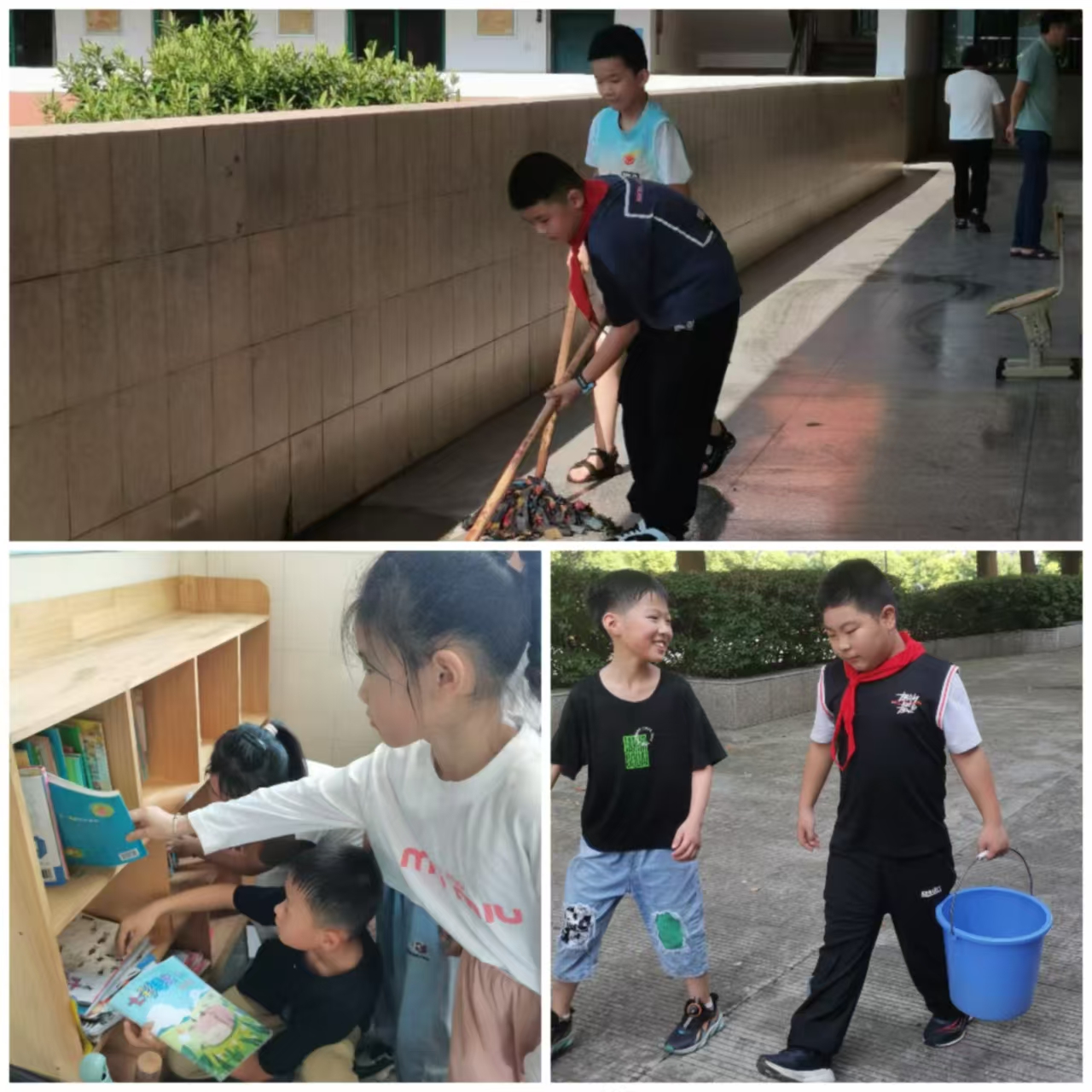 新学期,最有意义的“仪式感”莫过于让学生亲身参与的活动——扫除、分书。“真想快一点坐进新教室啊,我们一起来打扫吧!”你提水,我拖地;孩子们用心擦拭,不放过每一个角落。焕然一新的教室揭开了新学期的序幕,干净的书柜、整齐的课桌、明亮的窗户、无不让孩子们对新学期充满浓浓的希冀。