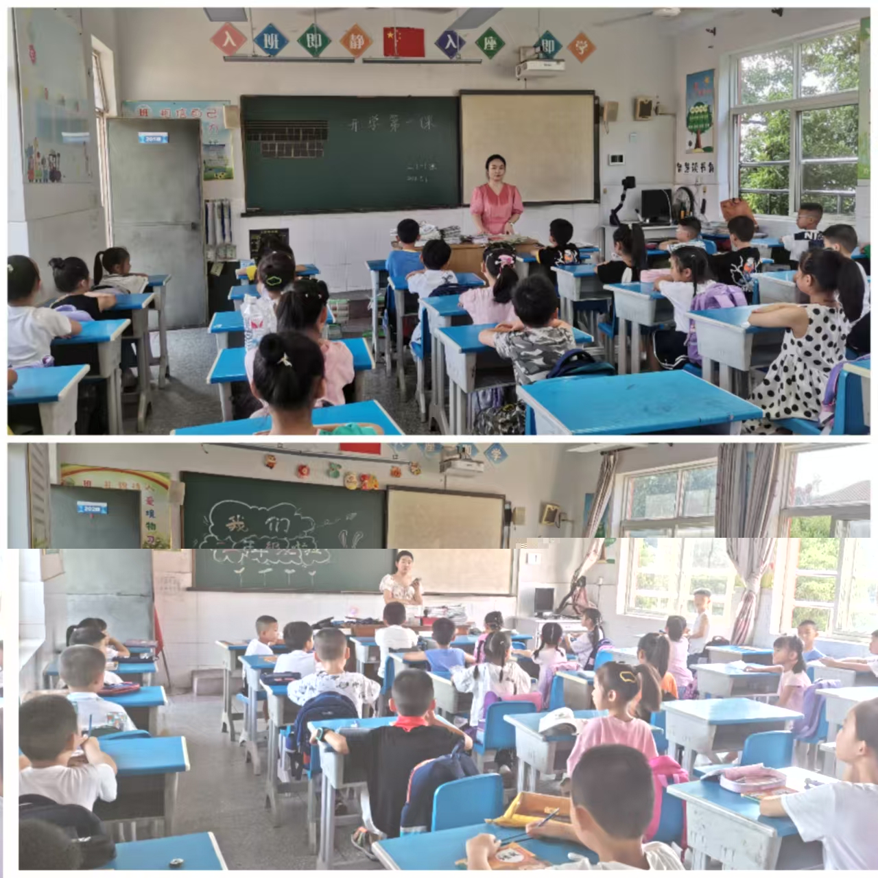 在温馨的校园环境中,同学们在老师的带领下开始了《开学第一课》,积极引导孩子们返校后注意安全、调节心理,做阳光自信、积极向上的好少年。