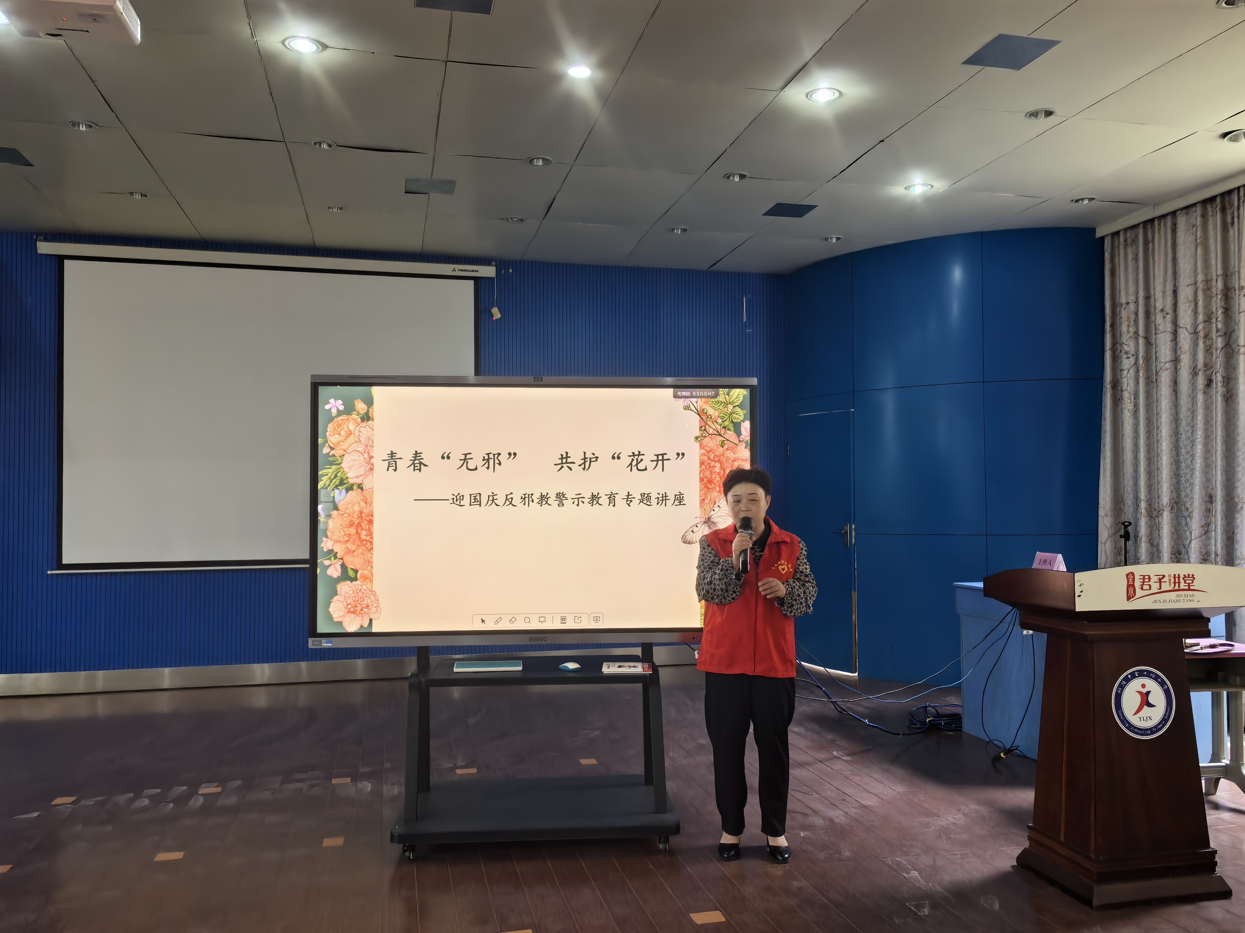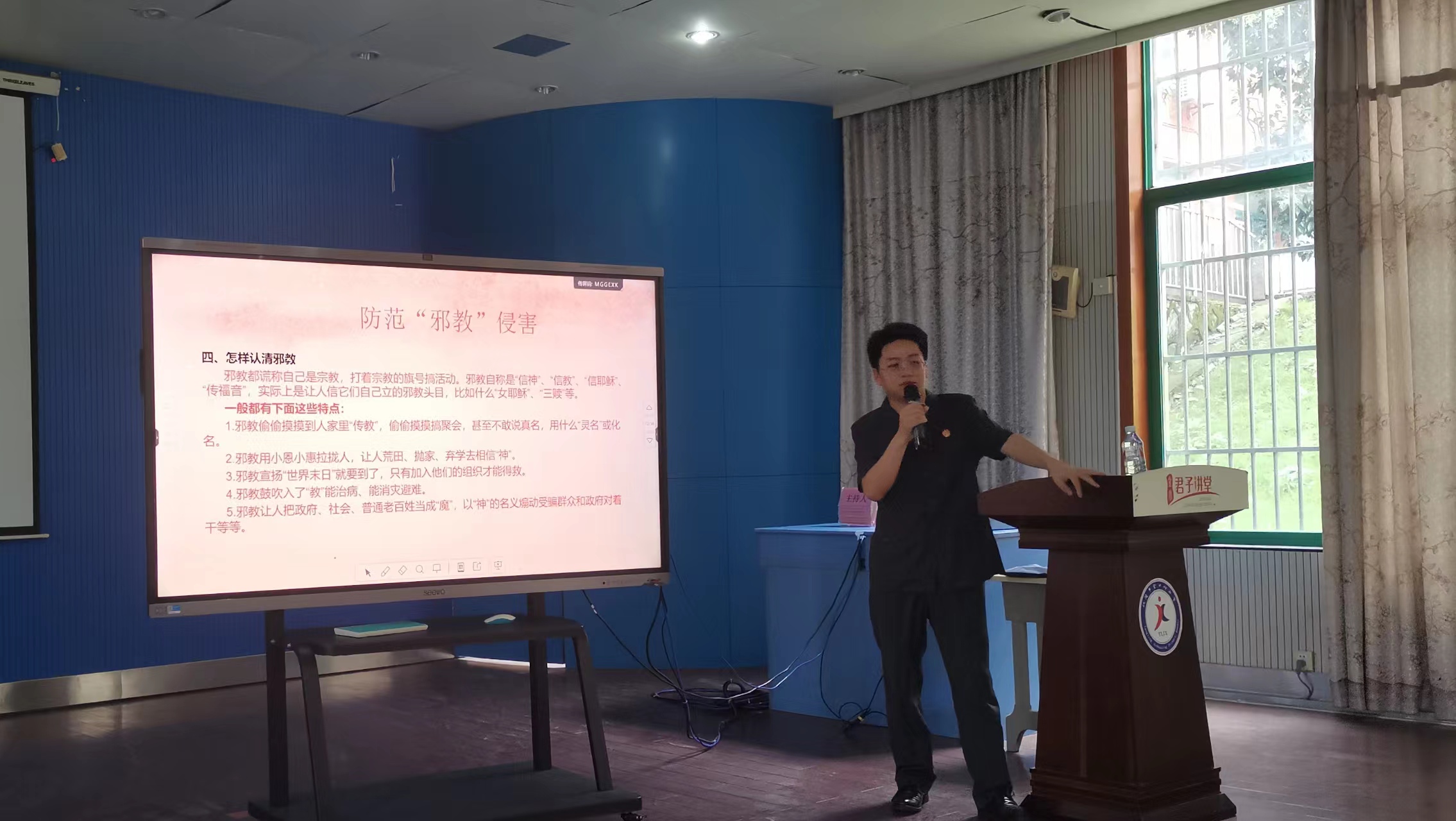 学校邀请法制副校长向学生宣扬“崇尚科学 反对邪教”的安全意识和科学精神,面对面地向师生们做了详细而生动的讲解,揭开了邪教反社会、反科学、反人类的本质。