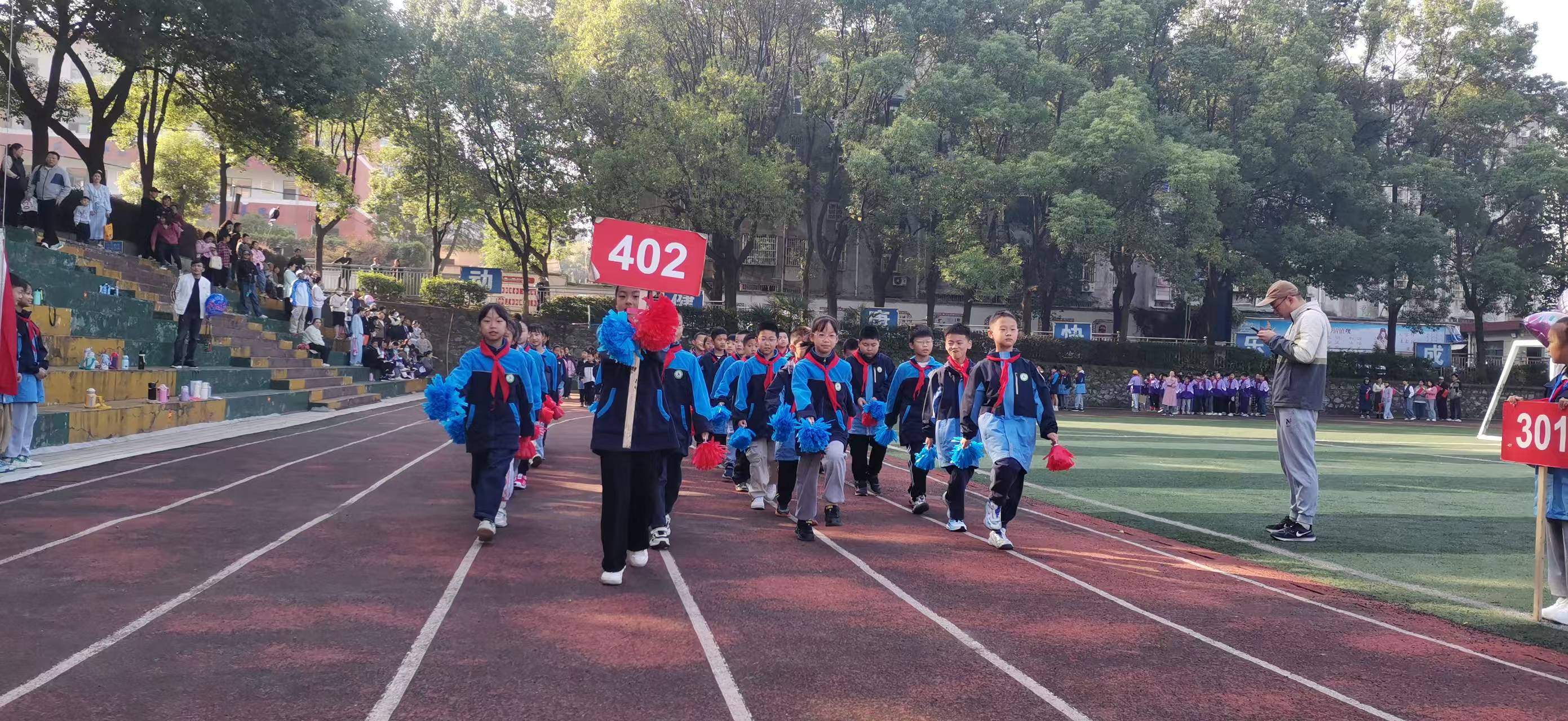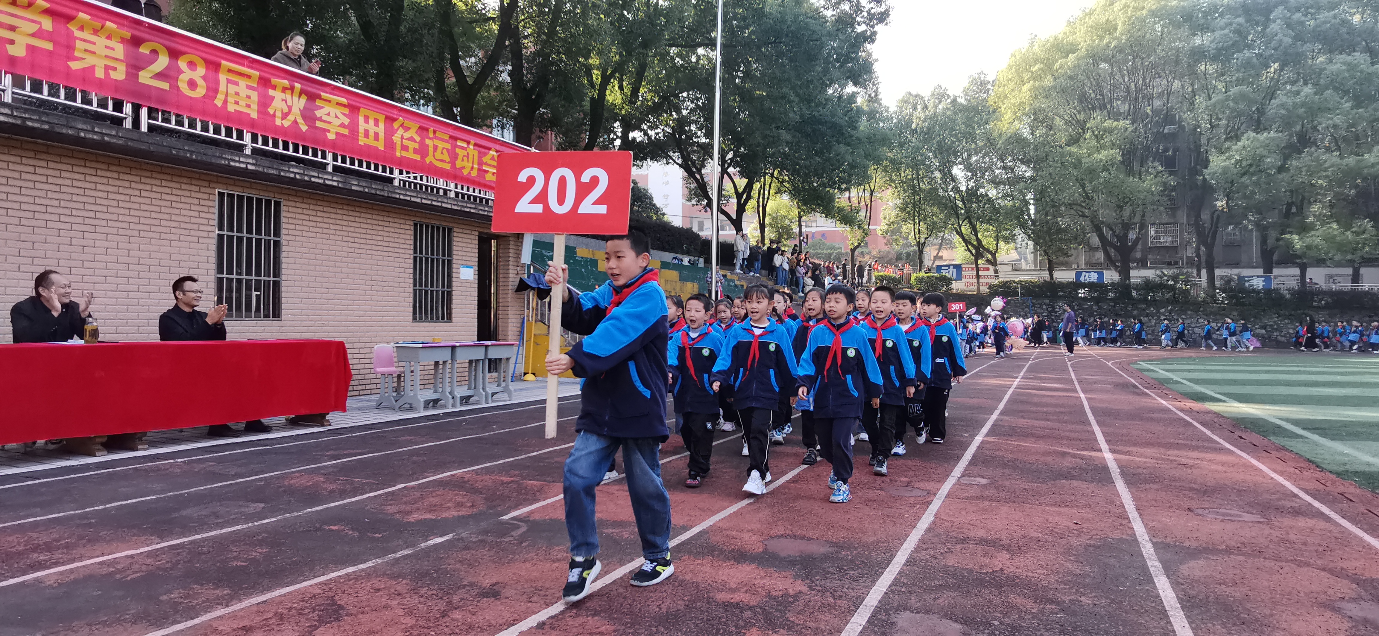 绿茵清爽,旌旗飘扬,伴随着激昂的旋律,运动会开幕式正式拉开了帷幕。在小主持人热情洋溢的解说中,各个班级方队依次走过主席台。部分班级方阵还进行了入场式表演,他们各显特色,意气风发,显少年之蓬勃,展体育之精神。