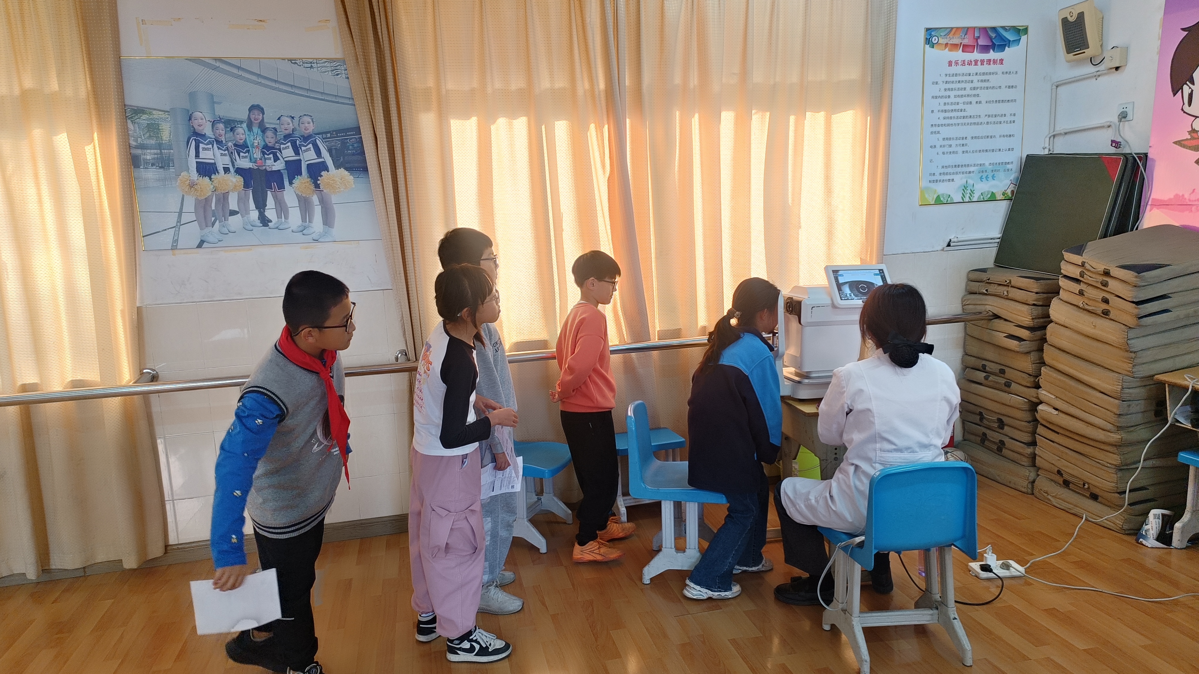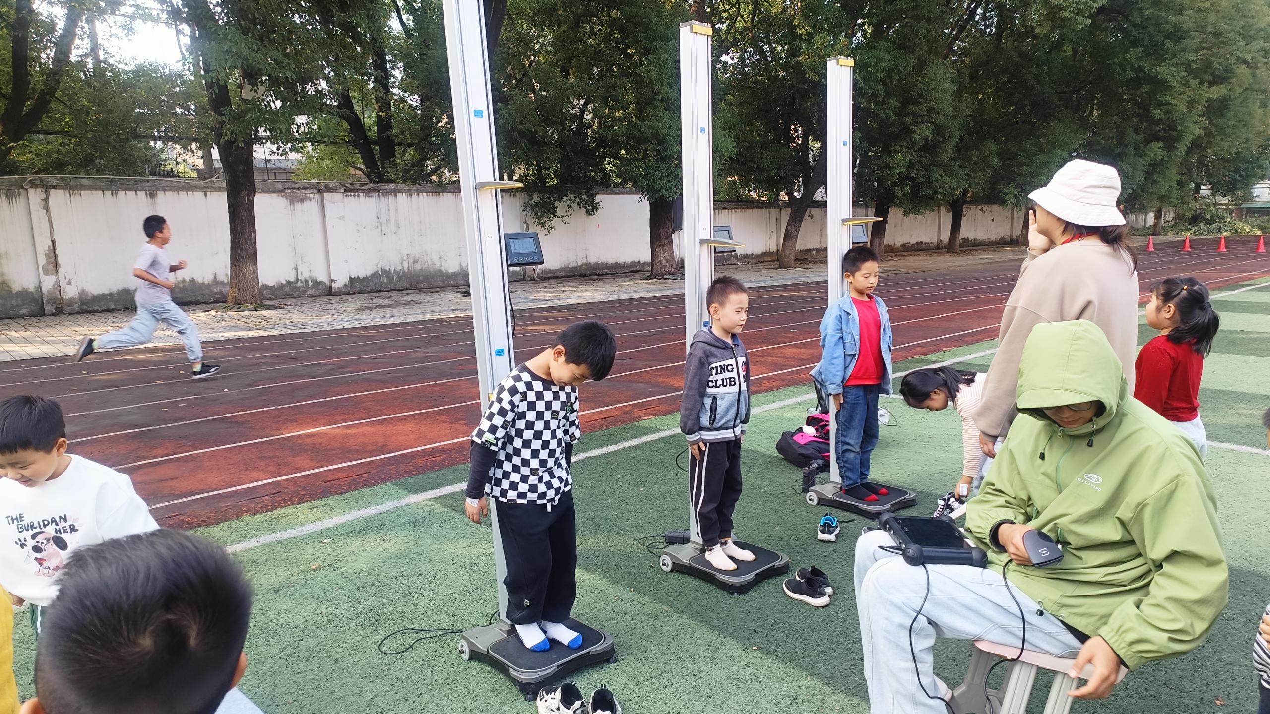 检测现场秩序井然,项目丰富多样,涵盖了多个重要的体质健康测评维度。其中,身高与体重的测量能够直观反映学生的身体发育情况,是评估学生生长是否符合正常标准的重要指标。肺活量检测则对学生的呼吸功能进行了量化考量,展现其心肺功能的强弱。