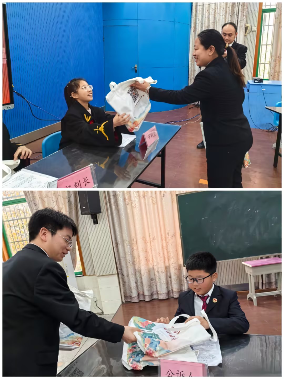 庭审现场,气氛庄重肃穆。本次模拟法庭所选取的案件,取材于一起非法狩猎案,由金口岭小学的十位学生进行演绎,严格按照法庭审判程序进行。随着清脆的法槌声响起,模拟法庭正式拉开帷幕。他们迅速进入角色,摇身一变成为法官、陪审员、书记员、公诉人、律师乃至被告、法定代理人、法警等。“审判长”虽稚气未脱却沉稳有加,把控庭审节奏有条不紊;“控辩双方”思维碰撞,举证质证逻辑严密、辩论激烈;“被告人”真情流露,悔罪之意溢于言表。前期精心筹备,到法庭调查、唇枪舌剑的辩论,再到“被告人”诚恳陈述、“审判长”一锤定音的宣判,整个流程秩序井然,台下观摩的师生及各界代表沉浸其中,仿若置身真实法庭,法律知识如丝丝春雨沁入心田。