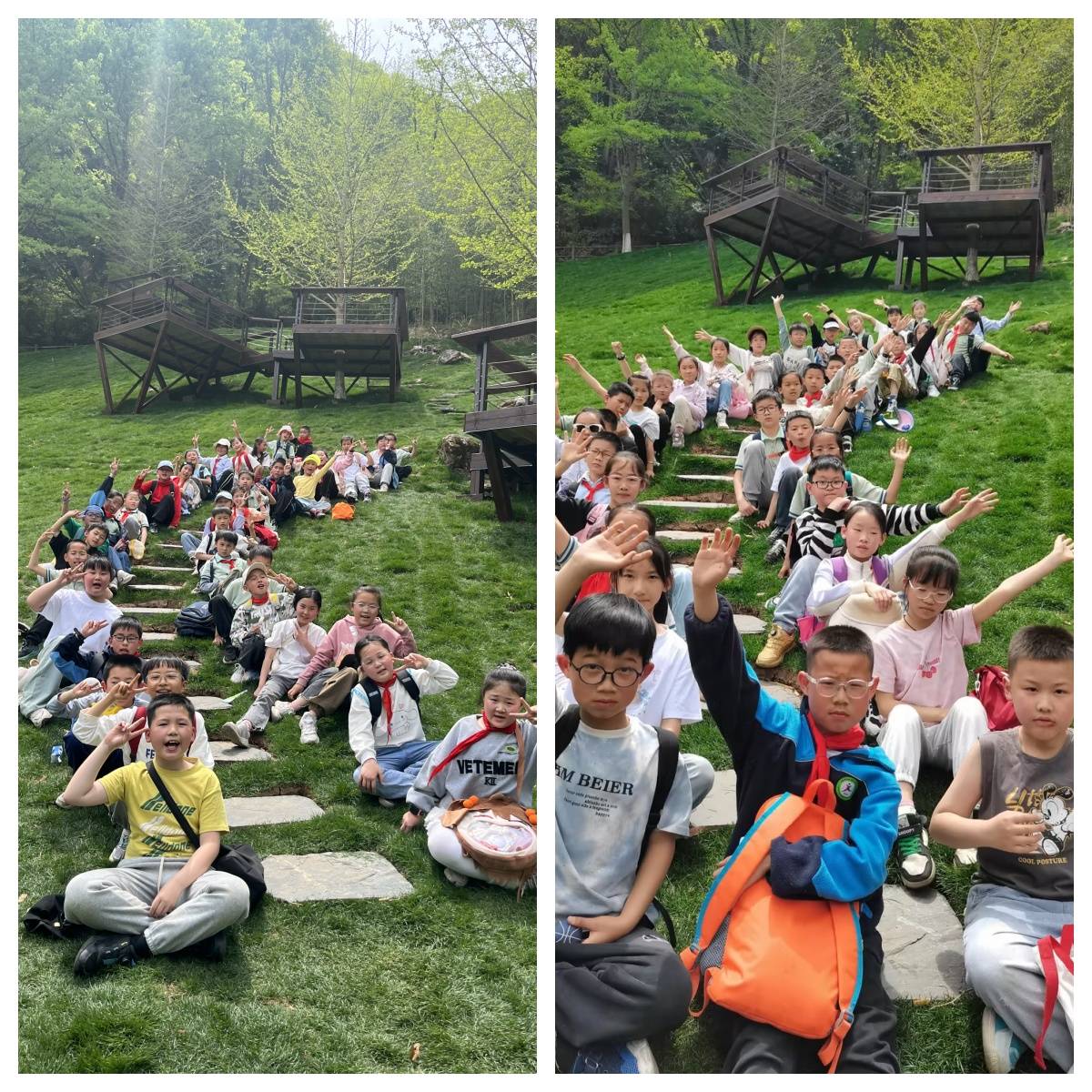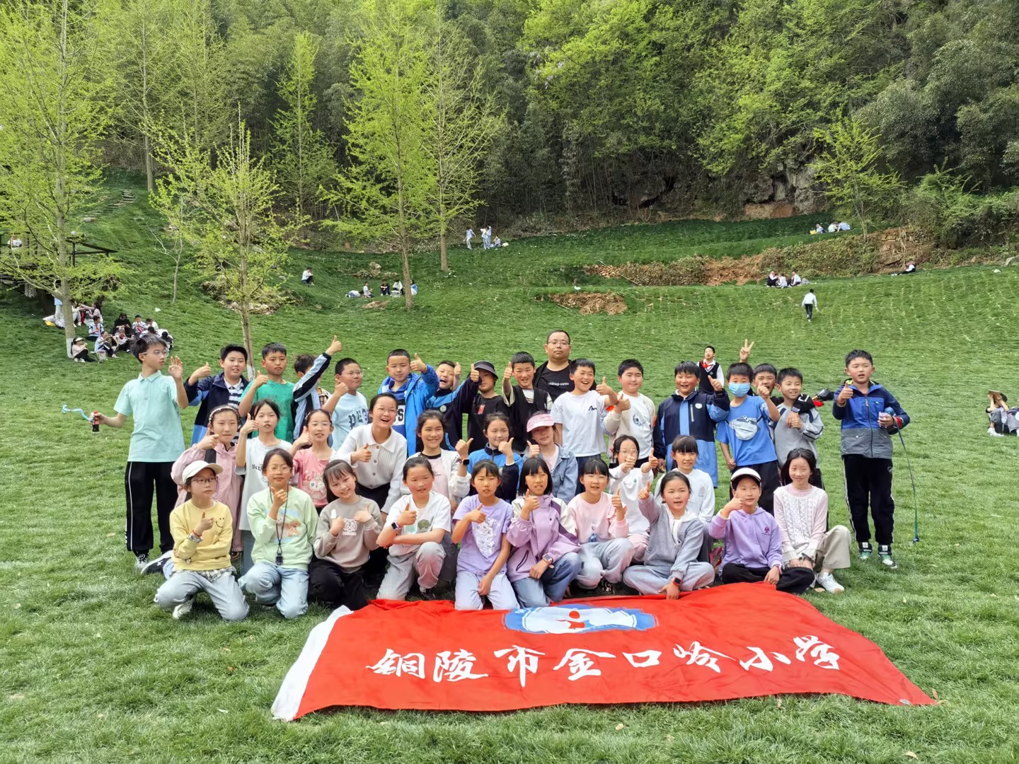 此次春游活动是分年级组织的。一二三年级的孩子们前往千年古镇——大通古镇和国泉农庄。孩子们游览大通老街、古井、钟楼,游览国泉农庄,参观传统农具展示,了解农耕文化,短短半天即可体验乡村生活,感受田园乐趣。四五六年级则乘车驶向美丽的凤凰山。凤凰山属国家AAAA级风景区,景区面貌形胜凤凰,群山连绵,山峦起伏,森林覆盖率高,植被丰富,空气清新。滴水崖更是如雷贯耳,一泓清泉从崖顶直泻而下,落入崖底,铿锵有声,在阳光照耀下,水气朦朦,又如一幅幅若隐若现的彩虹。让同学们在忙碌的学习之余给同学们来一场全身心的放松。